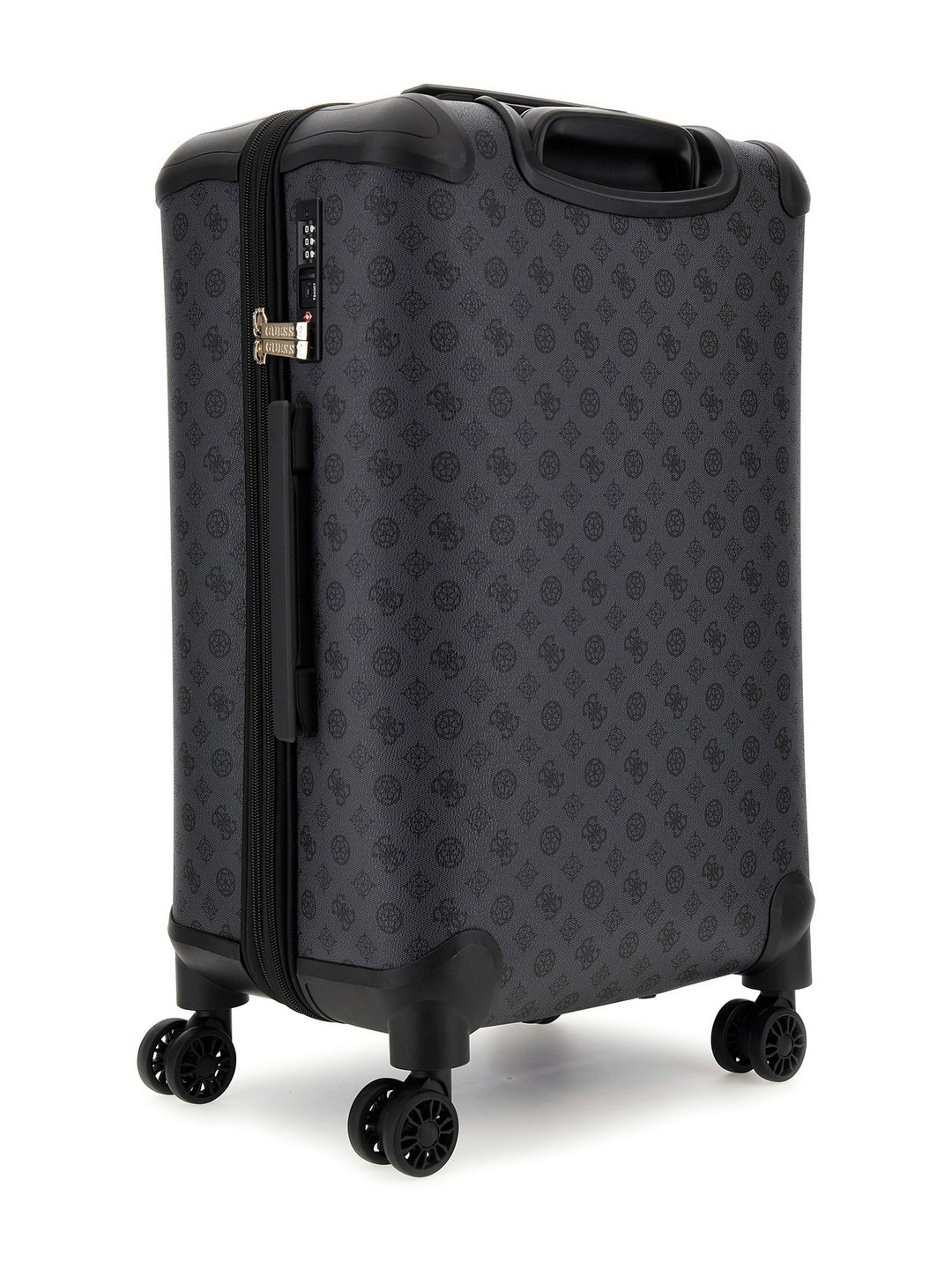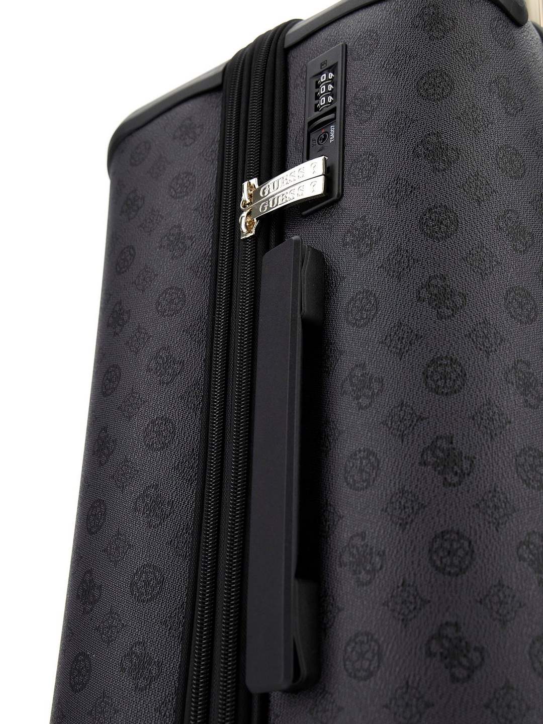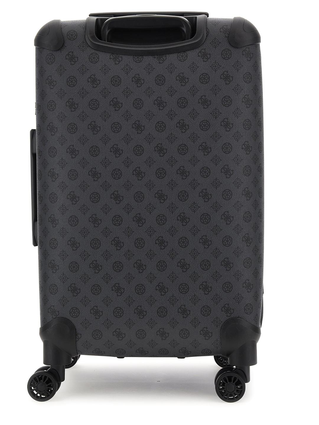 This stylish trolley is perfect for the modern woman on the go it features a sleek charcoal color and is crafted from durable polyurethane fabric with a unique printed pattern the spacious interior provides ample room for all your essentials while the sturdy wheels and telescopic handle ensure smooth and effortless transportation whether you are heading to the airport or just running errands this trolley is the perfect blend of style and functionality