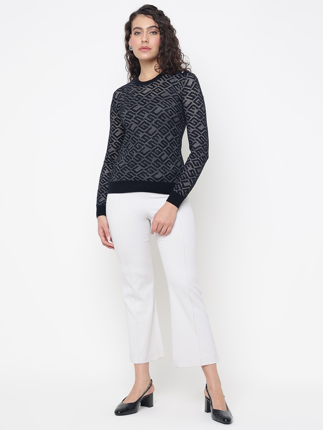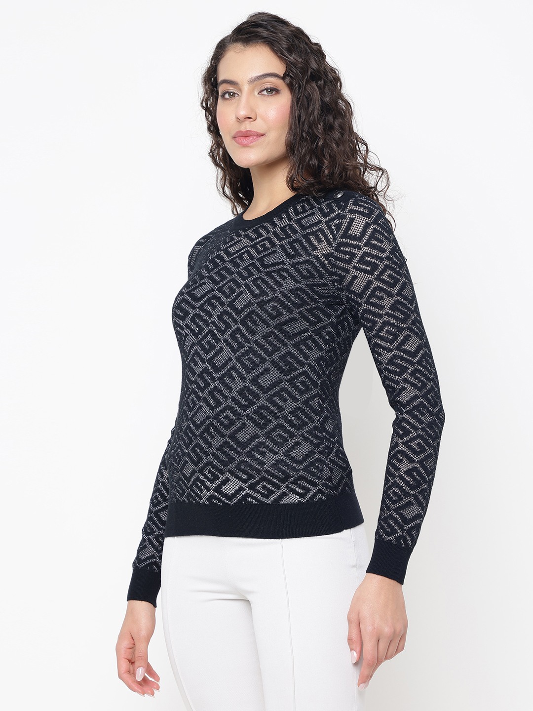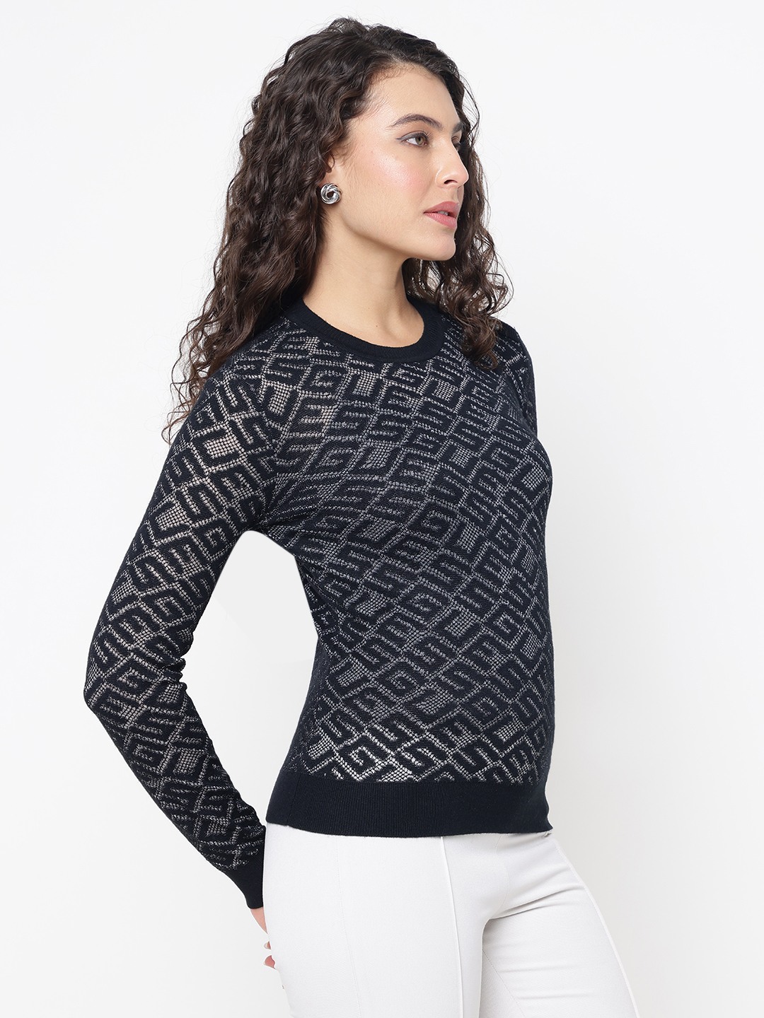 Elevate your wardrobe with our chic pullover sweater, designed for the modern woman who values both style and comfort. This regular-fit sweater features a sophisticated textured pattern that adds a touch of elegance to any outfit. Crafted from high-quality polyamide fabric, it offers a soft, luxurious feel against the skin while ensuring durability and easy care. The full sleeves and classic round neck provide a timeless silhouette, making it perfect for layering or wearing on its own. With a convenient pull-on closure, this sweater is as practical as it is stylish, effortlessly complementing your everyday look. Ideal for any occasion, from casual outings to cozy evenings, this versatile piece is a must-have addition to your seasonal wardrobe.