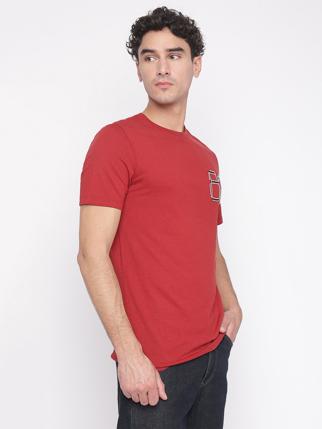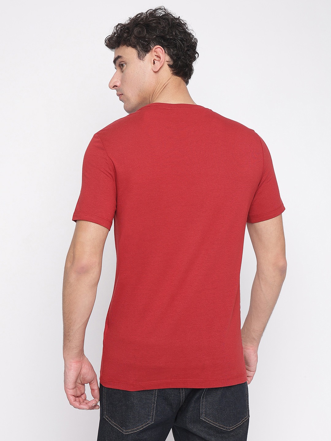 Cherry Merlot Solid Round Neck Short Sleeves T-Shirt