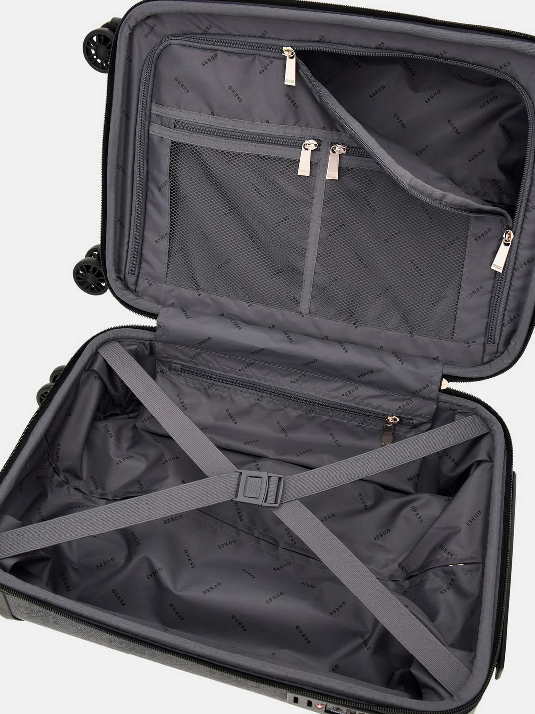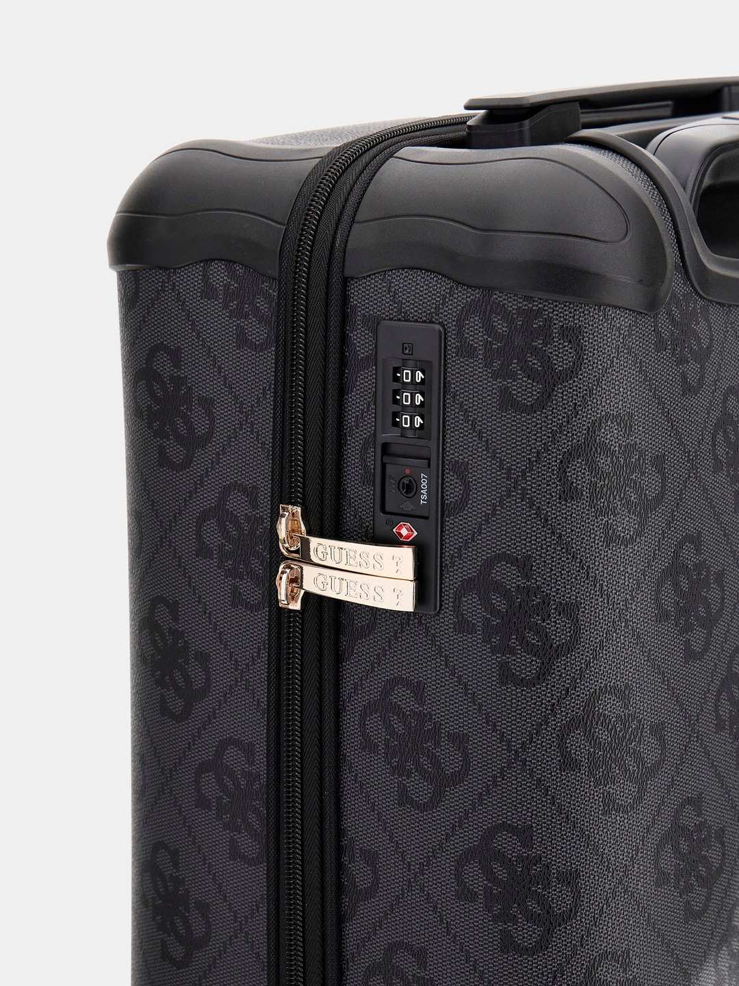 This stylish trolley is perfect for the modern woman on the go it features a sleek charcoal color and is crafted from durable polyurethane fabric with a printed pattern that adds a touch of personality the spacious interior provides ample room for all your essentials while the sturdy wheels and telescopic handle ensure smooth and effortless transportation whether you are heading to the airport or just running errands this trolley is sure to turn heads and make your travels a breeze