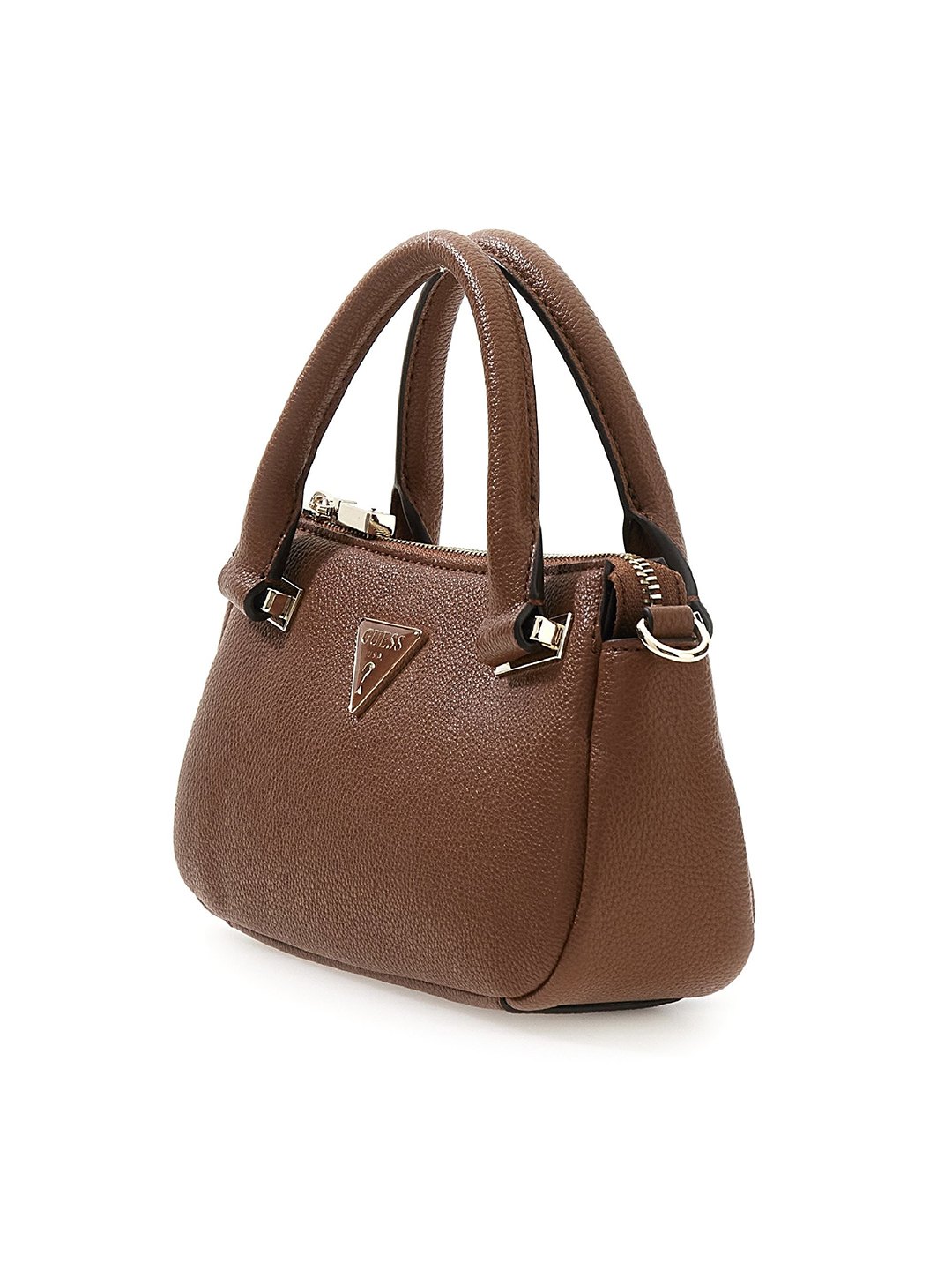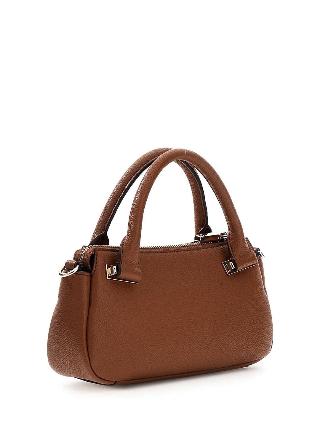 Cognac Solid Zipper Evie Mini Satchel Bag