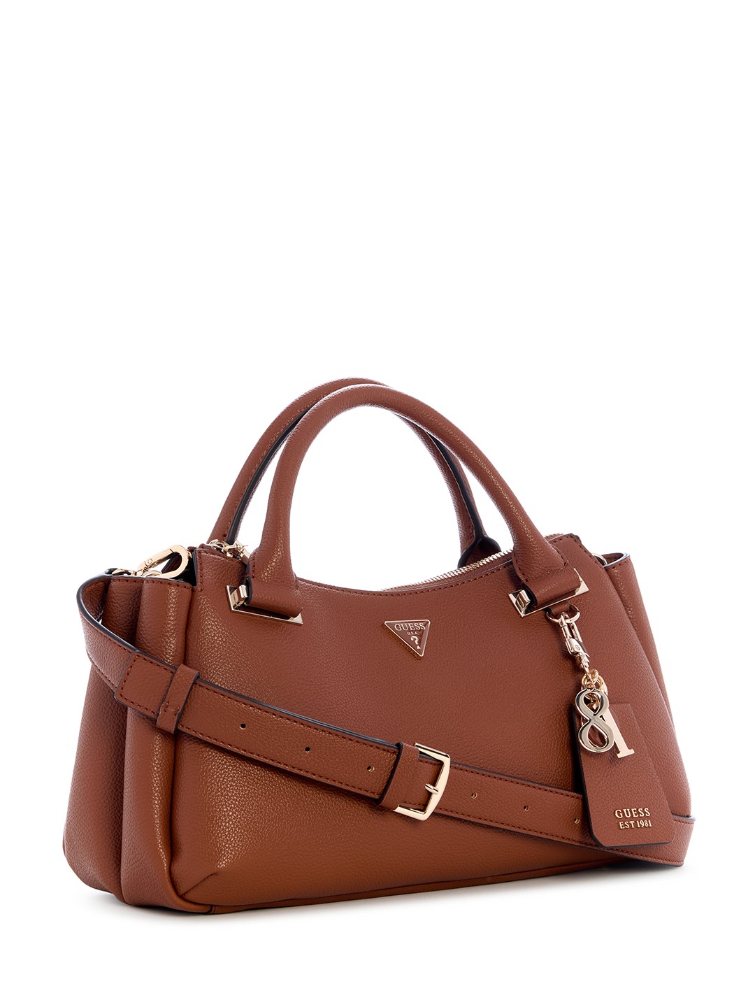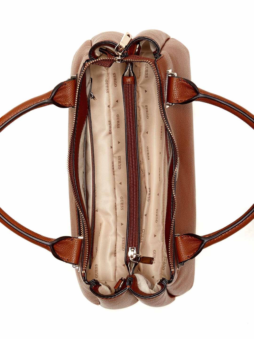 Cognac Solid Zipper Evie Triple Compartment Satchel Bag
