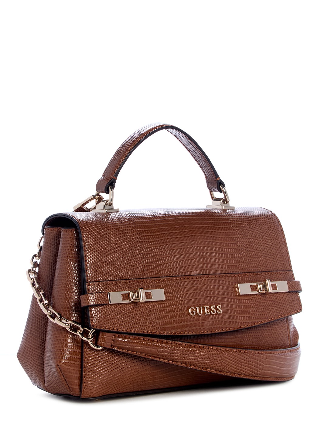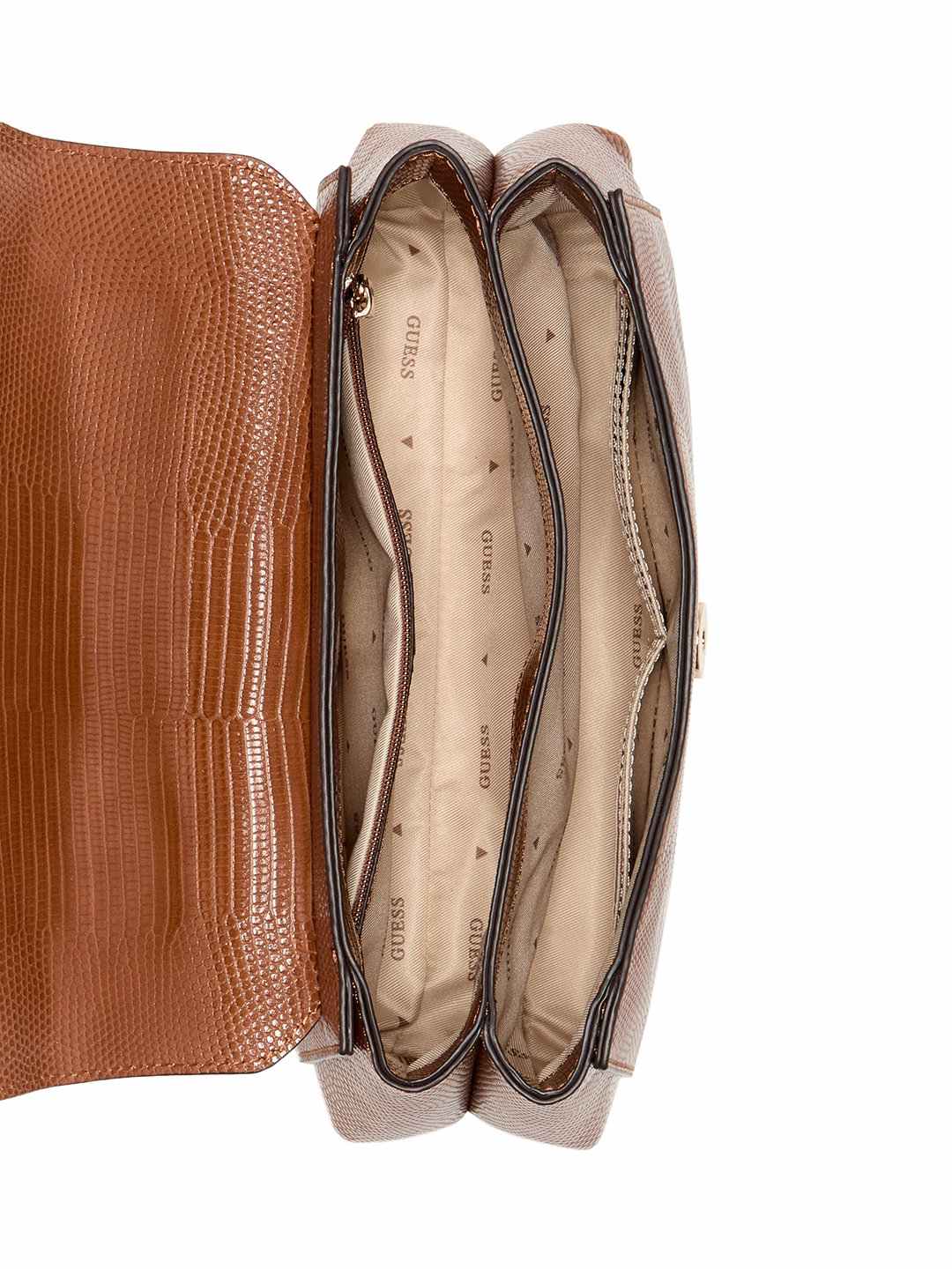 Cognac Textured Magnet Melinda Top Handle Flap Shoulder Bag