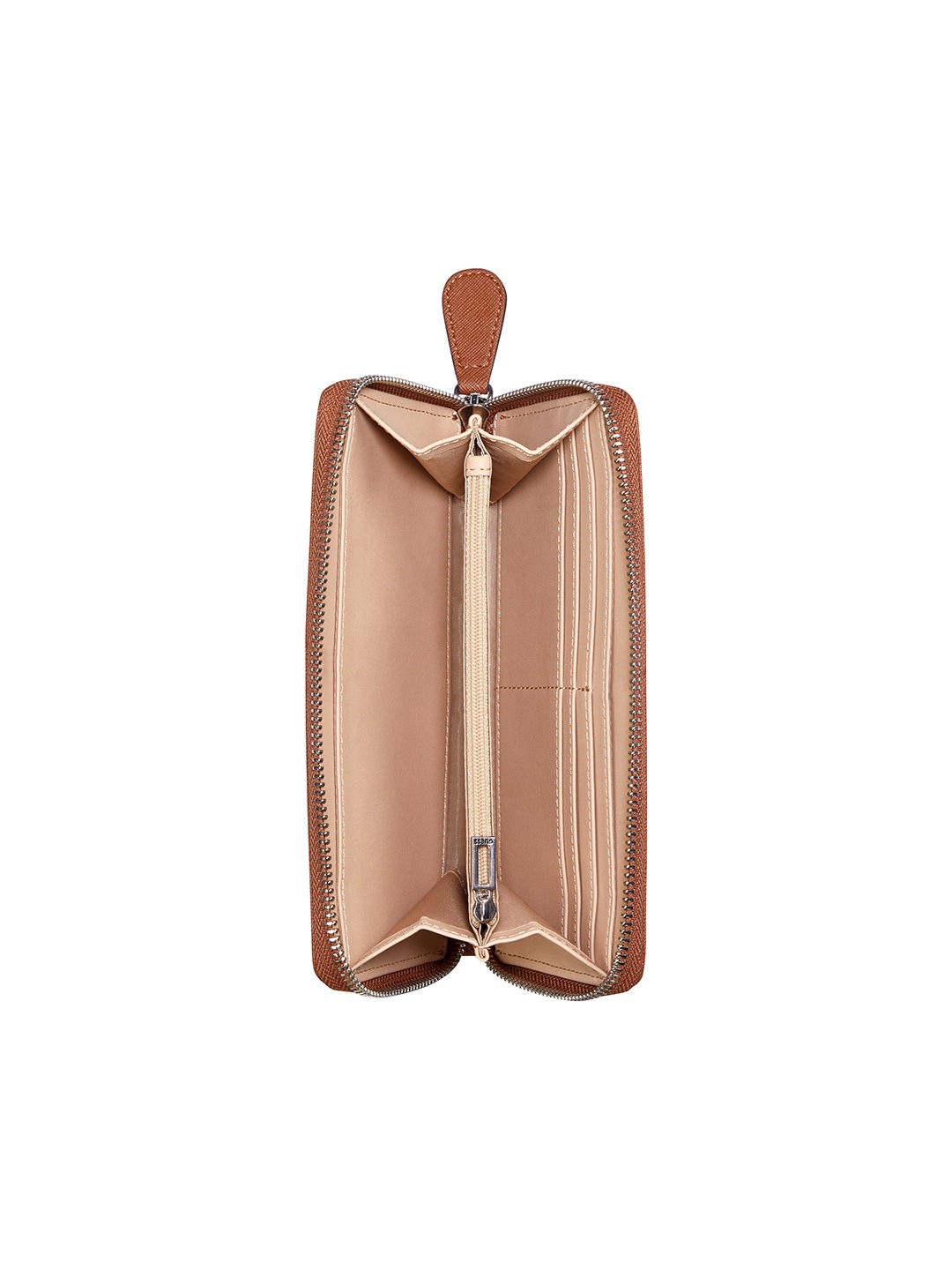Discover the perfect blend of style and functionality with our zip around wallet for women in a rich brown color. Crafted from durable pvc fabric, this wallet features a sophisticated textured pattern that adds a touch of elegance to your everyday essentials. The zip-around design ensures your belongings are secure while providing easy access. Inside, you'll find multiple card slots, a spacious compartment for cash, and a zippered coin pocket. Ideal for the modern woman, this wallet combines practicality with timeless style.