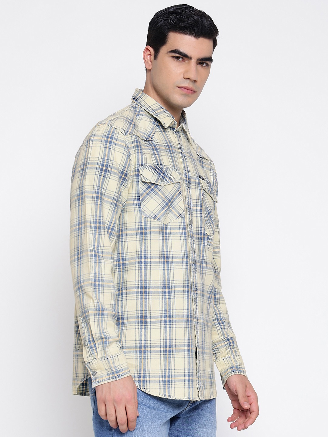 Elevate your wardrobe with our classic regular fit plaid check shirt, designed for the modern man who values both style and comfort. Crafted from pure cotton fabric, this shirt ensures breathability and a soft touch against the skin, making it perfect for all-day wear. Featuring a timeless spread collar and full sleeves, it offers a versatile look that transitions seamlessly from office to casual outings. The button closure adds a touch of sophistication, while the plaid pattern provides a stylish edge. Ideal for any occasion, this shirt is a must-have staple.
