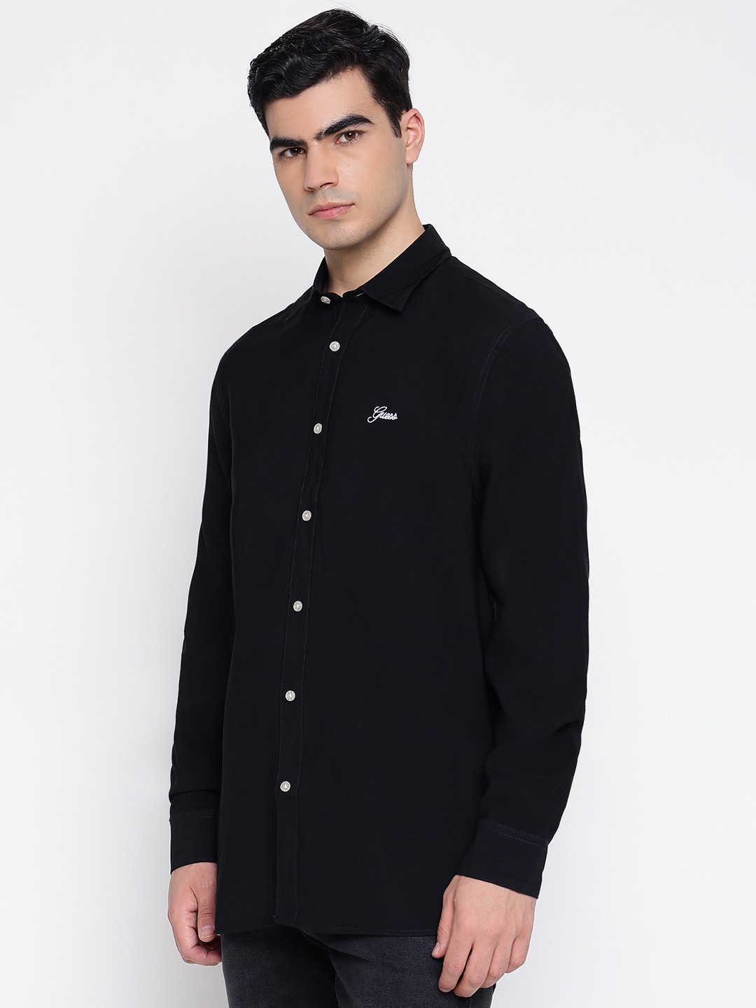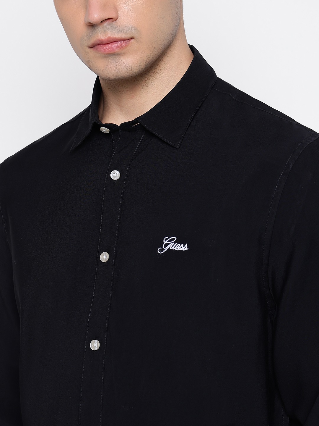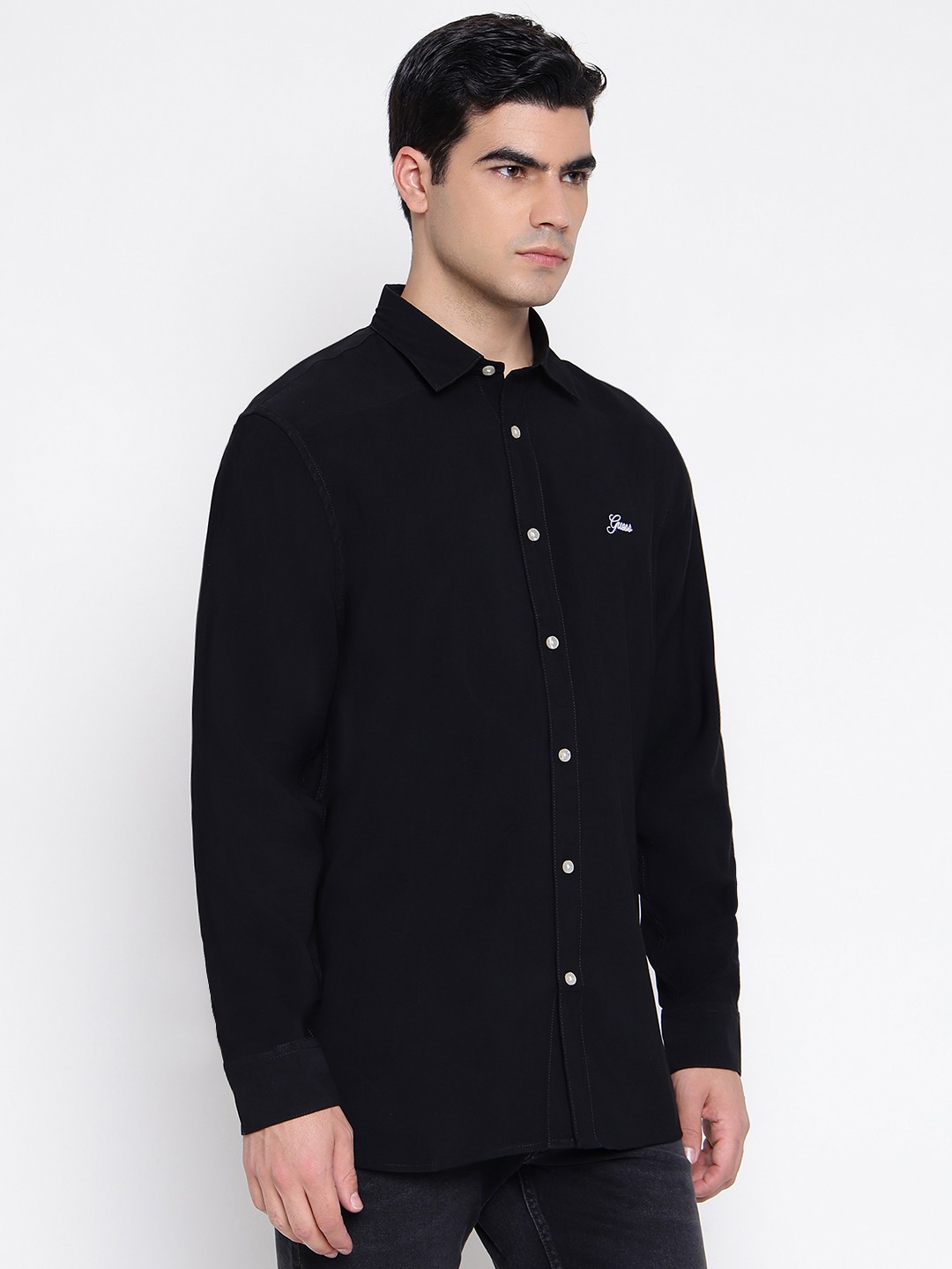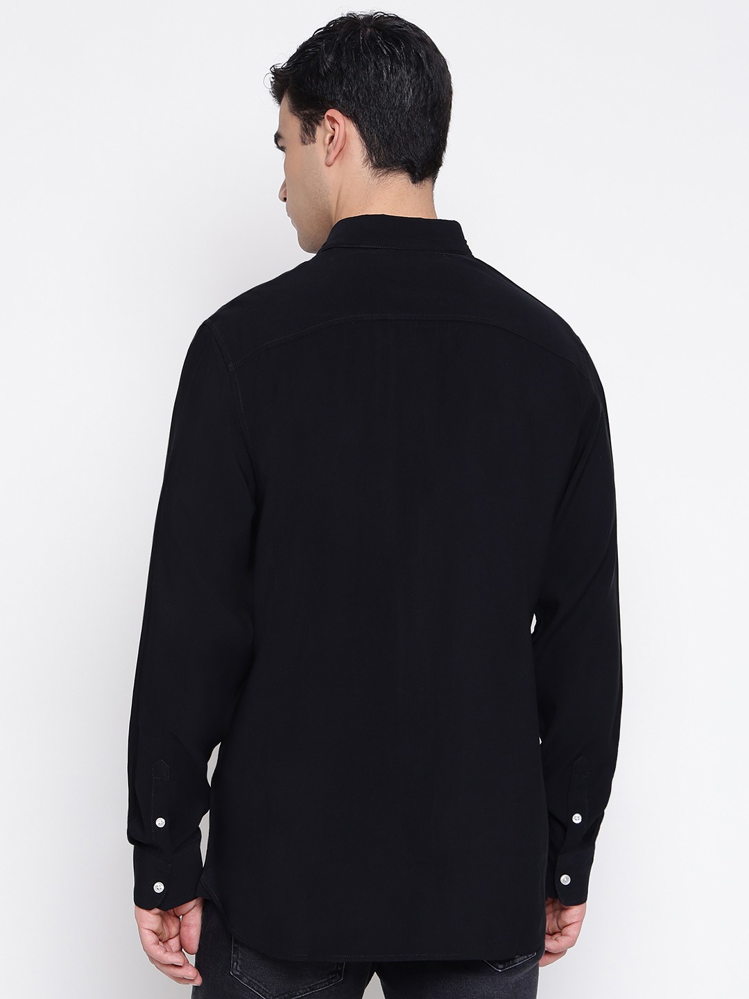 Collins Jet Black Solid Spread Collar Regular Fit Basic Shirt
