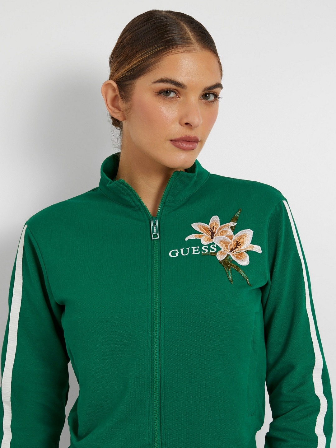 Elevate your wardrobe with our chic green floral print sweatshirt, designed for the modern woman who values both style and comfort. This regular fit piece features a vibrant floral pattern that adds a touch of nature-inspired elegance to your look. Crafted from a premium cotton blend fabric, it ensures softness and breathability for all-day wear. The full sleeves provide warmth, while the high neck offers a sophisticated edge. A convenient zipper closure allows for easy wear and versatility. Perfect for casual outings or cozy days at home, this sweatshirt is a must-have addition to your collection.