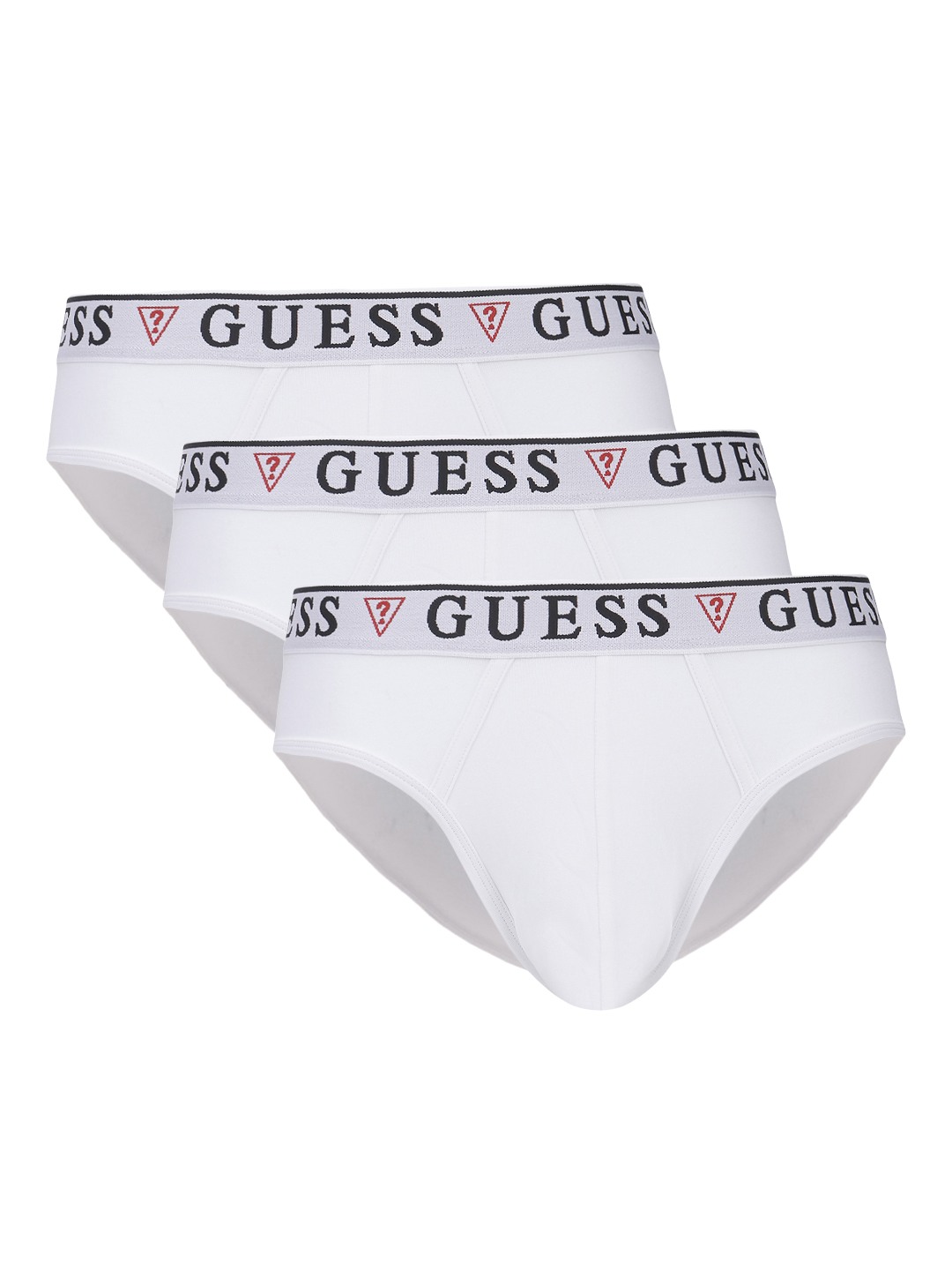 • Upgrade your essentials with the Guess men pack of 3 briefs. Made from a premium, breathable fabric blend, these briefs are designed for all-day comfort and a perfect fit. The elastic waistband showcases the iconic Guess logo, adding a touch of style to your everyday wear.