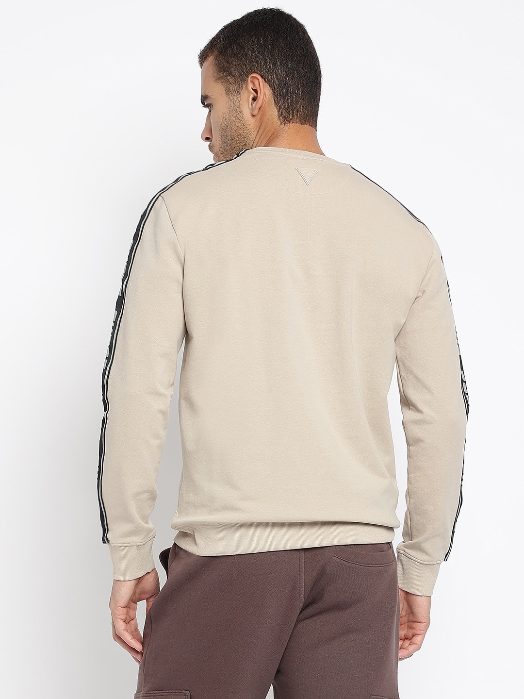 Elevate your casual wardrobe with our Men's Beige Sweatshirt, designed for comfort and style. This regular-fit sweatshirt features a modern printed pattern that adds a touch of flair to any outfit. Crafted from a premium cotton blend fabric, it ensures breathability and softness, making it perfect for all-day wear. The full sleeves provide warmth and versatility, while the classic round neck offers a timeless look. With its convenient pull-on closure, this sweatshirt is easy to wear and ideal for layering. Whether you're lounging at home or heading out, this beige sweatshirt is a must-have staple for every man's collection.