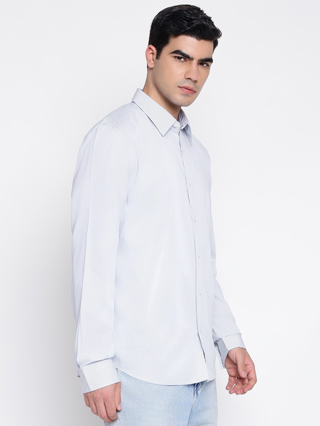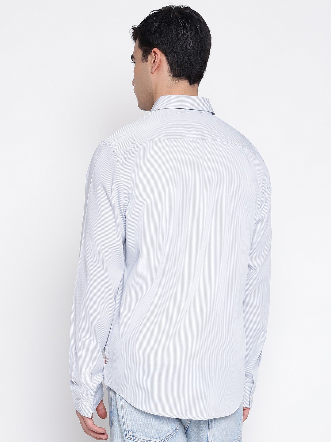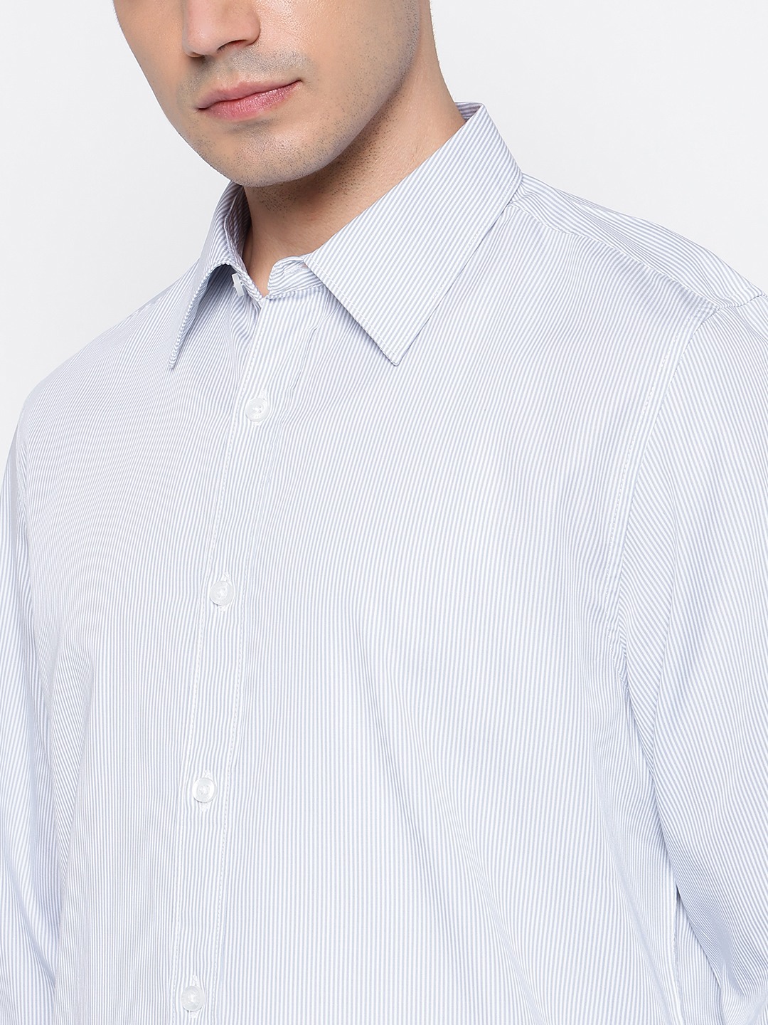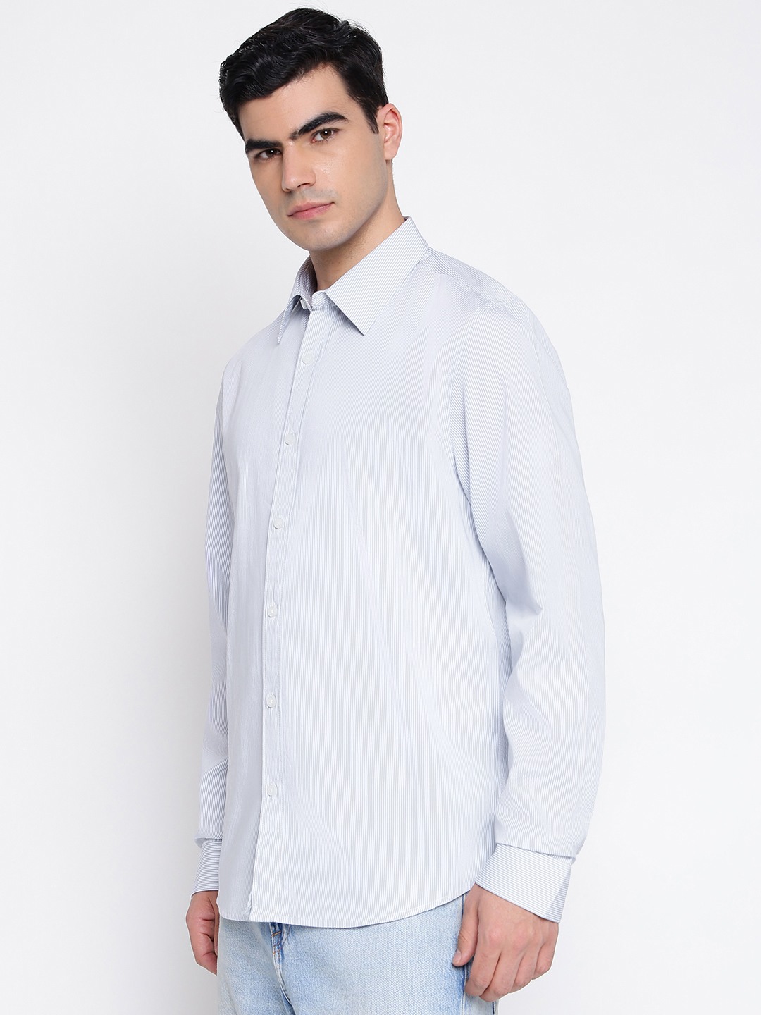 Elevate your wardrobe with our classic men's shirt, featuring a timeless vertical stripes pattern that exudes sophistication. Crafted from pure cotton fabric, this shirt ensures breathability and comfort for all-day wear. The regular fit offers a flattering silhouette, while the full sleeves and spread collar add a touch of elegance. Designed with a convenient button closure, this versatile piece is perfect for both formal and casual occasions. Pair it with tailored trousers or jeans for a polished look that never goes out of style.