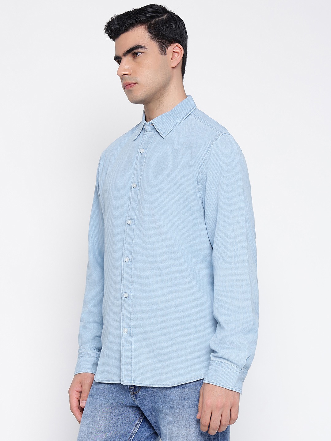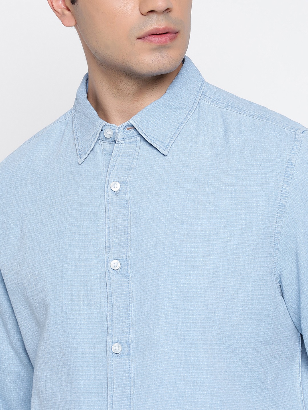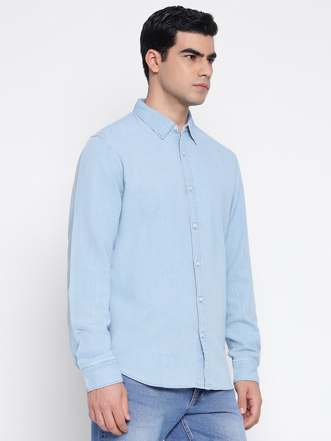 Elevate your wardrobe with our regular fit textured pattern shirt, designed for the modern man who values style and comfort. Crafted from pure cotton fabric, this shirt offers breathability and a soft touch, ensuring all-day comfort. The full sleeves and spread collar add a touch of sophistication, making it perfect for both casual and formal occasions. Featuring a classic button closure, this shirt provides a timeless look with a contemporary twist. Ideal for pairing with jeans or trousers, it's a versatile addition to any closet.