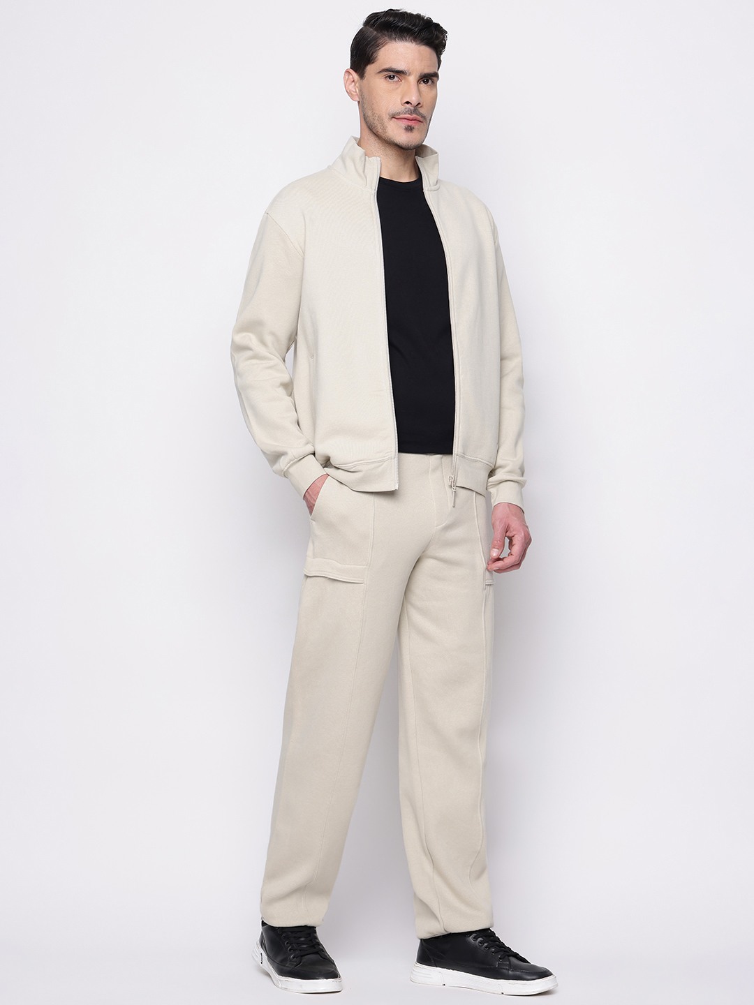 Experience unparalleled comfort and style with our cream-colored trackpants, crafted from a premium cotton blend fabric. Designed for the modern man, these trackpants offer a regular fit that effortlessly combines ease and elegance. The solid pattern exudes a timeless appeal, making them a versatile addition to any wardrobe. Whether you're lounging at home or stepping out for a casual outing, these trackpants promise to keep you looking sharp and feeling relaxed all day long.