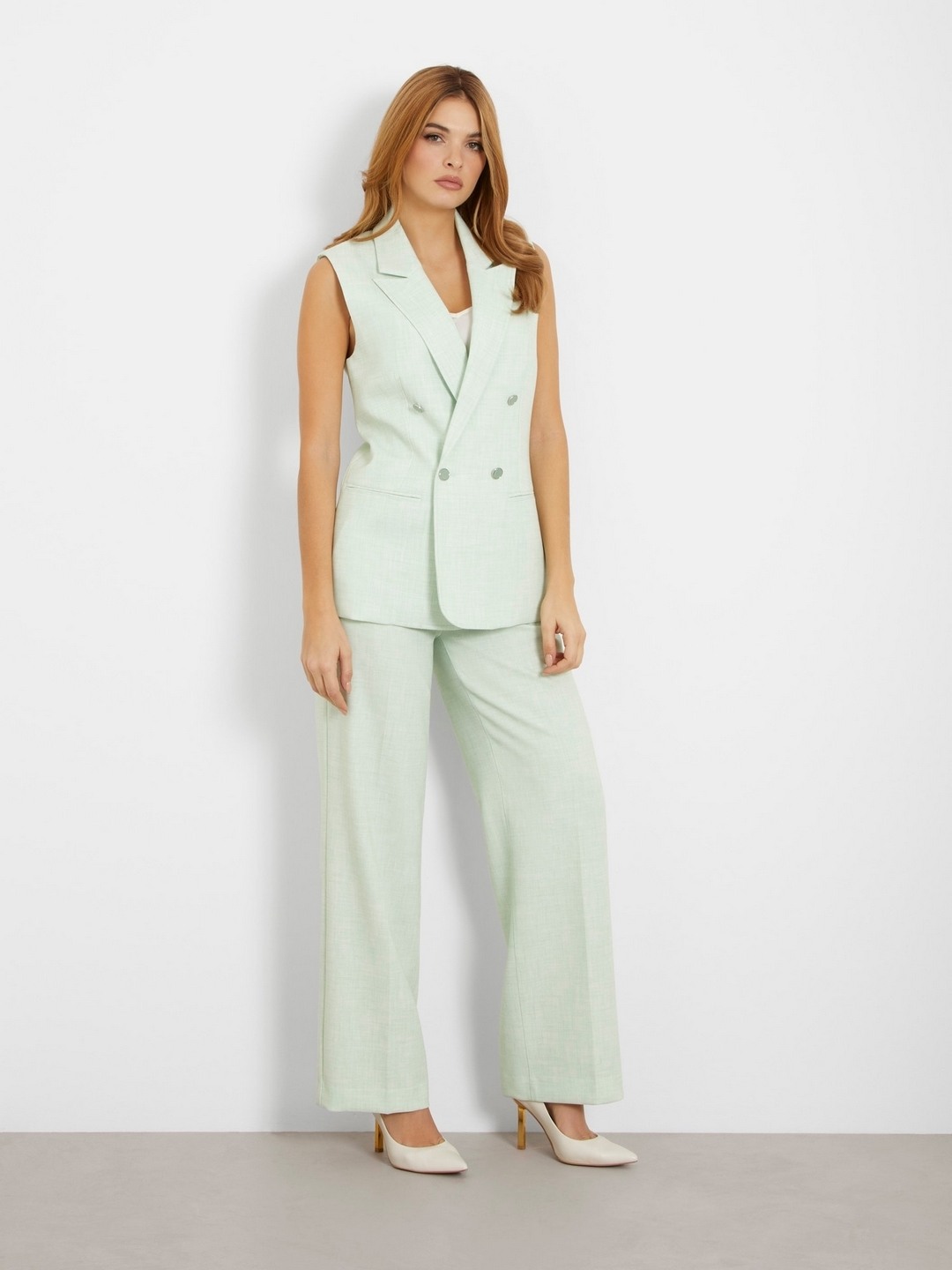 Creme De Menthe Multi Solid Lapel Collar Sleeveless Double Breasted Vest Blazer