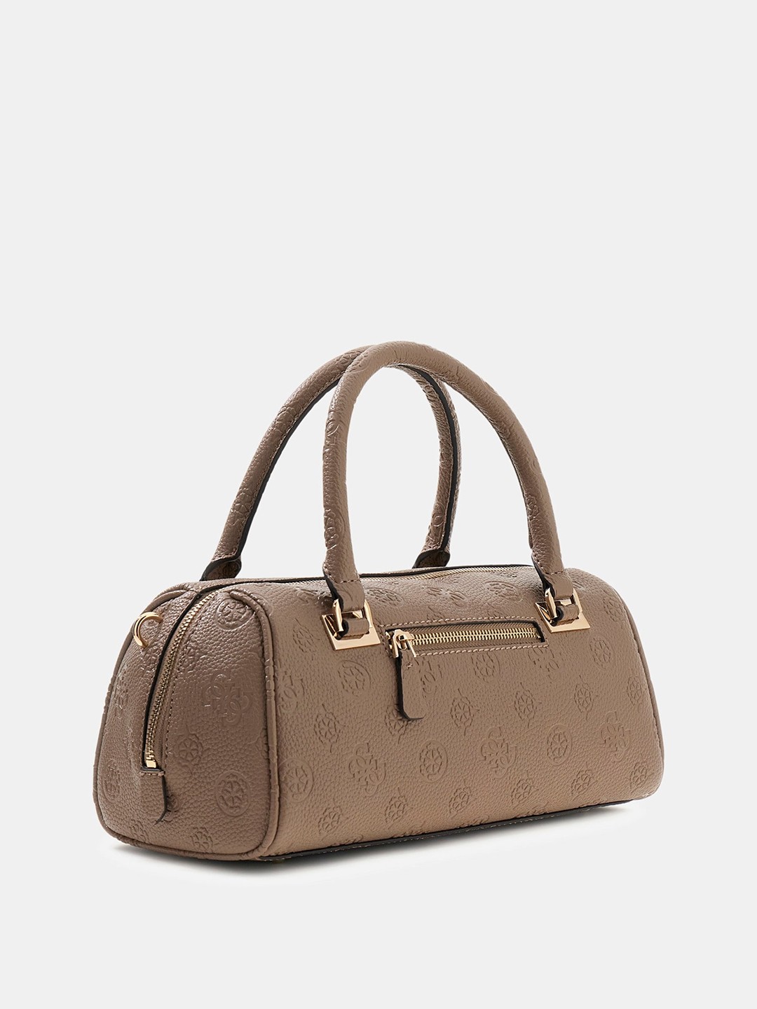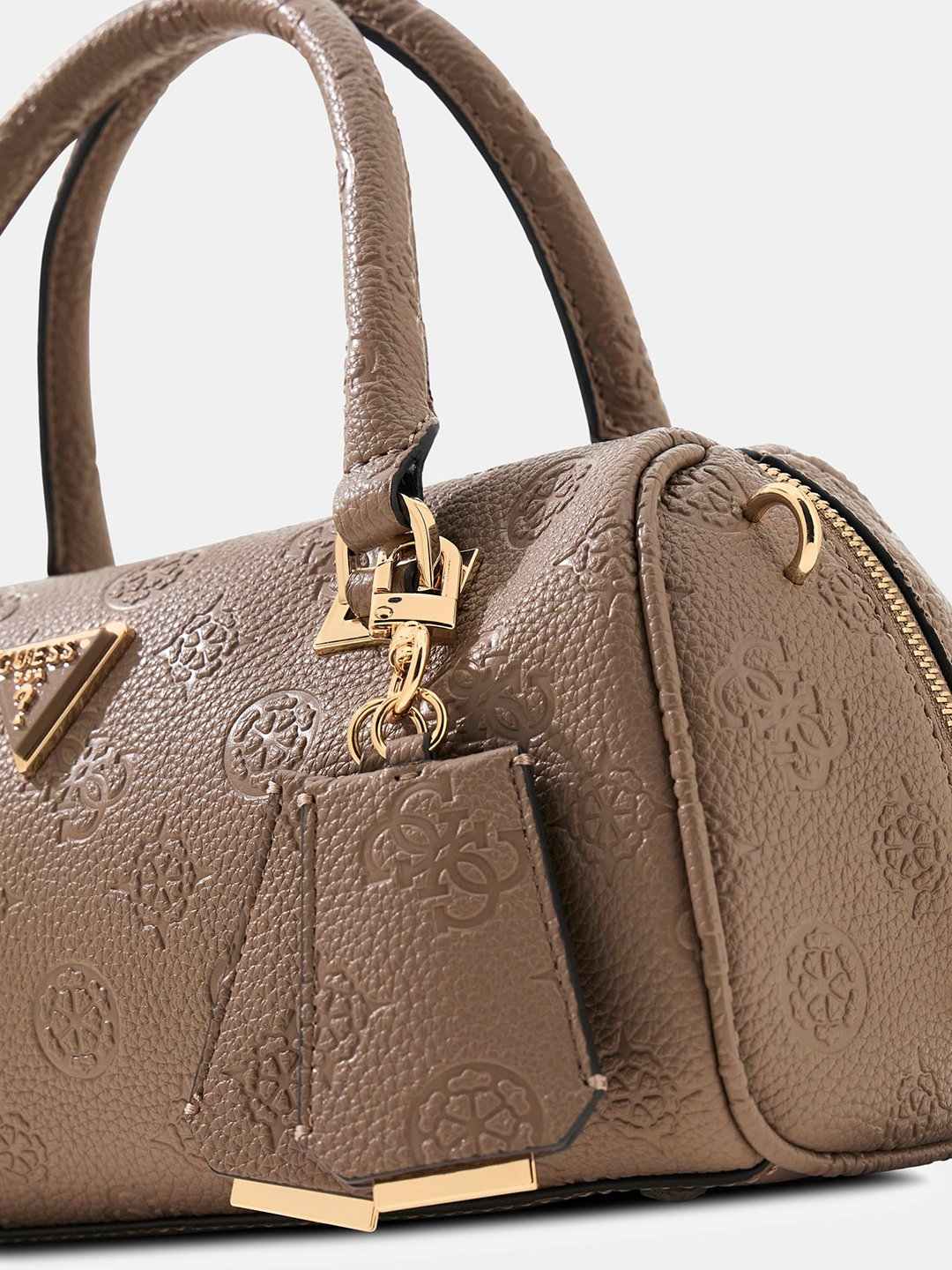 Dark Taupe Logo Textured Zipper Cresidia Box Satchel Bag