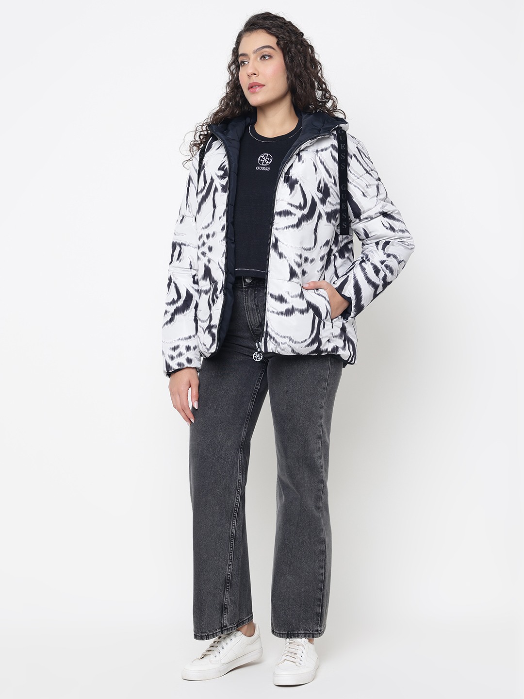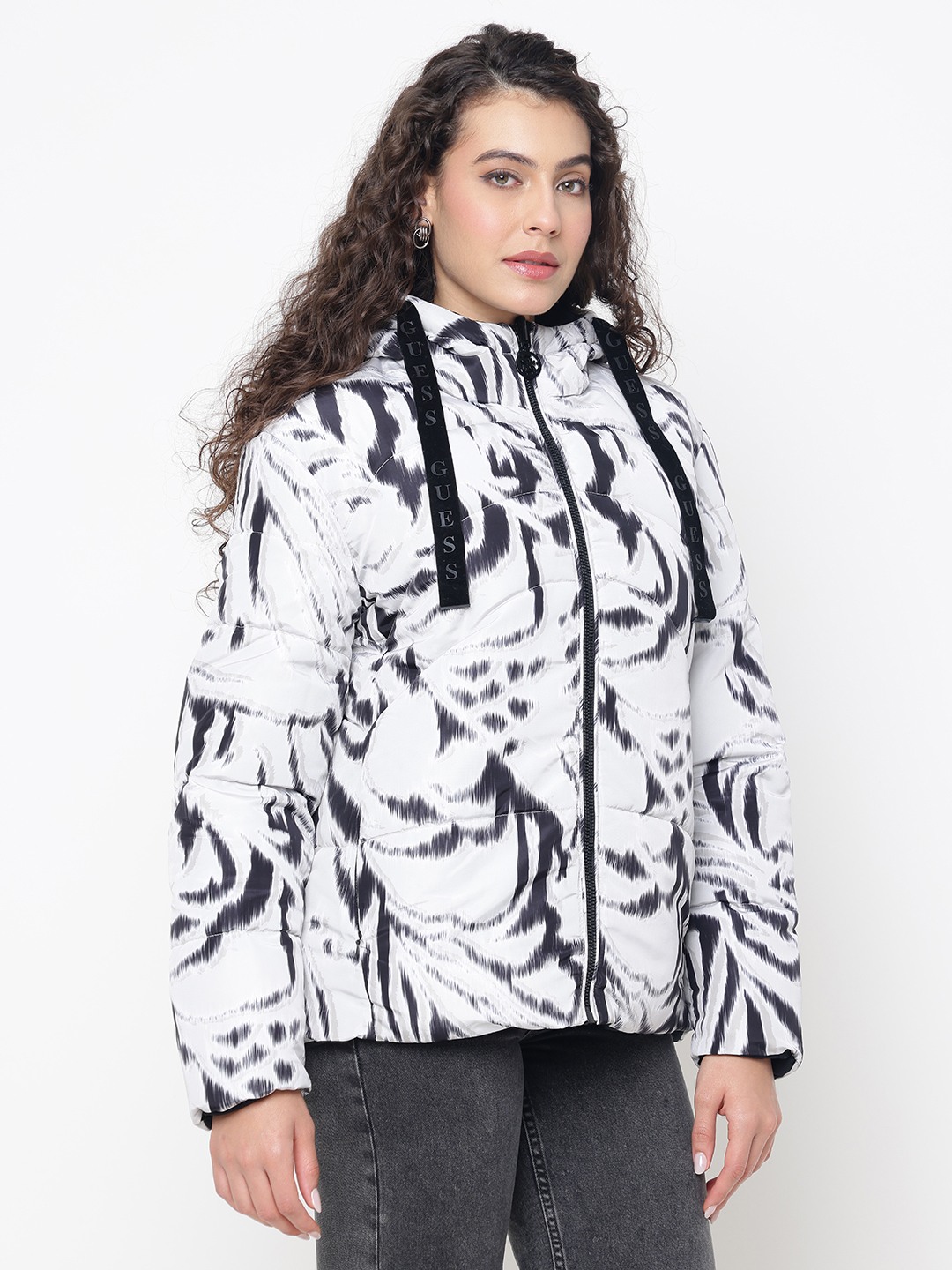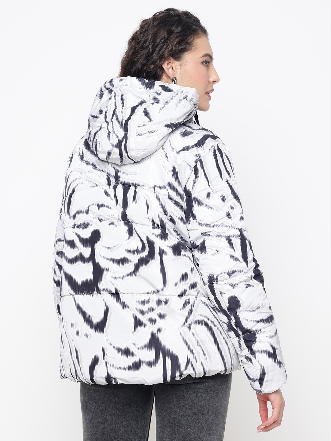 Stay warm and stylish with our women's regular fit puffer jacket, featuring a bold animal print pattern that adds a touch of wild elegance to your winter wardrobe. Crafted from high-quality polyester fabric, this jacket offers both comfort and durability. The full sleeves and hooded neck provide extra warmth and protection against the elements, while the convenient zipper closure ensures easy wear. Perfect for any casual outing or outdoor adventure, this puffer jacket combines functionality with fashion-forward flair.