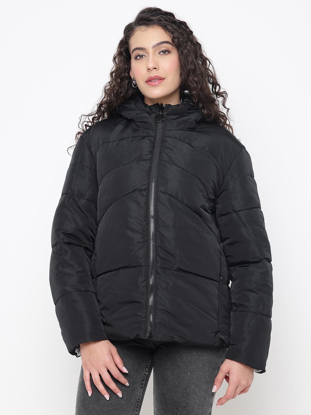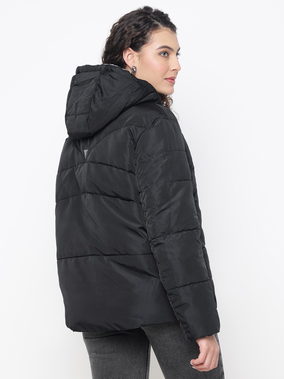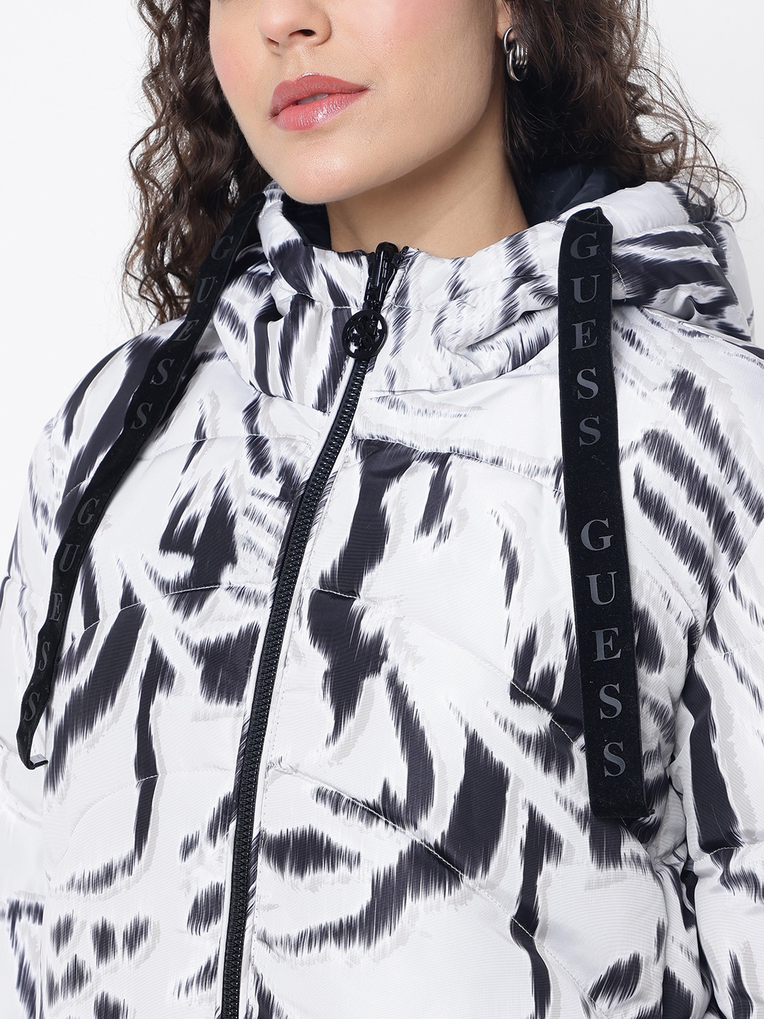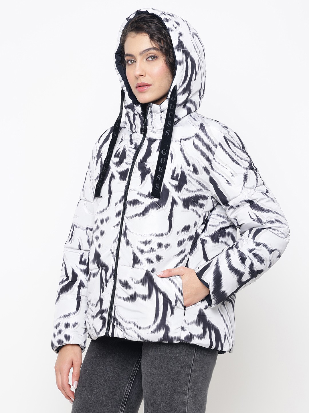 Stay warm and stylish with our women's regular fit puffer jacket, featuring a bold animal print pattern that adds a touch of wild elegance to your winter wardrobe. Crafted from high-quality polyester fabric, this jacket offers both comfort and durability. The full sleeves and hooded neck provide extra warmth and protection against the elements, while the convenient zipper closure ensures easy wear. Perfect for any casual outing or outdoor adventure, this puffer jacket combines functionality with fashion-forward flair.