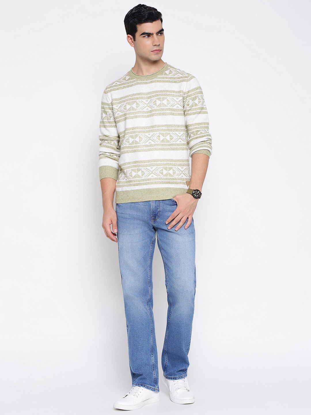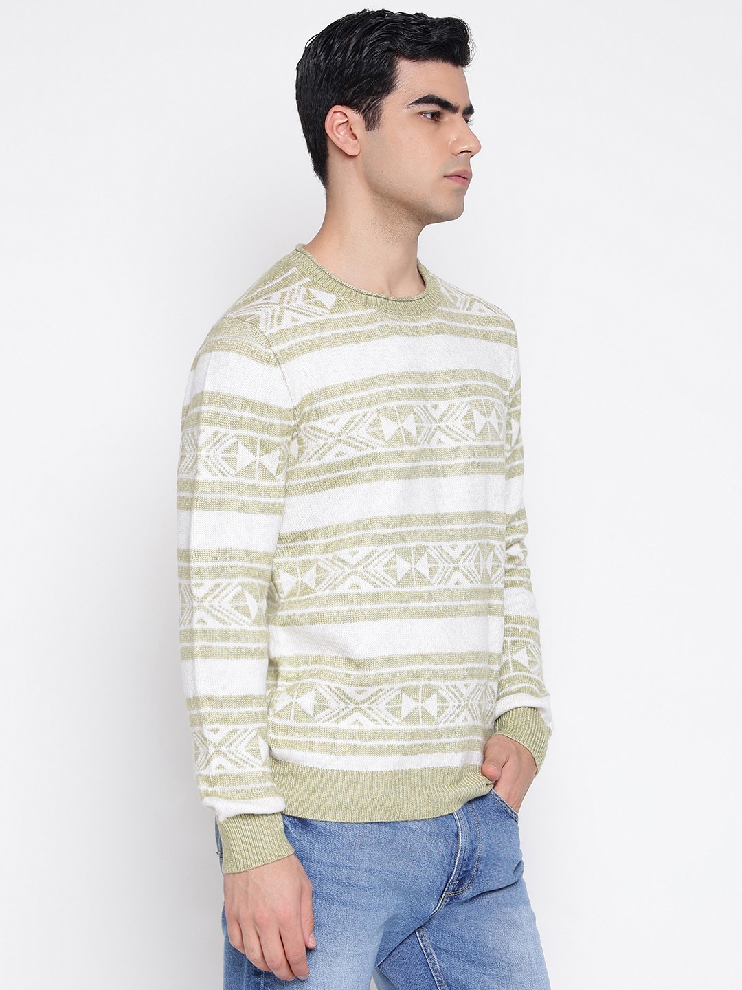Elevate your wardrobe with our men's regular fit pullover sweater, featuring a striking tribal knit pattern that adds a touch of cultural flair to your style. Crafted from high-quality polyester fabric, this sweater offers both comfort and durability, making it perfect for everyday wear. The full sleeves and round neck design provide a classic look, while the pull-on closure ensures easy wearability. Ideal for layering or as a standalone piece, this sweater is a versatile addition to any modern man's collection.