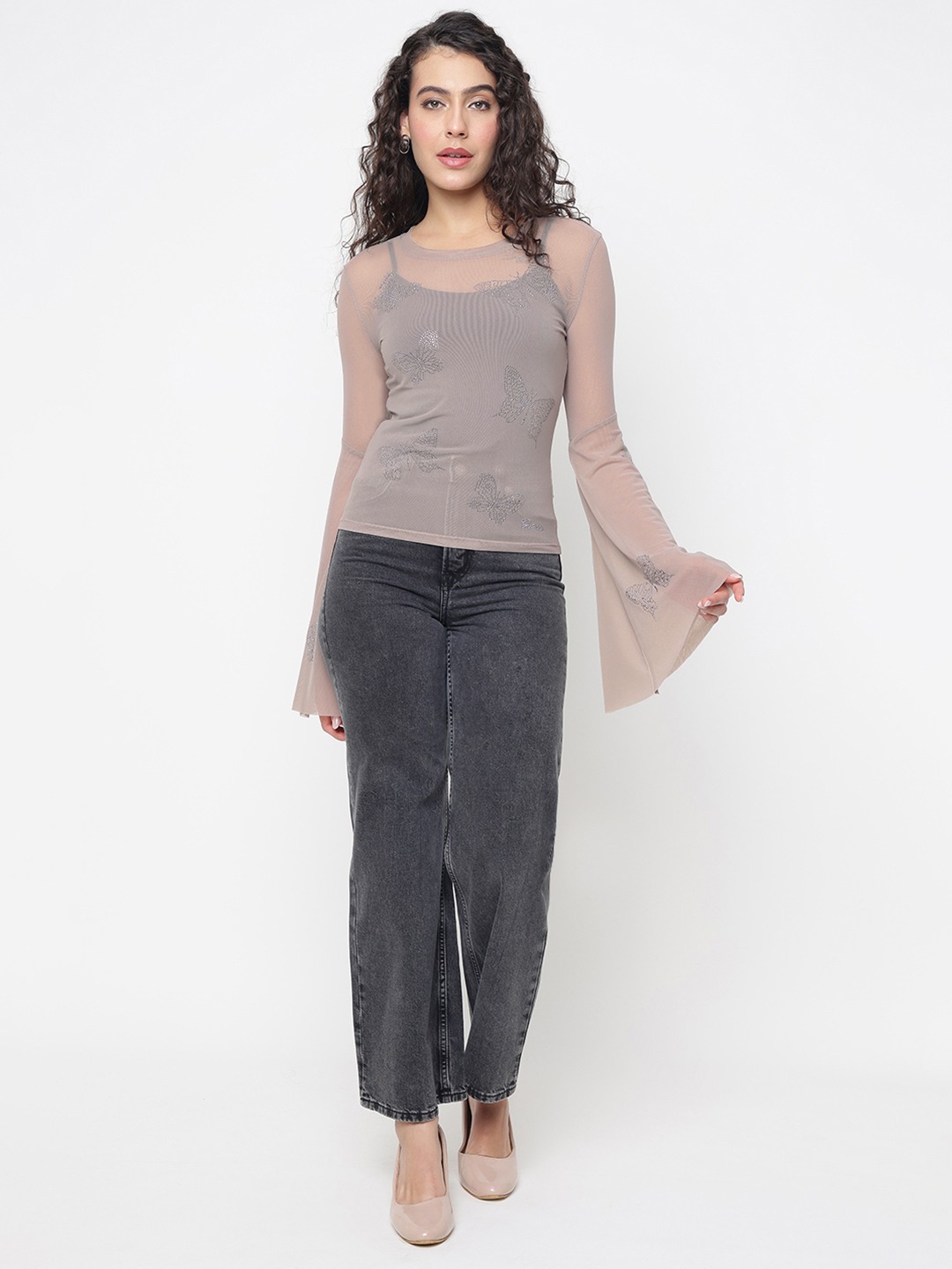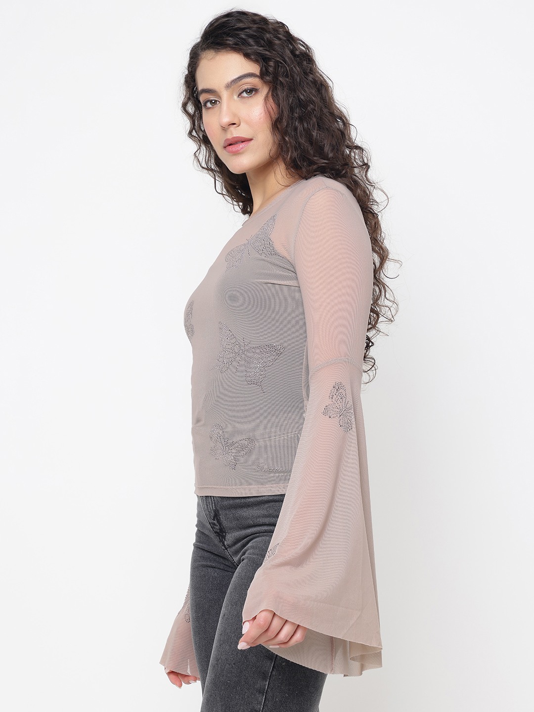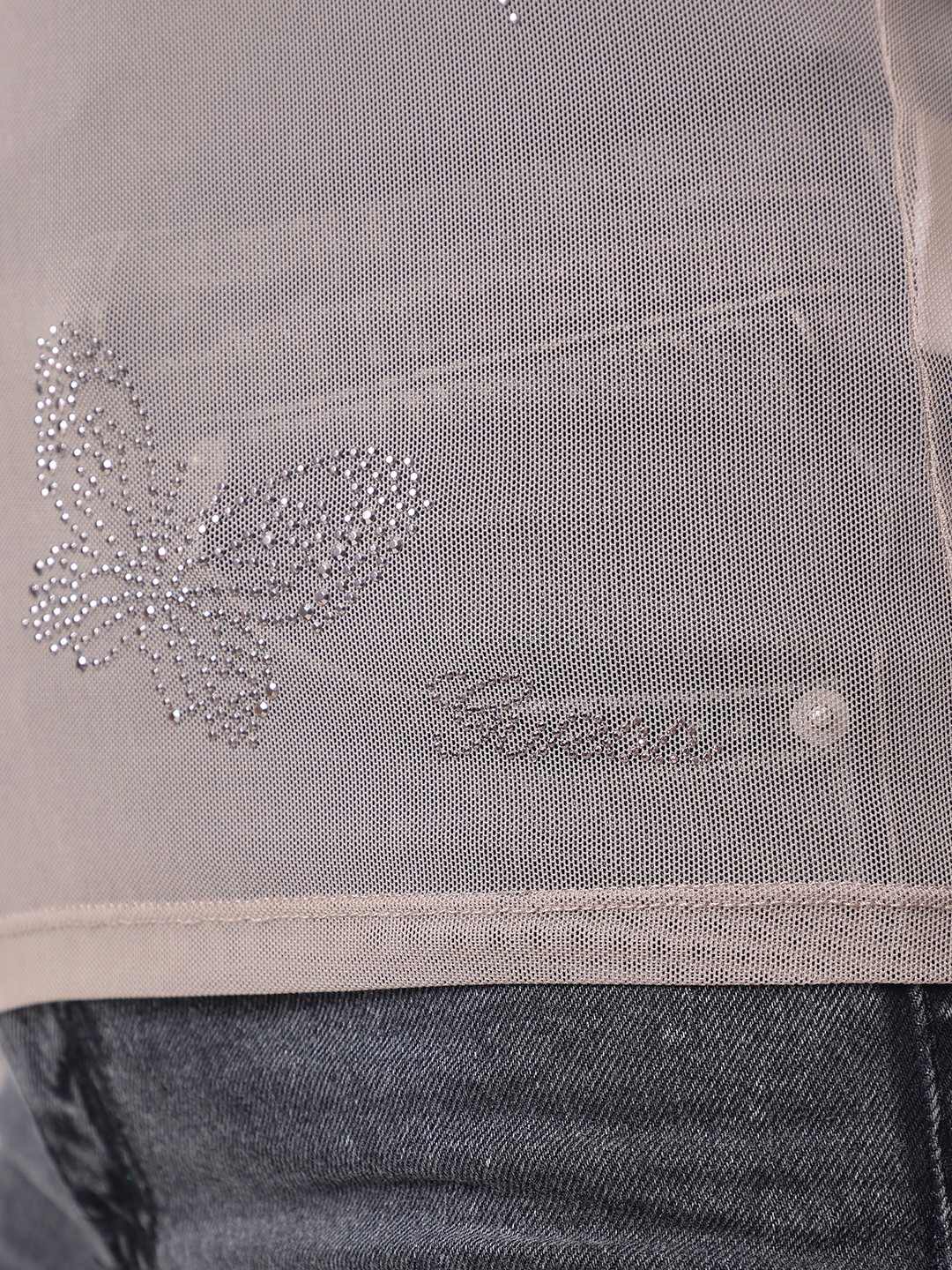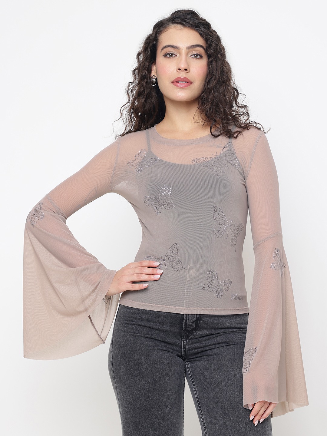 Elevate your wardrobe with our exquisite sheer top, designed for the modern woman who appreciates elegance and style. This regular fit top features an eye-catching embellished pattern that adds a touch of glamour to any outfit. Crafted from high-quality polyamide fabric, it offers a lightweight and breathable feel, perfect for any season. The full sleeves and round neck design provide a classic silhouette, while the convenient pull-on closure ensures effortless wear. Ideal for both casual outings and special occasions, this versatile top is a must-have addition to your fashion collection.