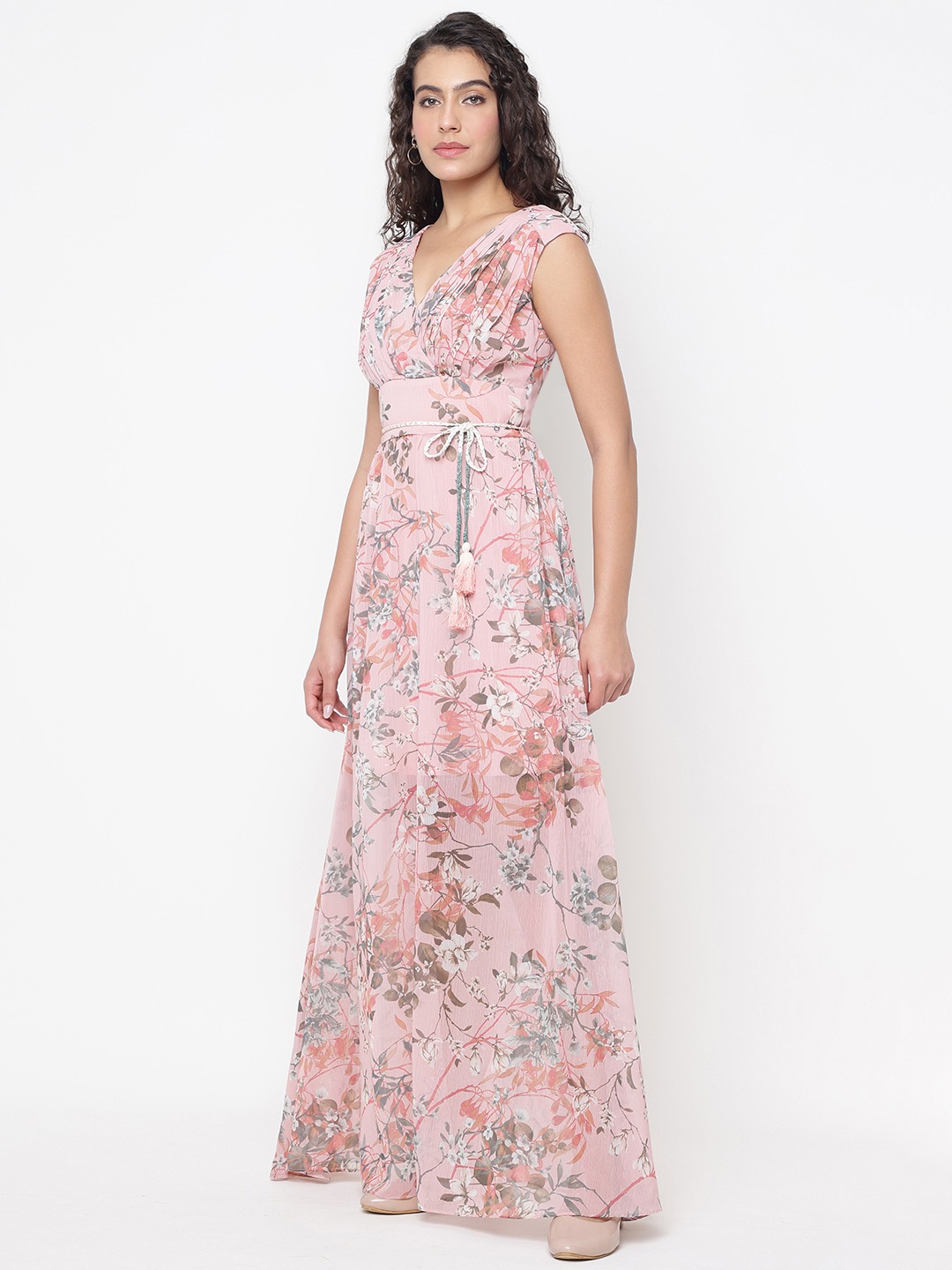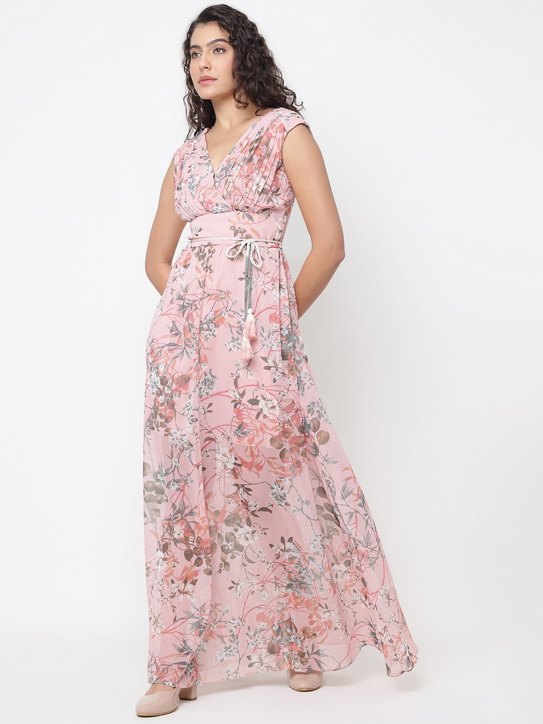 Elevate your wardrobe with our stunning maxi dress, designed for the modern woman who loves a blend of comfort and style. This regular-fit dress features a captivating floral pattern that exudes elegance and charm. The sleeveless design and v-neckline offer a flattering silhouette, perfect for warm weather or layering with your favorite jacket. Crafted from high-quality polyester fabric, it ensures a soft, lightweight feel for all-day wear. The tie-up closure adds a touch of sophistication, allowing for a customizable fit. Ideal for casual outings or special occasions, this maxi dress is a versatile addition to any fashion-forward closet.