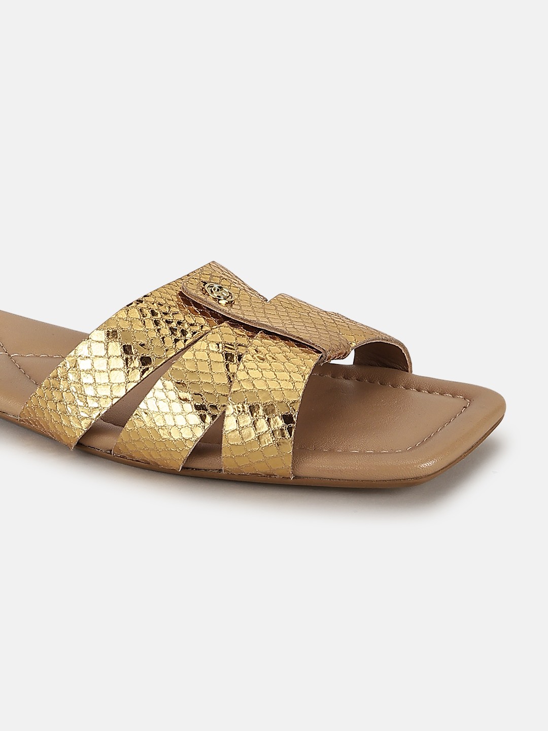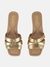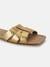 Step into elegance with our flat sandals in a stunning gold color crafted from premium leather. Designed for women who appreciate both style and comfort, these sandals feature a solid pattern that effortlessly complements any outfit. The soft leather ensures a comfortable fit, making them perfect for all-day wear. Whether you're heading to a casual brunch or a summer evening event, these sandals add a touch of sophistication to your look. Embrace the perfect blend of fashion and function with these versatile sandals.