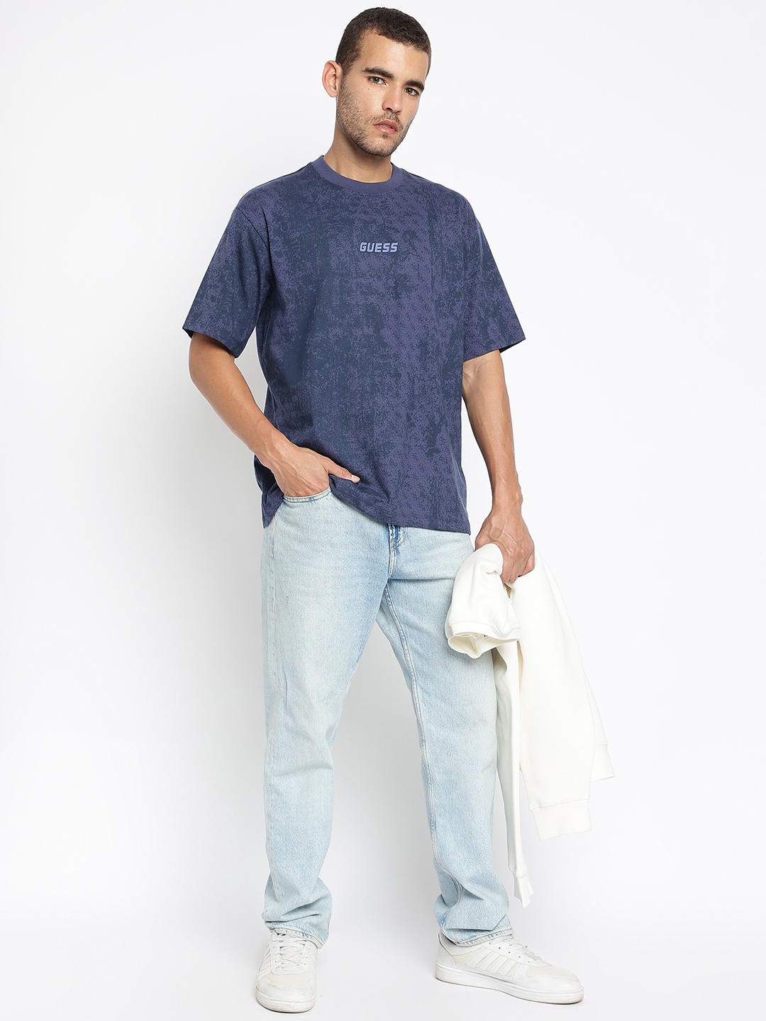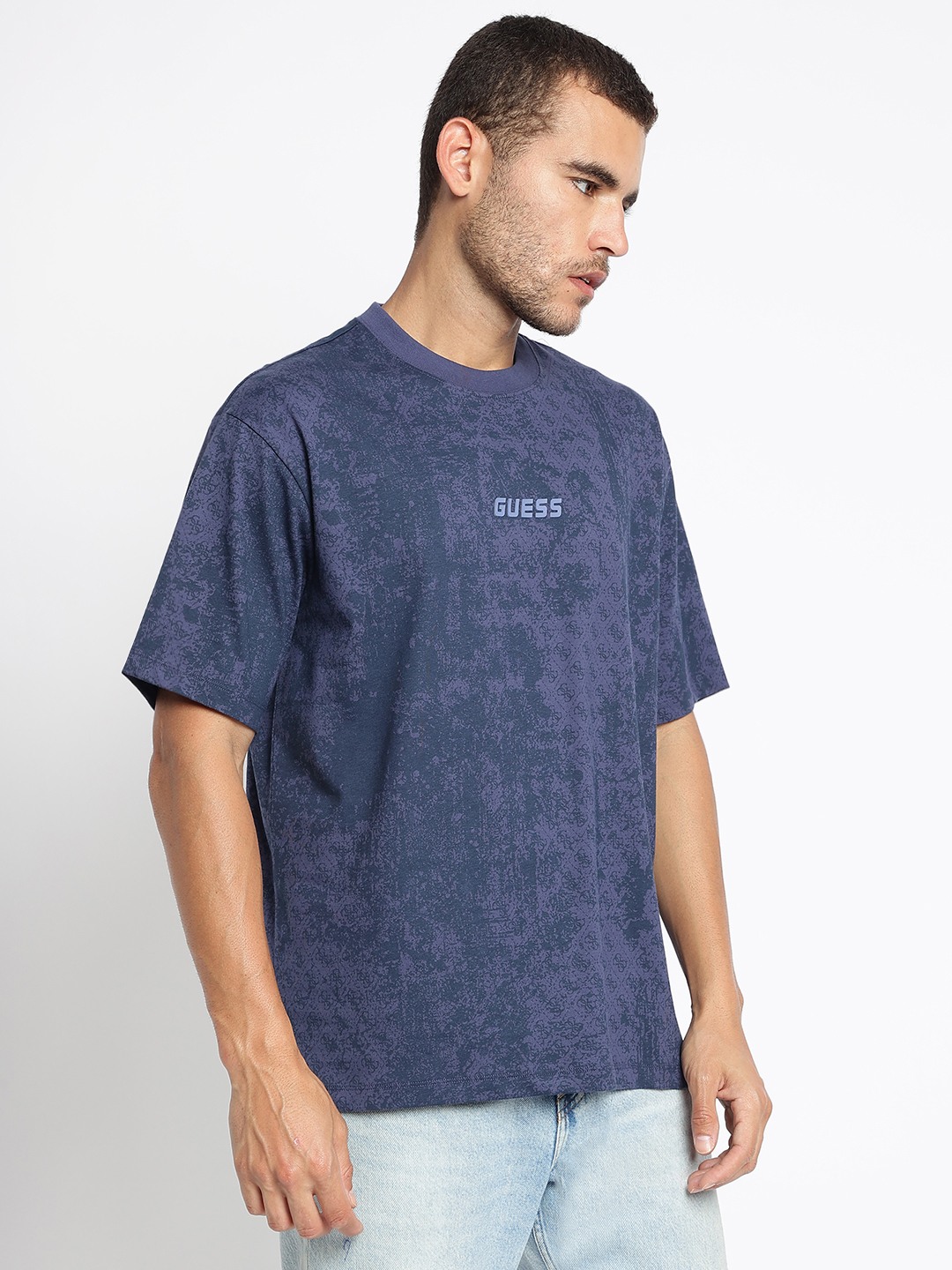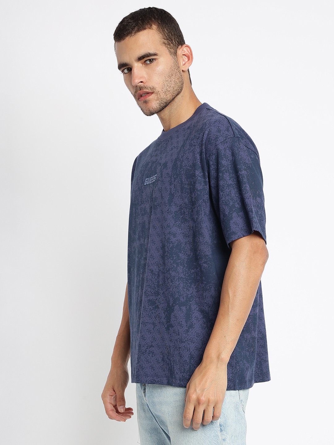 Elevate your casual wardrobe with our Navy Blue Printed T-Shirt, designed for the modern man who values comfort and style. Crafted from pure cotton fabric, this t-shirt ensures breathability and a soft touch against the skin, making it perfect for all-day wear. The regular fit provides a relaxed yet tailored silhouette, while the half sleeves and round neck offer classic appeal. Featuring a unique printed pattern, this t-shirt adds a touch of personality to any outfit. The convenient pull-on closure makes dressing effortless. Ideal for pairing with jeans or shorts, it's a versatile addition to your collection.