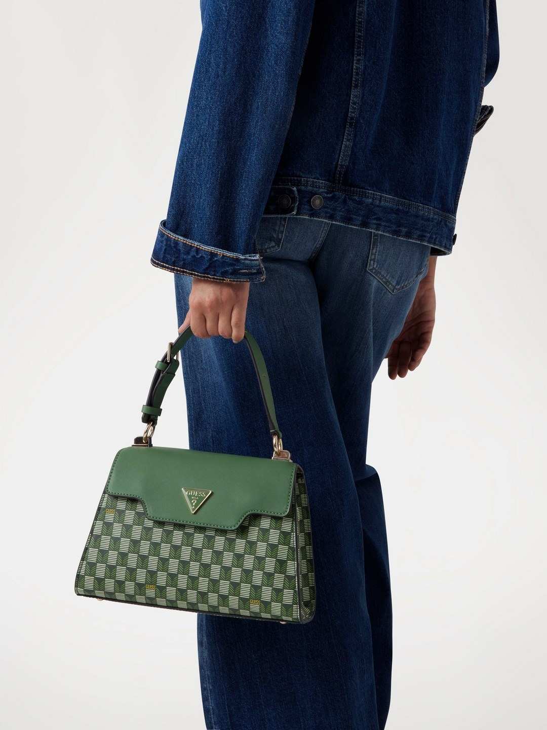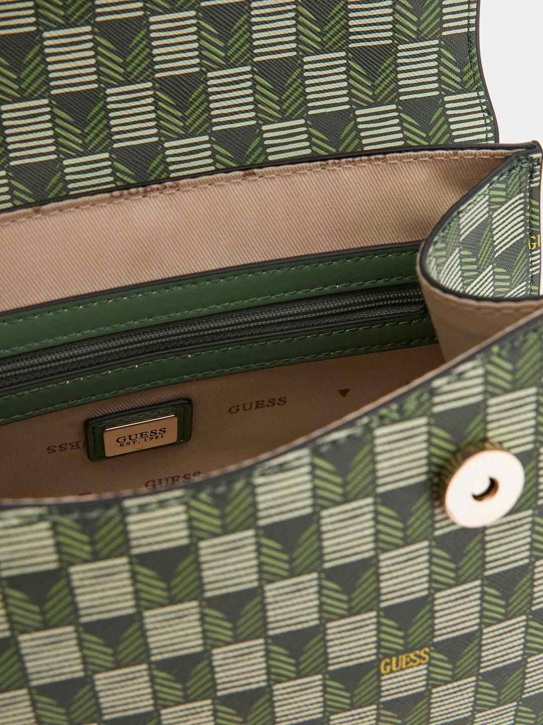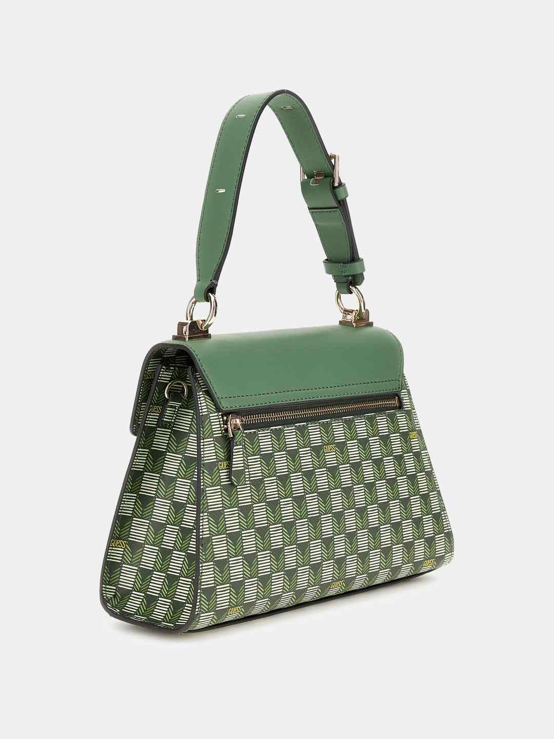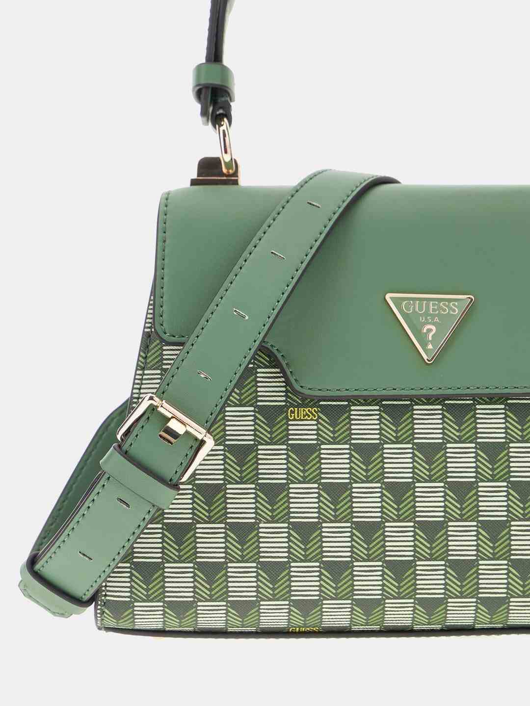Introducing the Top Handle Flap Bag in a stunning Green Logo color, crafted from high-quality PU fabric. This chic accessory features a captivating geometric pattern, making it a standout piece for any fashion-forward woman. The top handle design offers a classic touch, while the flap closure ensures your essentials are secure. Perfect for both casual outings and formal events, this versatile bag effortlessly complements any outfit. Elevate your style with this elegant and functional addition to your wardrobe.