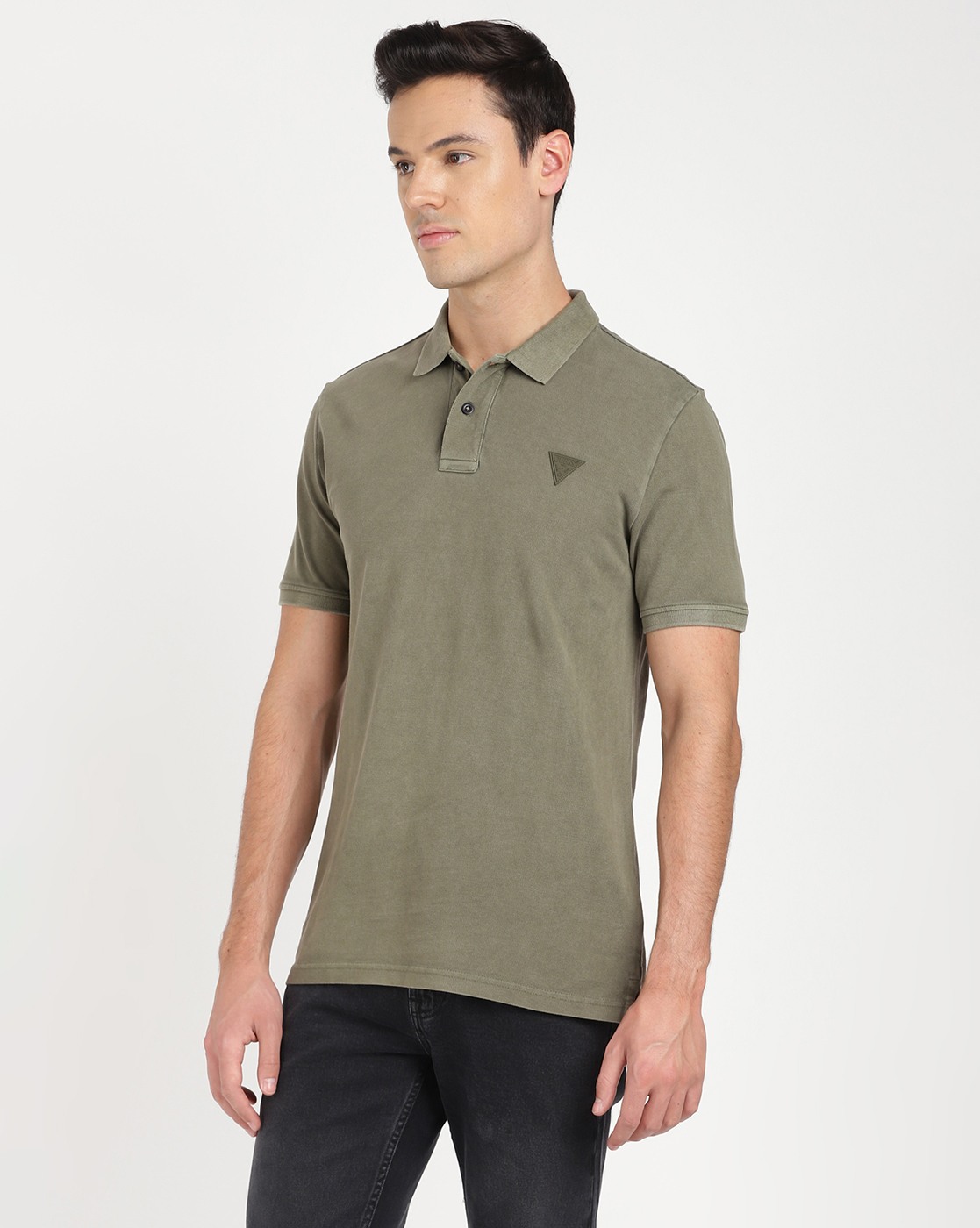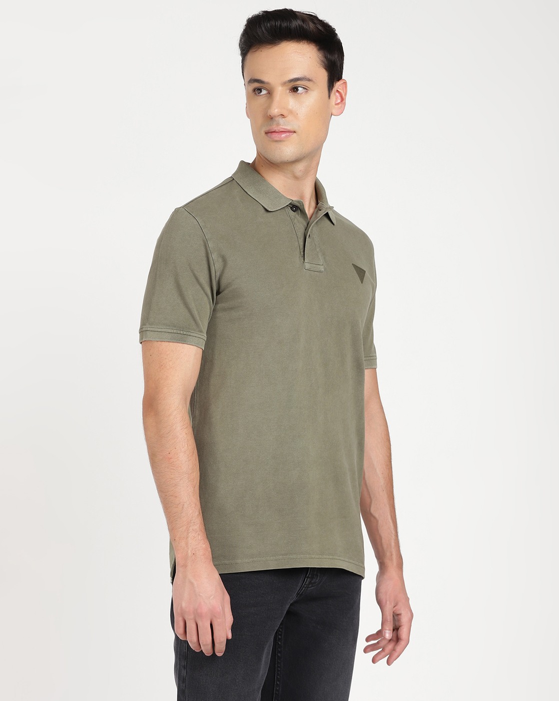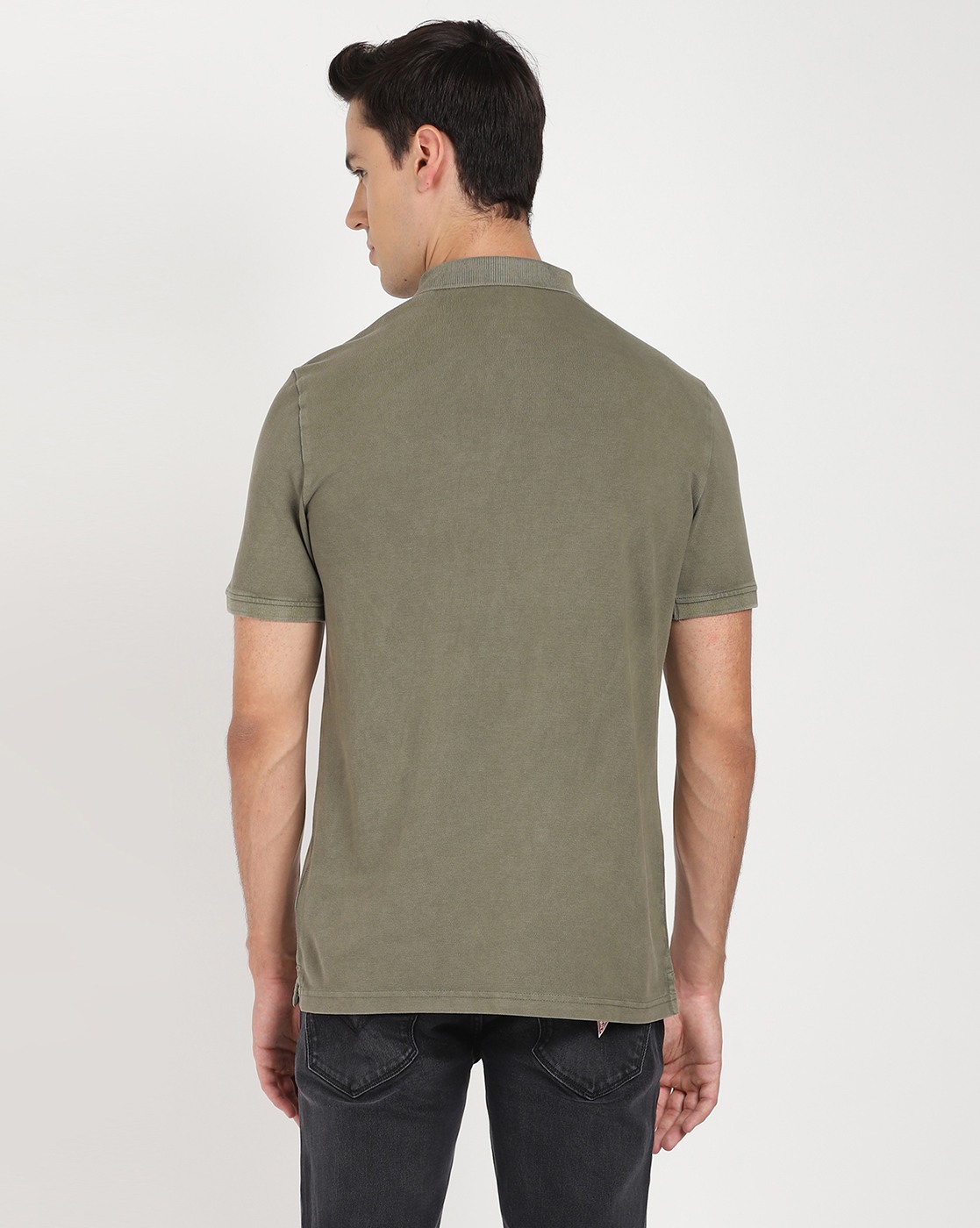 Green Stone Solid Polo Neck Short Sleeves Polo T-Shirt