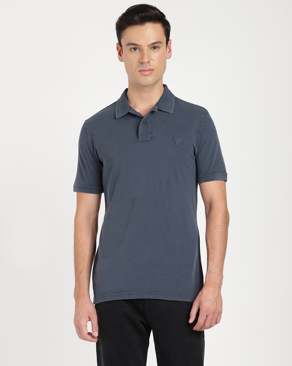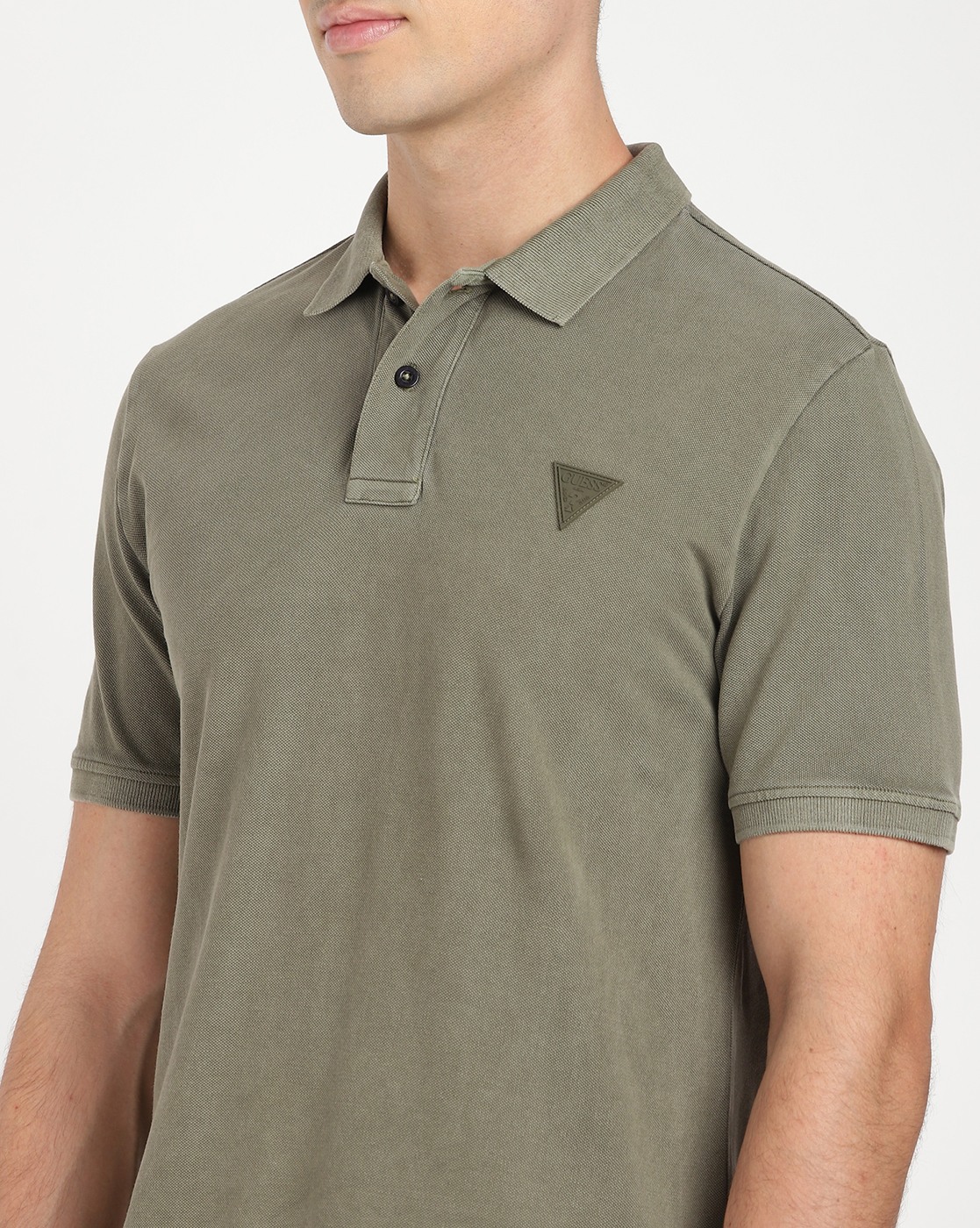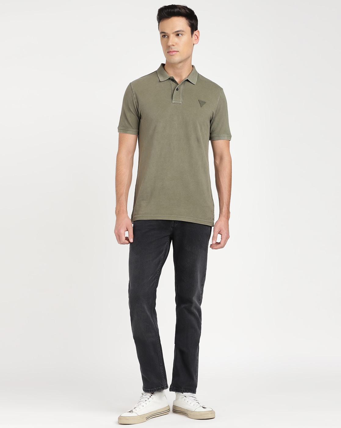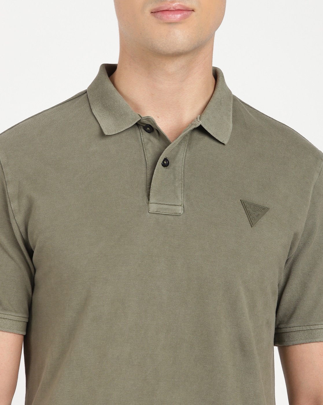 Green Stone Solid Polo Neck Short Sleeves Polo T-Shirt