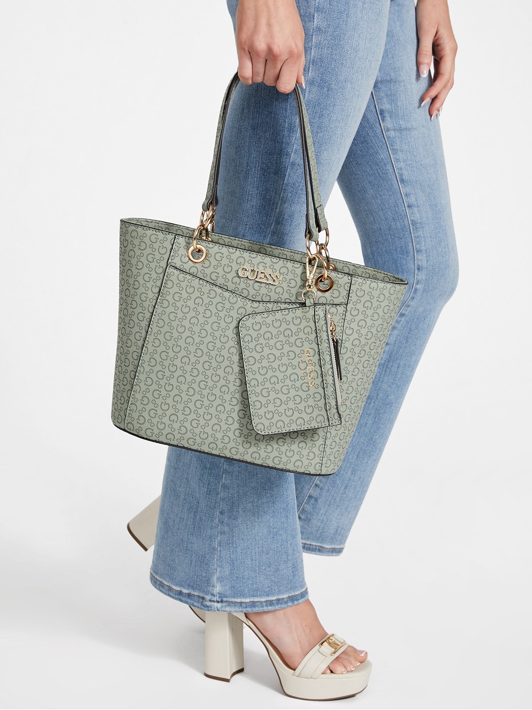 Discover elegance with our green tote bag and pouch set crafted from premium PU fabric. Featuring a chic monogram logo pattern, this stylish duo offers ample space and versatility for everyday use. Perfect for the modern woman, it seamlessly combines fashion and functionality, making it an essential accessory for any wardrobe.