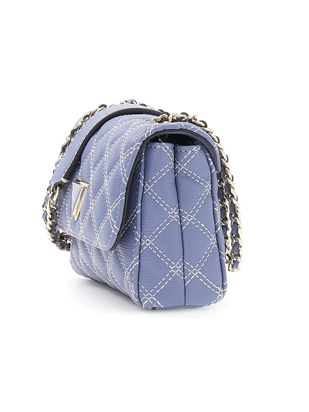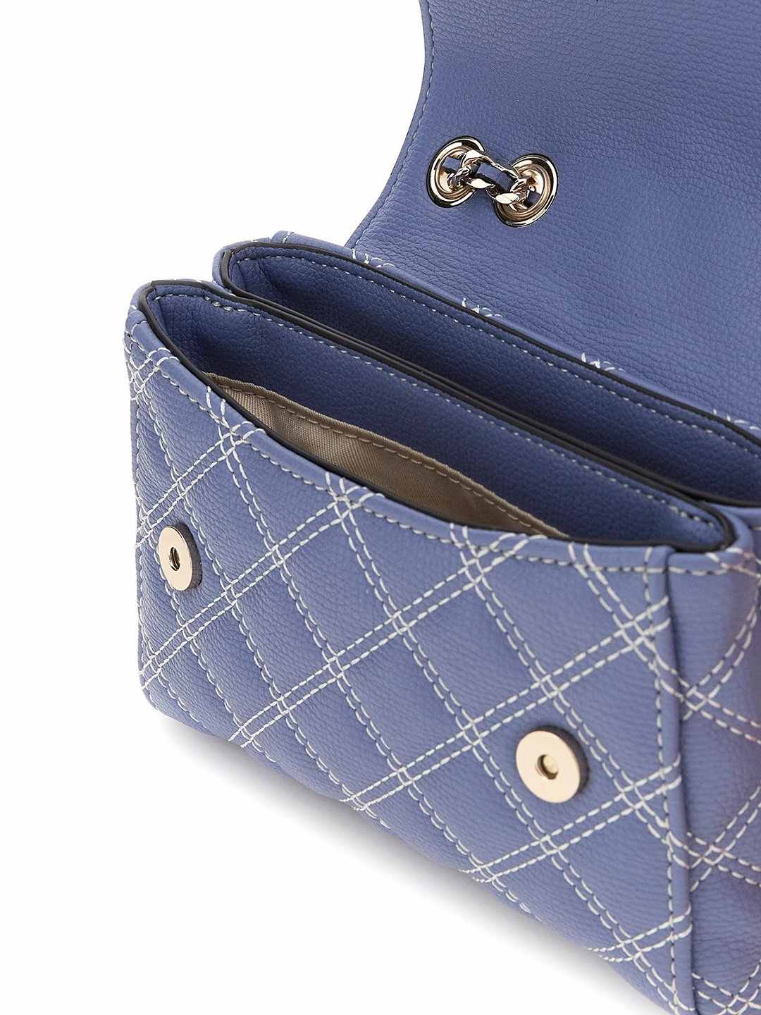 Grey Blue Textured Magnetic Snap Giully Mini 2 Comp Crossbody Bag