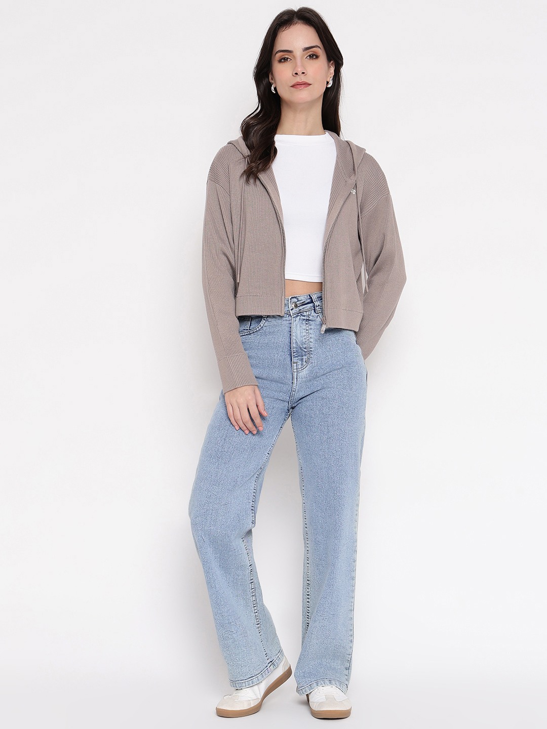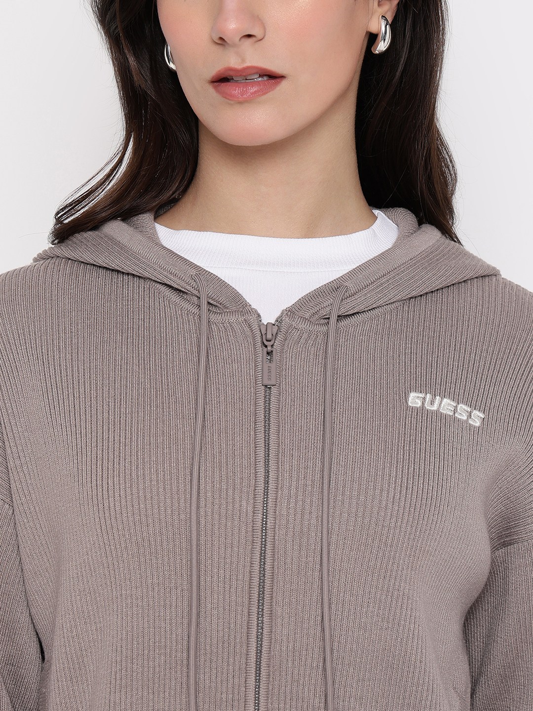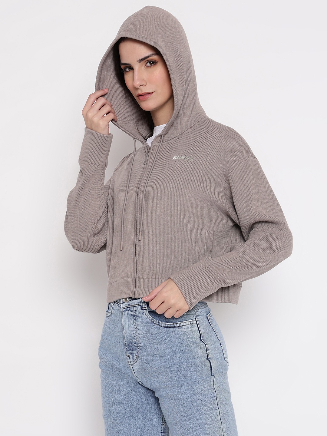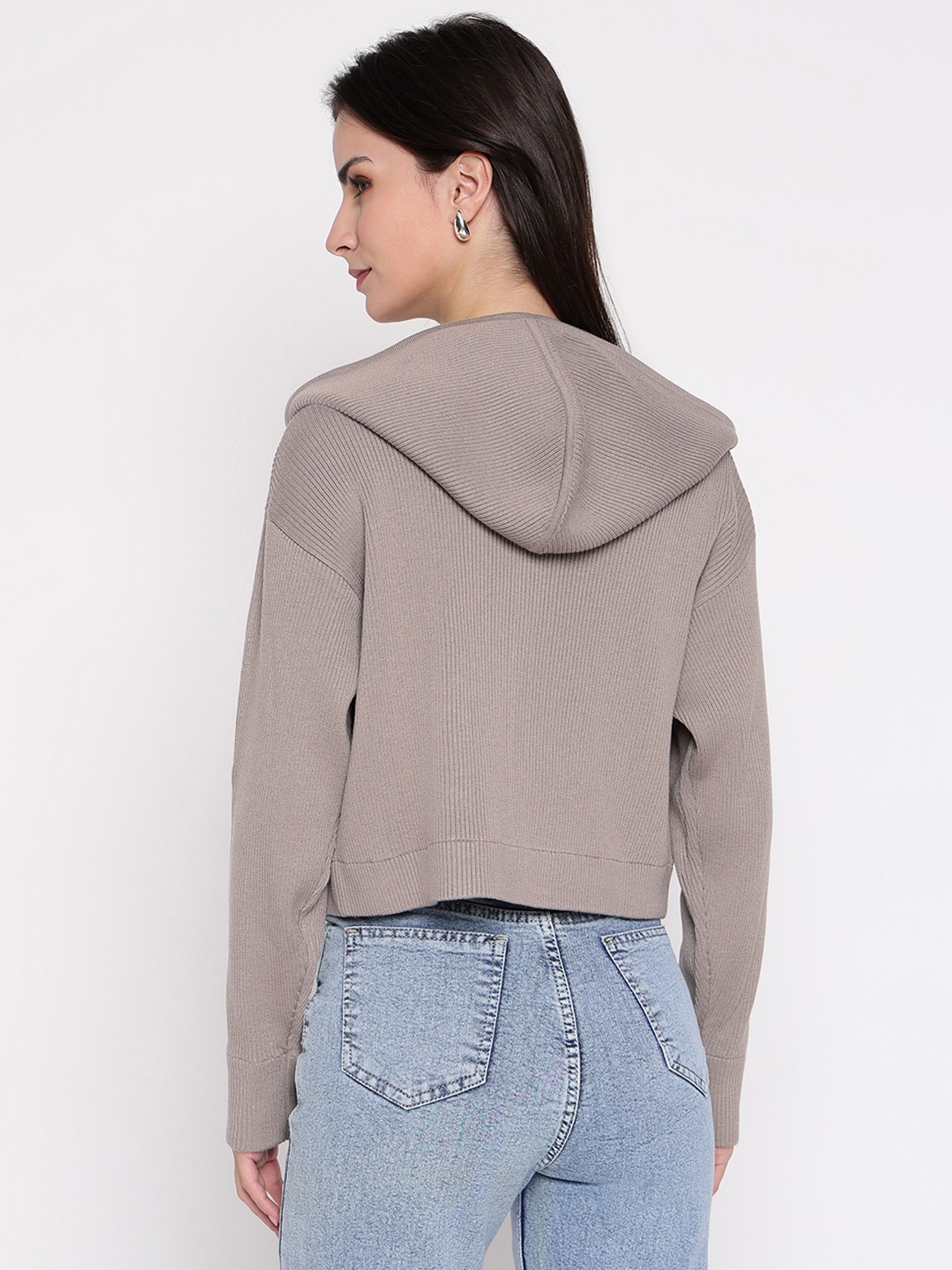Elevate your wardrobe with our chic women's cardigan, designed in a regular fit with a stylish ribbed pattern. This versatile piece features long sleeves and a cozy hood, perfect for layering during cooler days. Crafted from a high-quality polyester blend fabric, it offers both comfort and durability. The convenient zip closure adds a modern touch, making it easy to wear over your favorite outfits. Whether you're dressing up for a casual outing or lounging at home, this cardigan is a must-have addition to your collection.