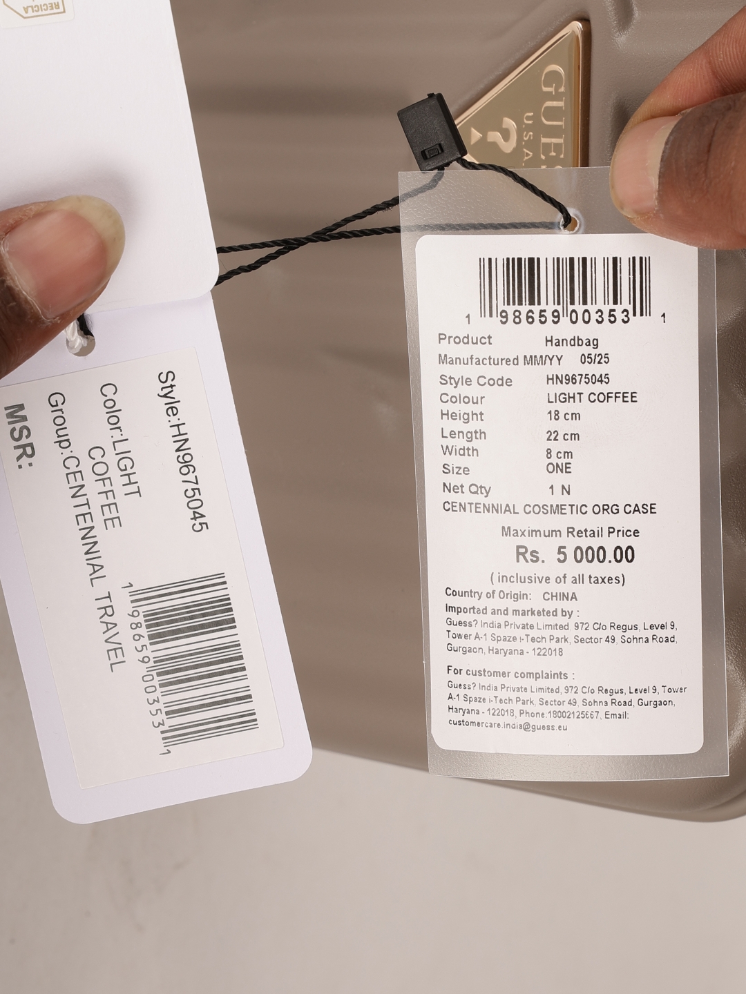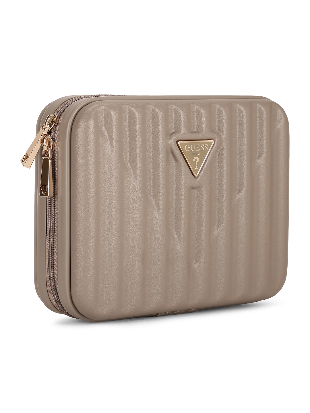 Elevate your beauty routine with the Guess Beige Polycarbonate Solid WOMEN Cosmetic Case. This chic and durable case is perfect for storing all your makeup essentials in one stylish place. With its practical design and sturdy construction, it's the ideal travel companion for on-the-go touch-ups. Keep your cosmetics organized and easily accessible with this sleek cosmetic case that combines fashion and function seamlessly. Make a statement with Guess and take your beauty routine to the next level.