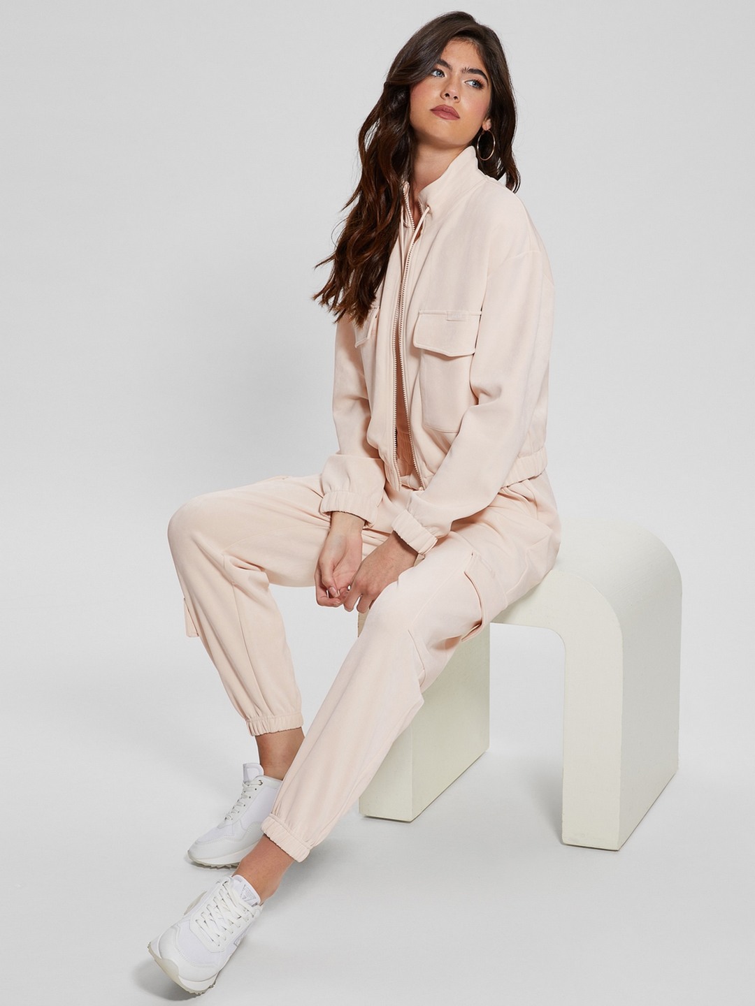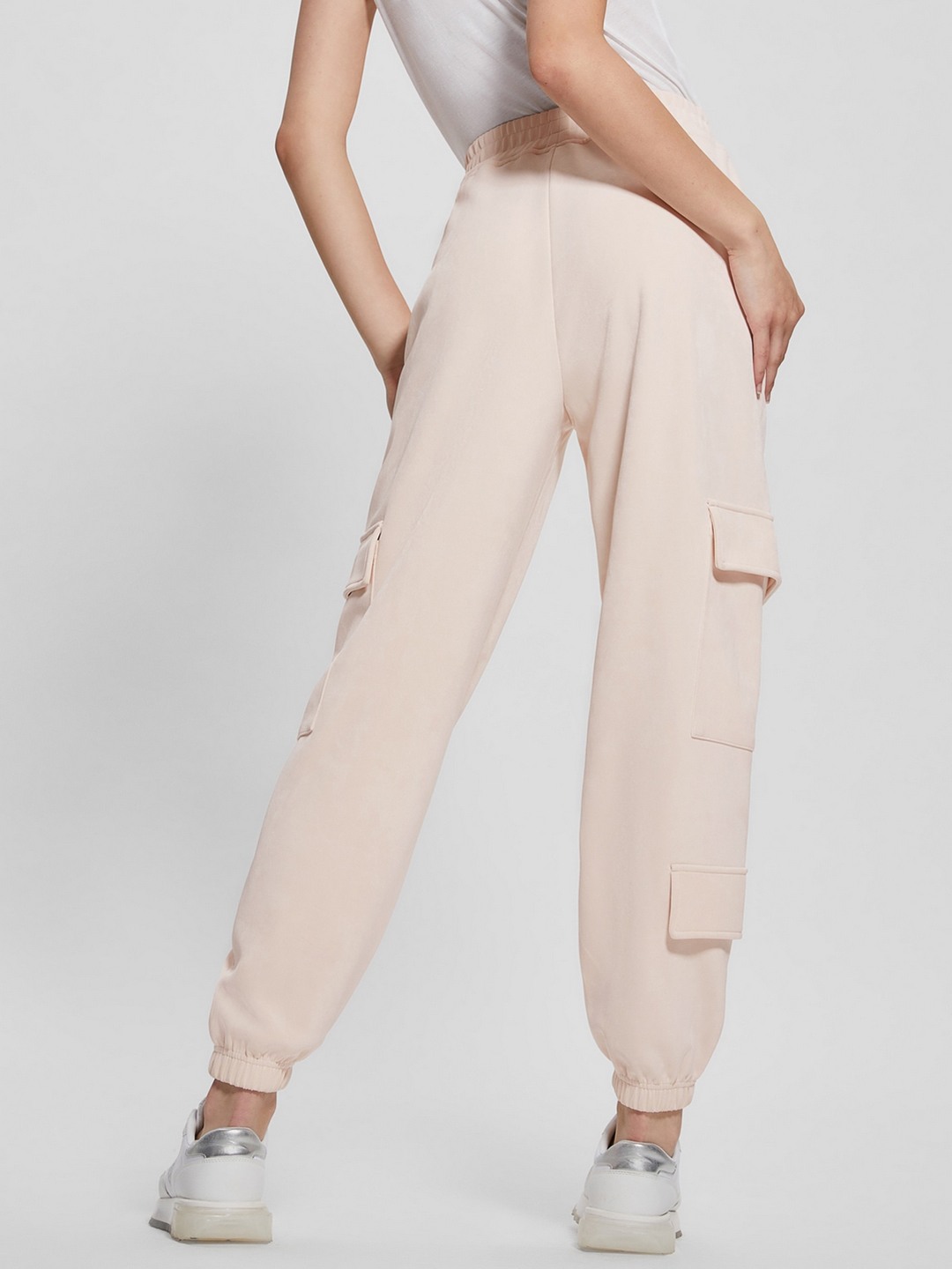 Guess Beige Polyester Blend Solid Regular Fit Cargo Pant