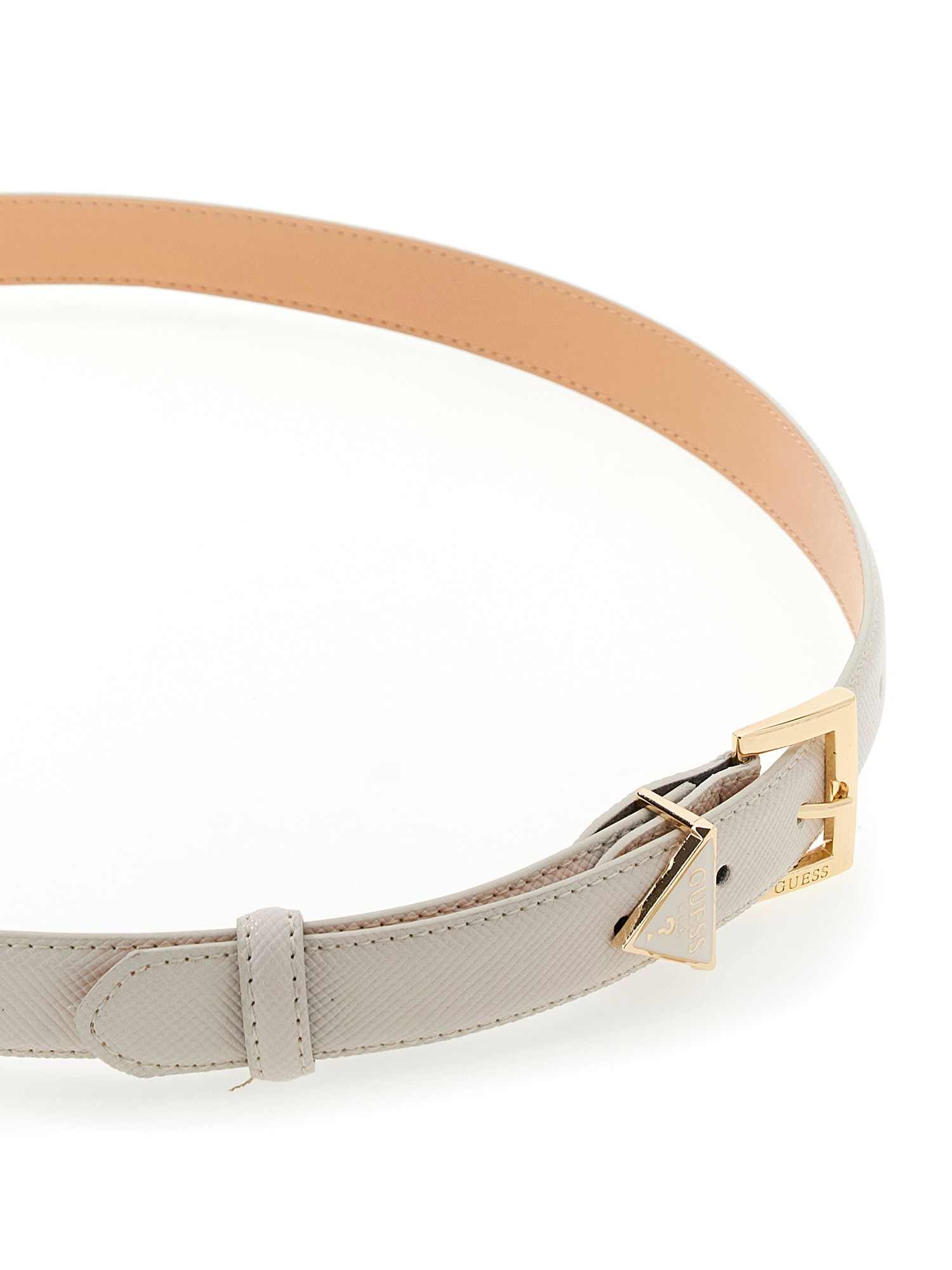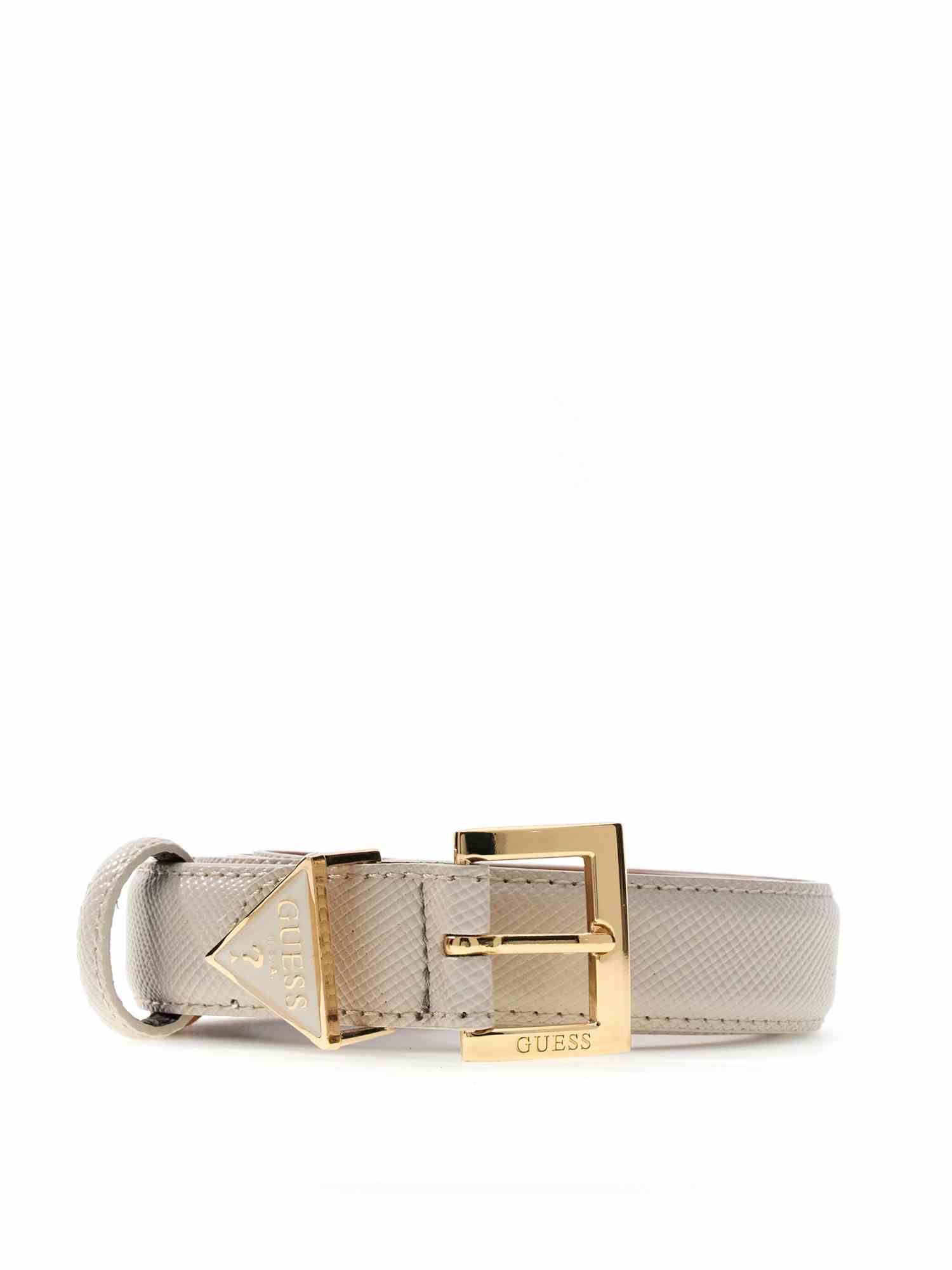 Elevate your style with the Guess Beige Polyester Textured WOMEN Belt. Made with high-quality polyester, this belt offers both durability and fashion-forward design. The textured finish adds a touch of sophistication to any outfit, while the neutral beige color ensures versatility. Whether you are dressing up for a special occasion or adding a chic touch to your everyday look, this belt is the perfect accessory to complete your ensemble. Stay on-trend and effortlessly stylish with the Guess Beige Polyester Textured WOMEN Belt.