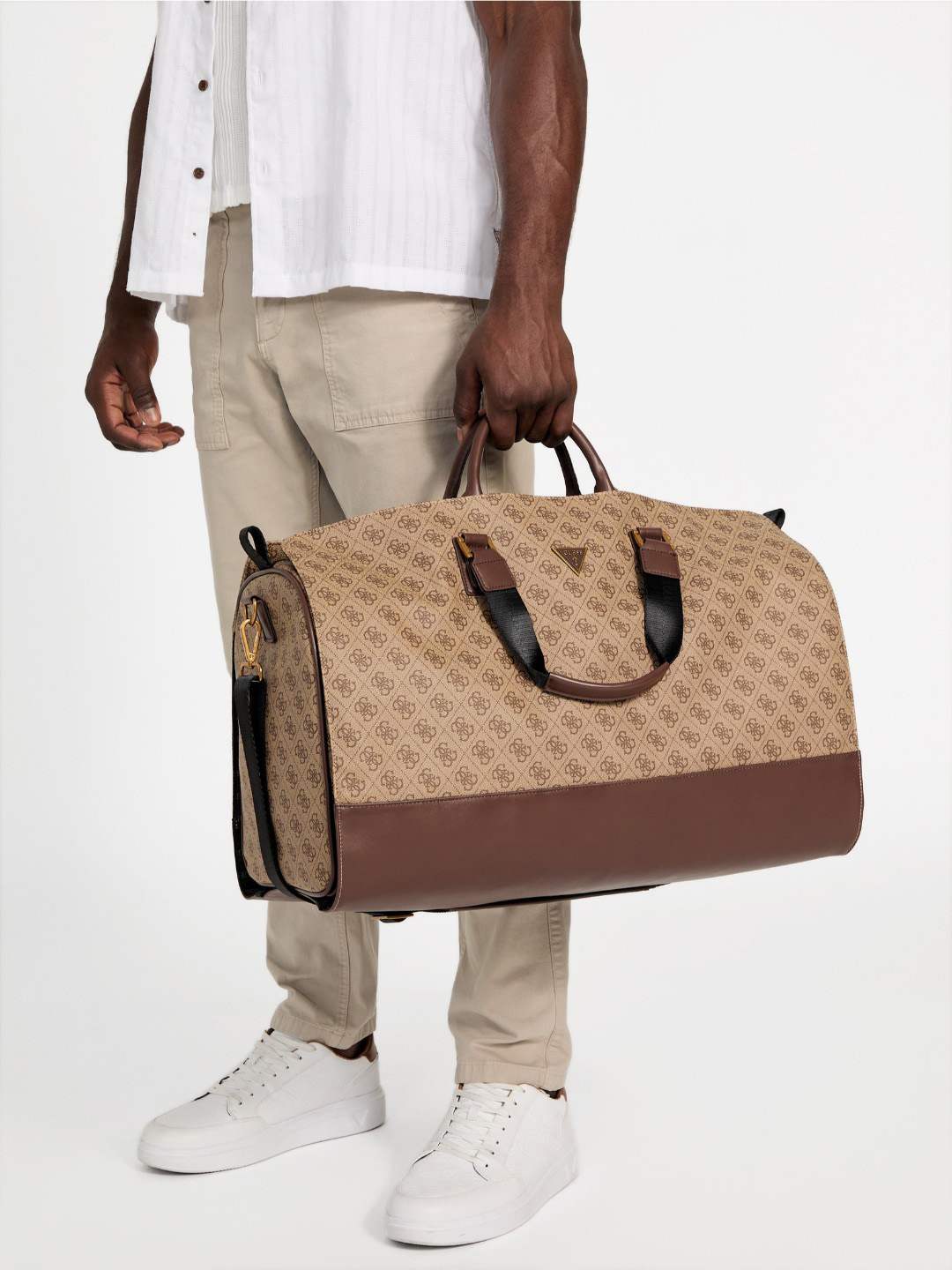 Elevate your travel style with the Guess Beige PU Printed MEN Duffle Bag. This sleek and sophisticated bag is perfect for the modern man on the go, featuring a spacious interior to hold all your essentials with ease. The high-quality PU material ensures durability, while the trendy printed design adds a touch of flair to your look. Whether you are heading to the gym or jet-setting across the globe, this duffle bag is the perfect companion for any adventure. Stay organized and stylish with Guess.