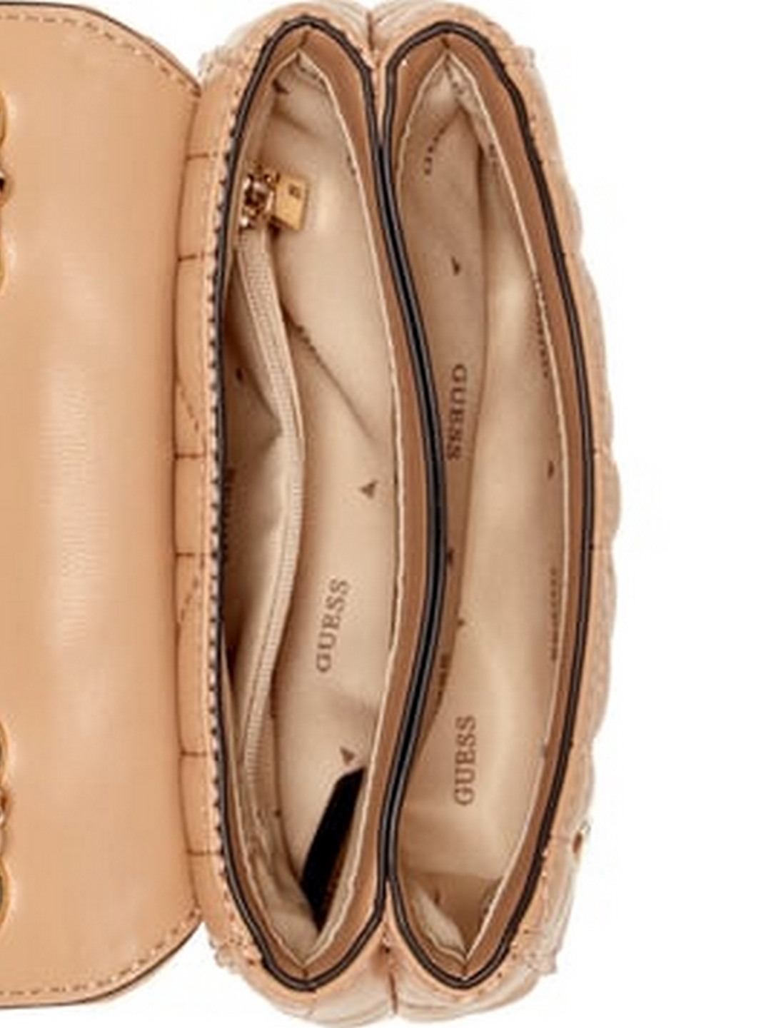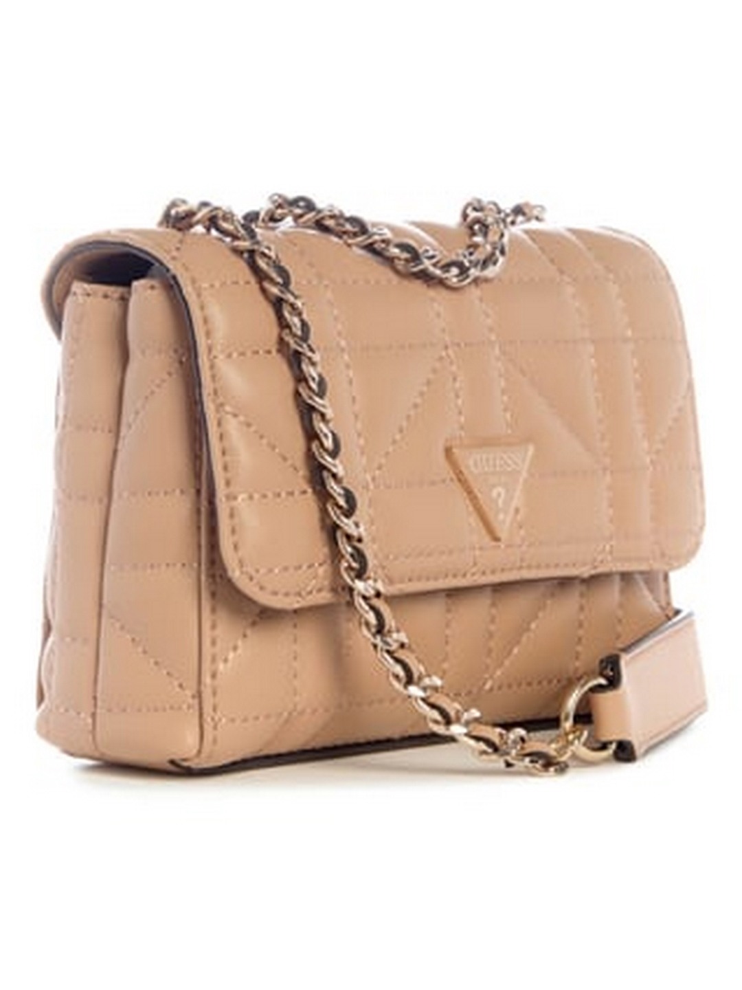 Guess Women Beige Quilted Chain Strap Mini Crossbody Bag