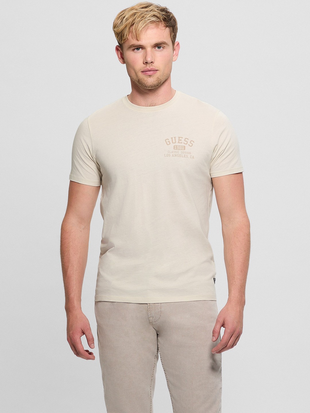 Elevate your casual wardrobe with our beige T-shirt, featuring a regular printed pattern. Crafted from pure cotton, it offers ultimate comfort and breathability. The short sleeves and round neck design ensure a classic fit, while the pull-on closure provides ease of wear. Perfect for everyday style and effortless sophistication.