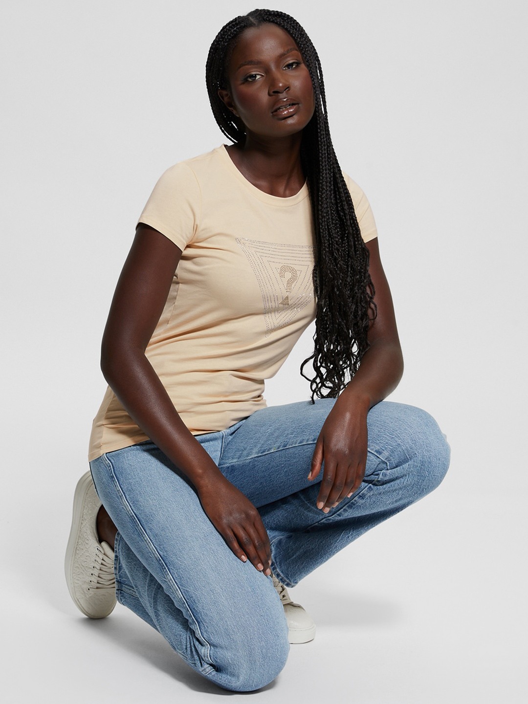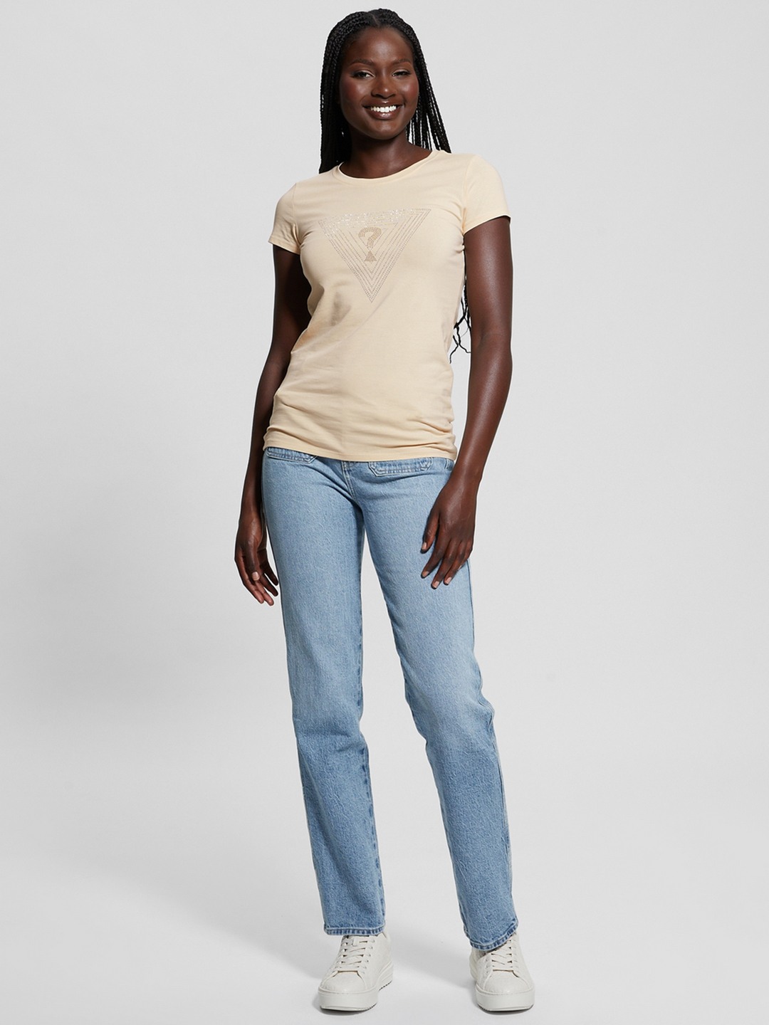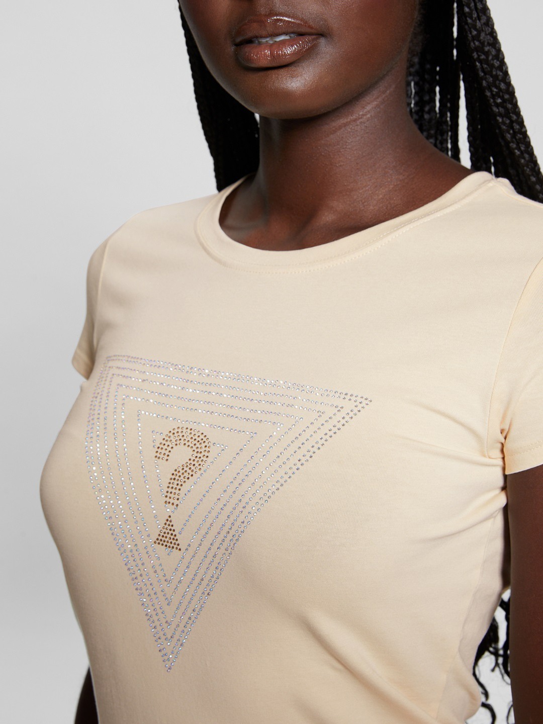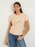 Elevate your wardrobe with this chic beige T-shirt, featuring an elegant embellished pattern. Crafted from a soft cotton blend, it offers a comfortable fit with short sleeves and a classic round neck. The pull-on closure ensures easy wear, making it a versatile addition to any woman's casual collection.