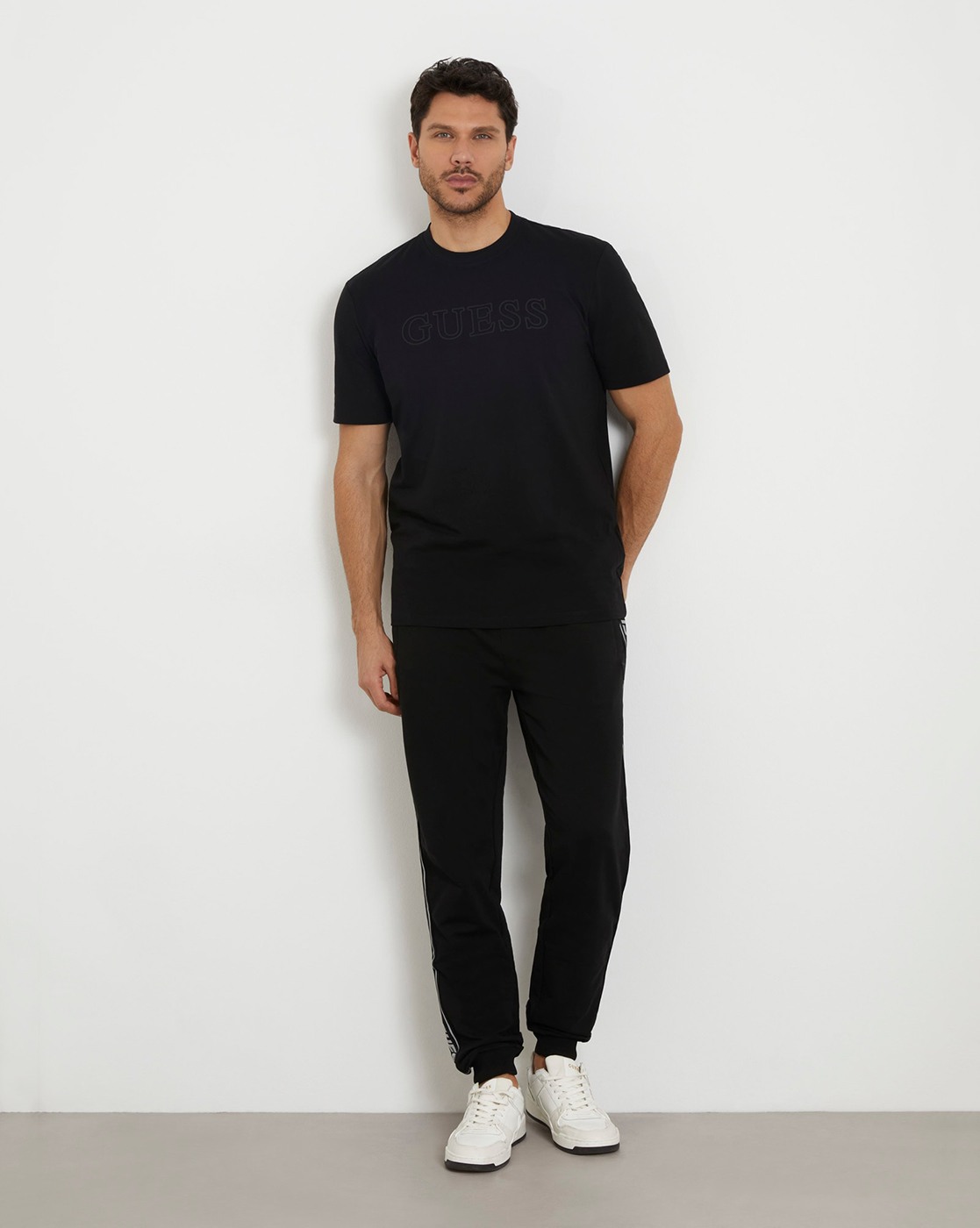 Elevate your casual wardrobe with our sleek black T-shirt, featuring a stylish printed logo pattern that adds a modern touch. Designed for men, this versatile tee boasts short sleeves and a classic round neck, ensuring comfort and ease of movement. Crafted from a premium cotton blend fabric, it offers a soft, breathable feel perfect for everyday wear. The convenient pull-on closure makes dressing effortless, while the durable construction ensures long-lasting quality. Ideal for pairing with jeans or shorts, this T-shirt is a must-have staple for any fashion-forward man.
