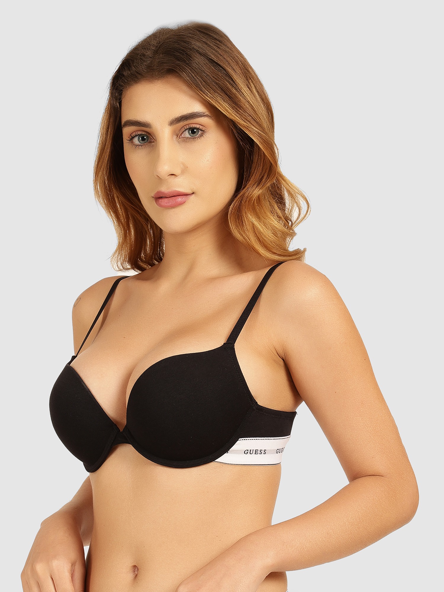 • Elevate your everyday comfort with the Guess Women’s Bra, designed to deliver a perfect blend of support, style, and softness. Crafted with premium, breathable fabric, this bra offers all-day ease while enhancing your natural shape. The smooth, lightly padded cups provide a seamless look under any outfit, making it ideal for everyday wear.