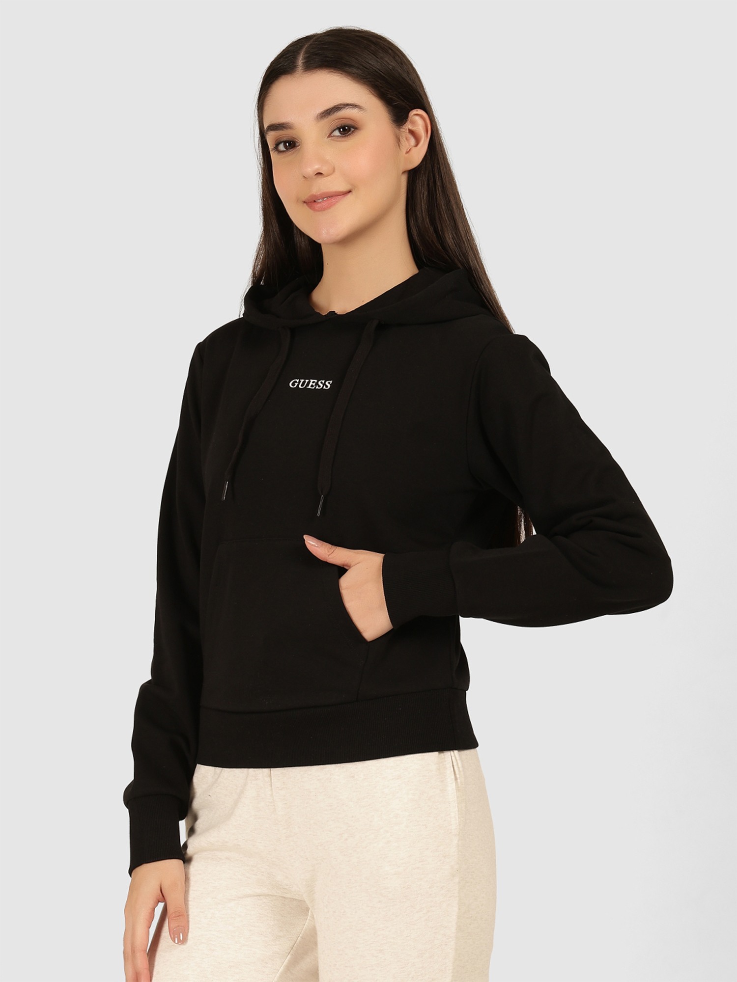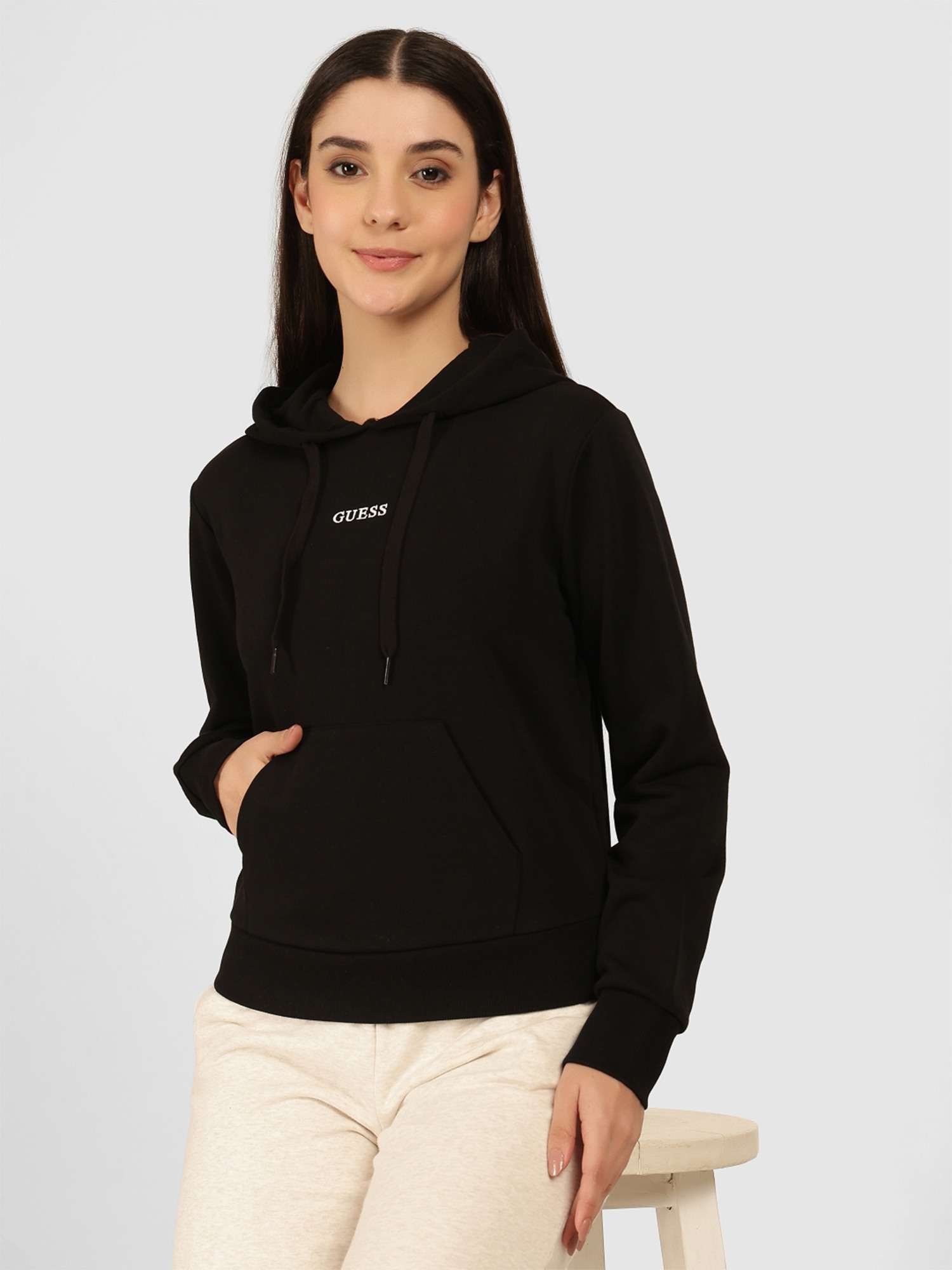 • The Guess Black Cotton Solid Hoodie for women is made from soft, breathable cotton and designed for all-day comfort. With a relaxed fit and timeless solid look, it’s ideal for casual wear, lounging, or effortless layering.