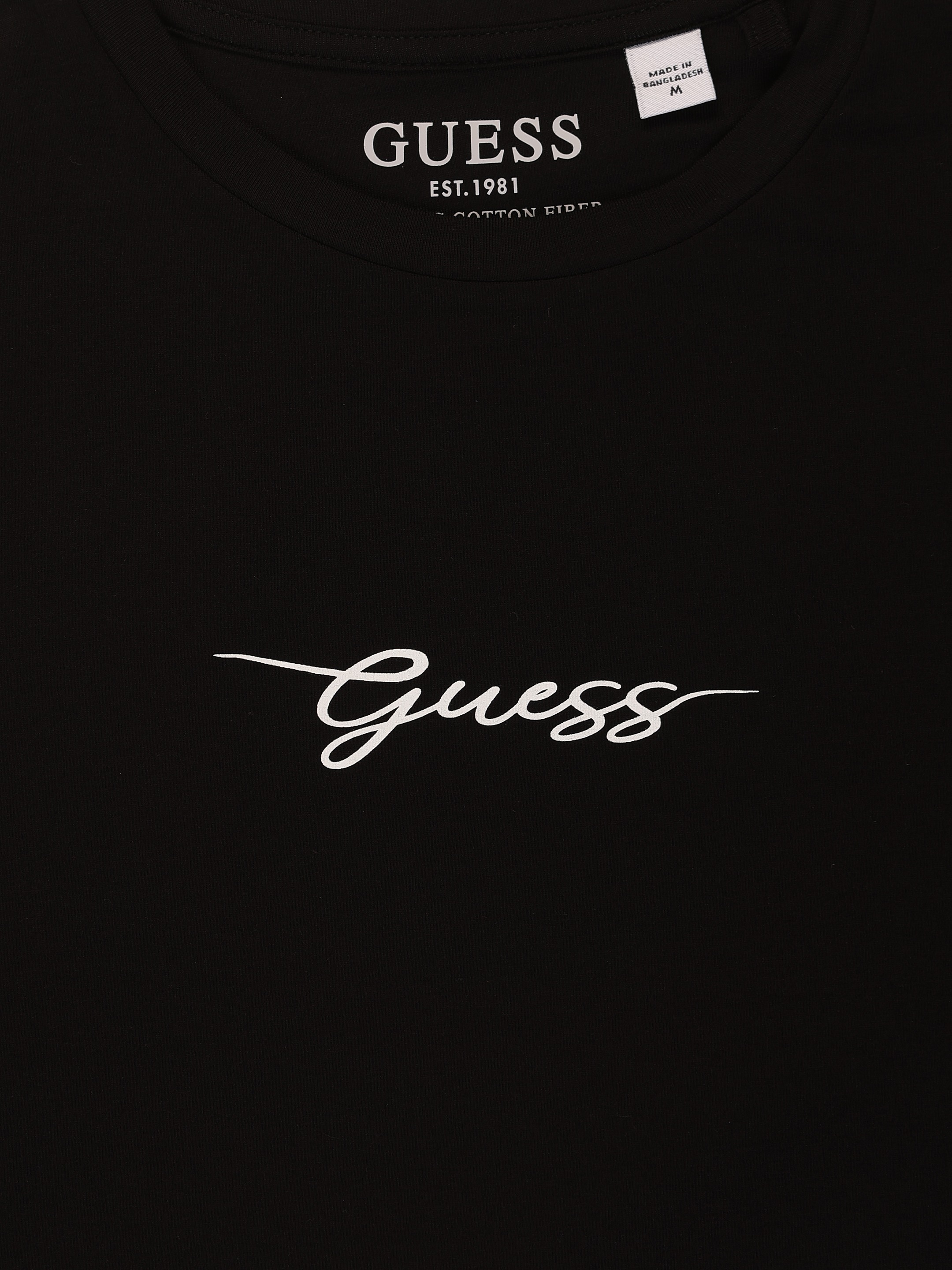 • Comfortable and versatile, this Guess black solid men’s T-shirt is crafted from breathable cotton for a smooth feel. The classic crew neck and regular fit make it perfect for casual wear and layering.
