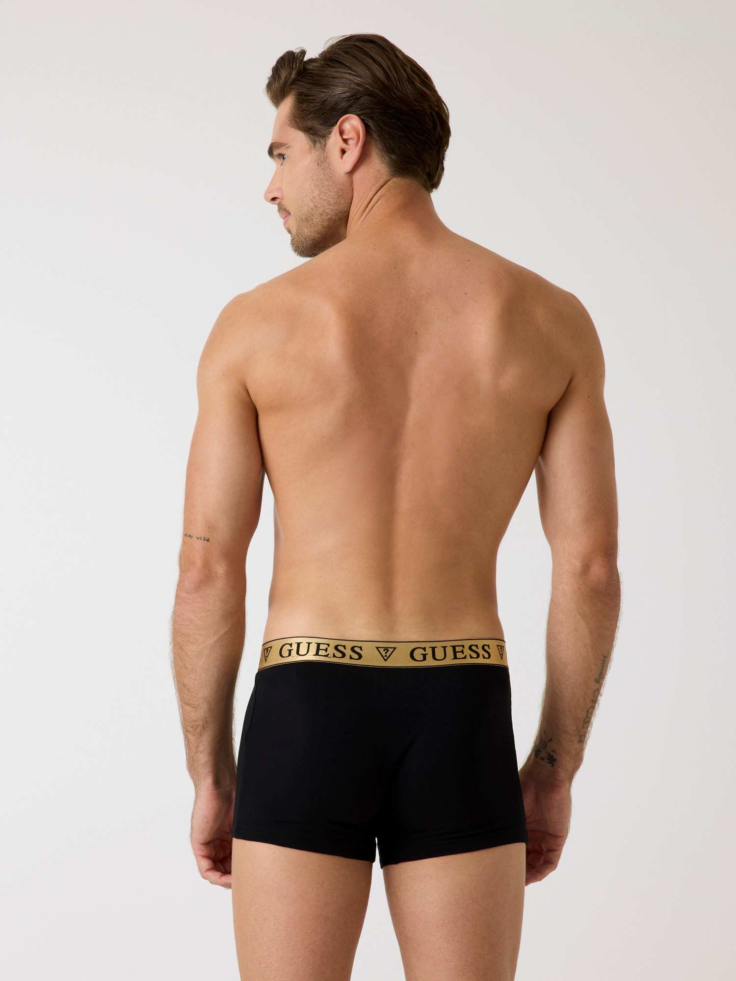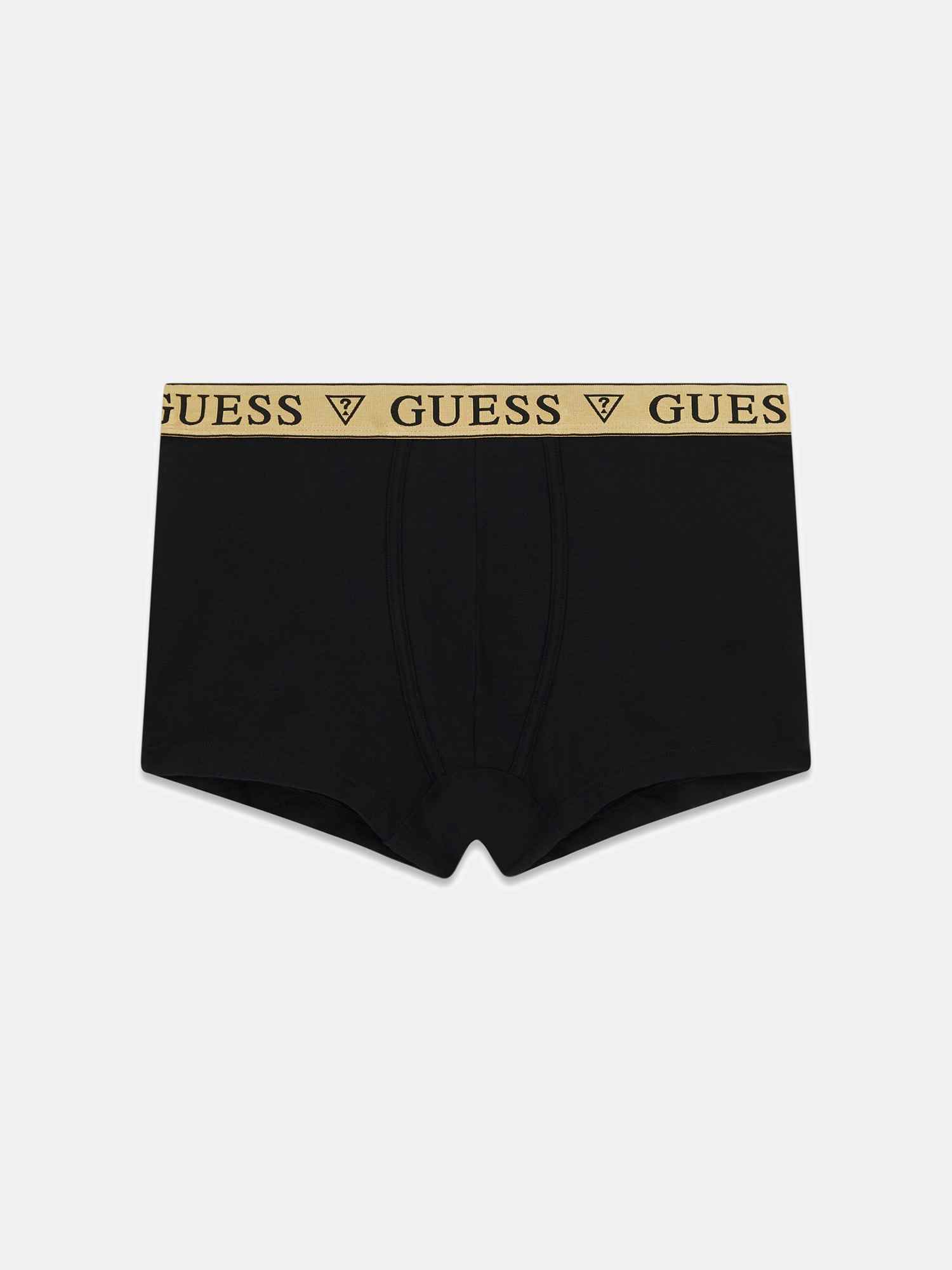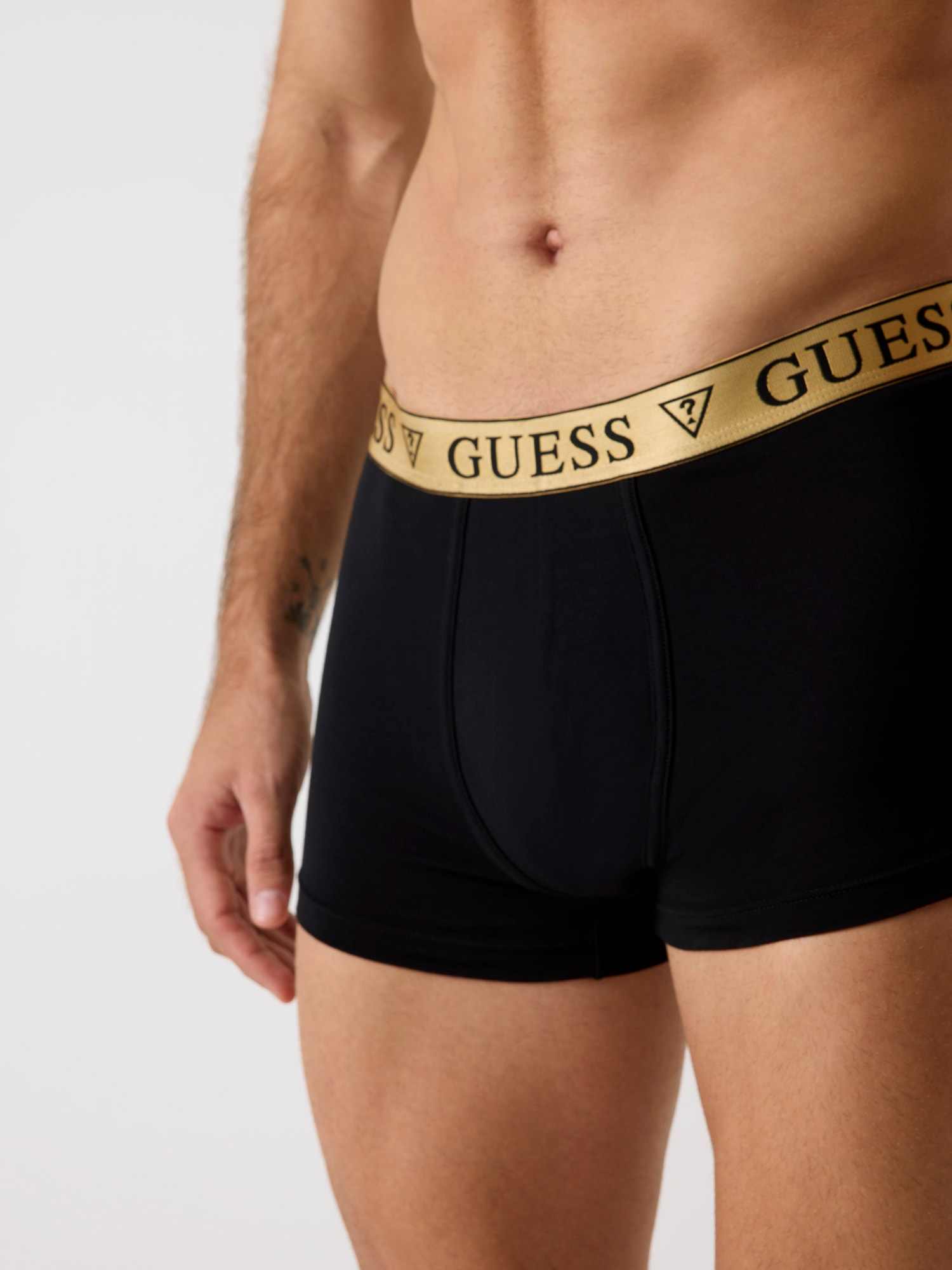 Elevate your underwear game with our Guess Black Cotton Solid MEN Trunks. Made from soft cotton fabric, these trunks offer ultimate comfort and support for all-day wear. The classic black color adds a touch of sophistication to your underwear collection. With a snug fit and durable construction, these trunks are perfect for everyday wear or special occasions. Upgrade your essentials with the Guess Black Cotton Solid MEN Trunks and experience comfort and style like never before.