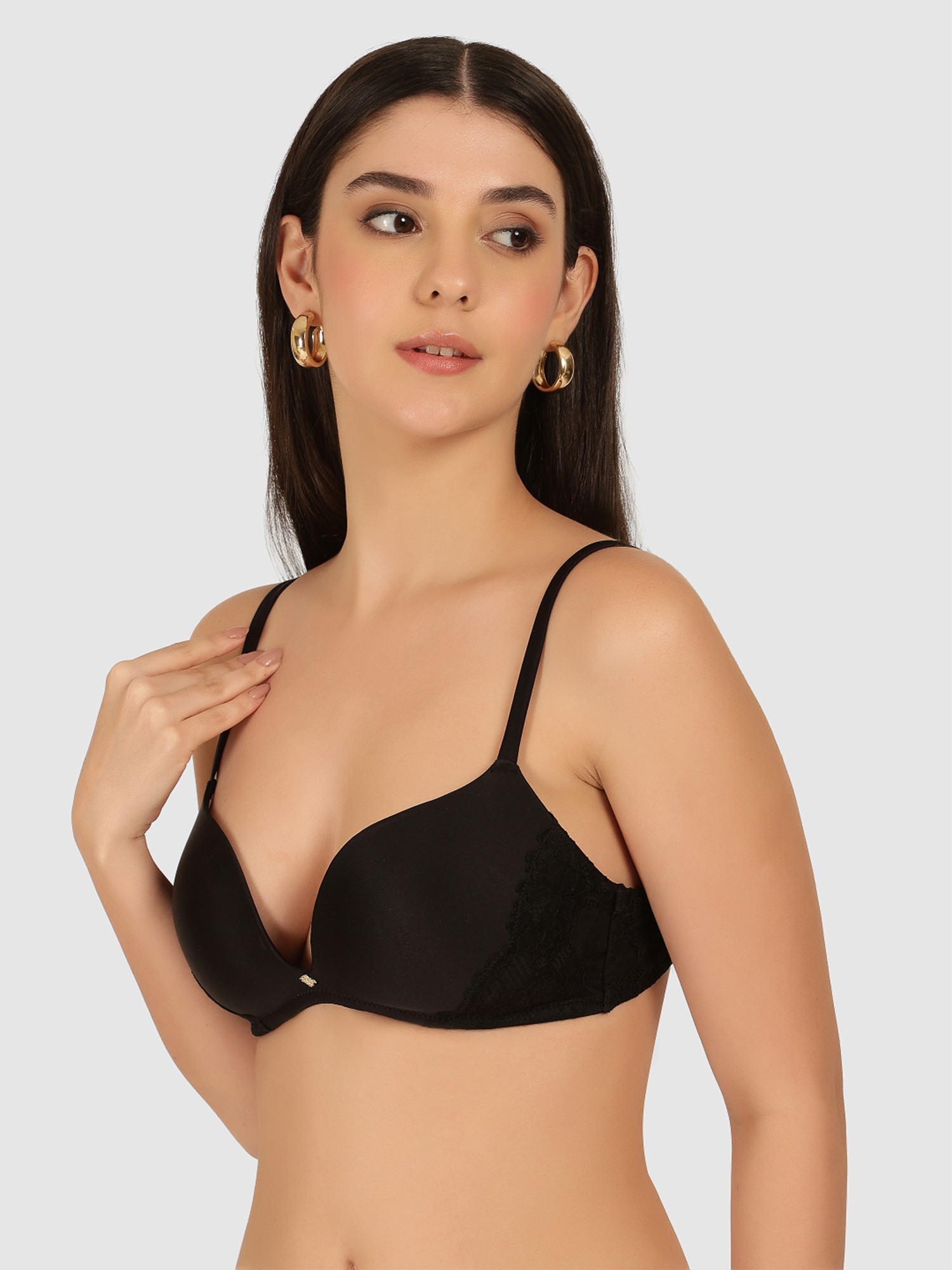 Guess Black Cotton Solid/Plain Women Pushup Bra