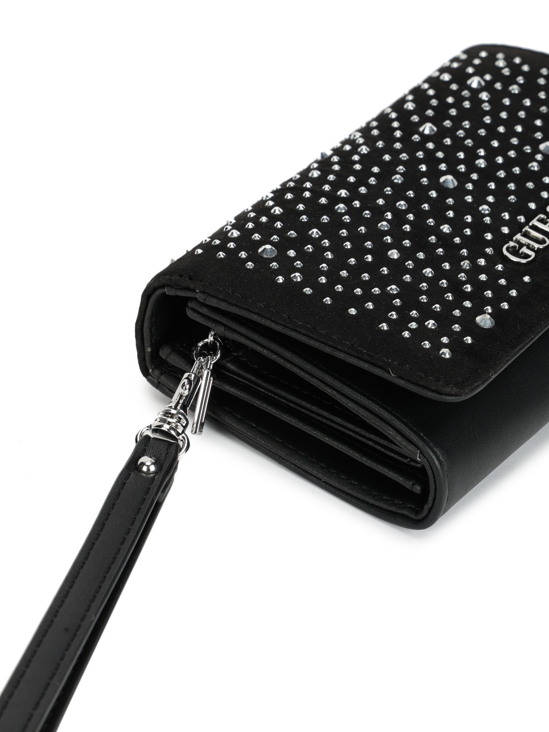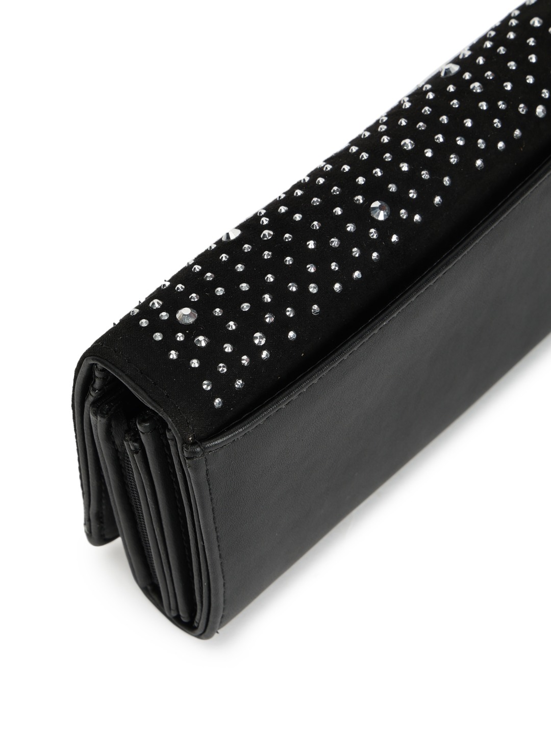 Discover the perfect blend of style and functionality with our black PU fabric wallet for women. This elegant accessory features an eye-catching embellished pattern that adds a touch of sophistication to any outfit. Designed with multiple compartments, it offers ample space for your cards, cash, and essentials, ensuring you stay organized on the go. The durable PU material ensures longevity while maintaining a sleek appearance. Ideal for everyday use or special occasions, this wallet is a must-have addition to your accessory collection.