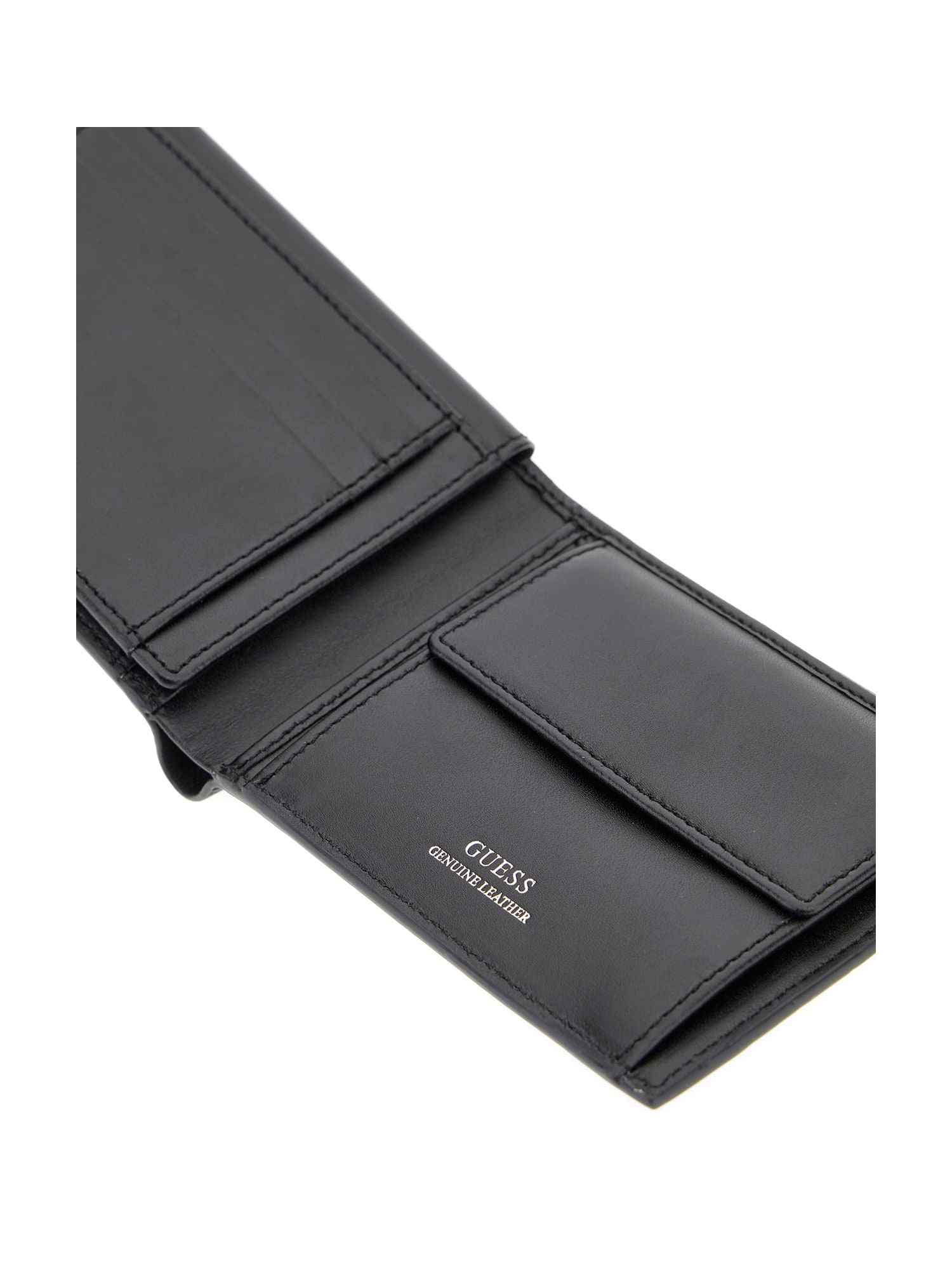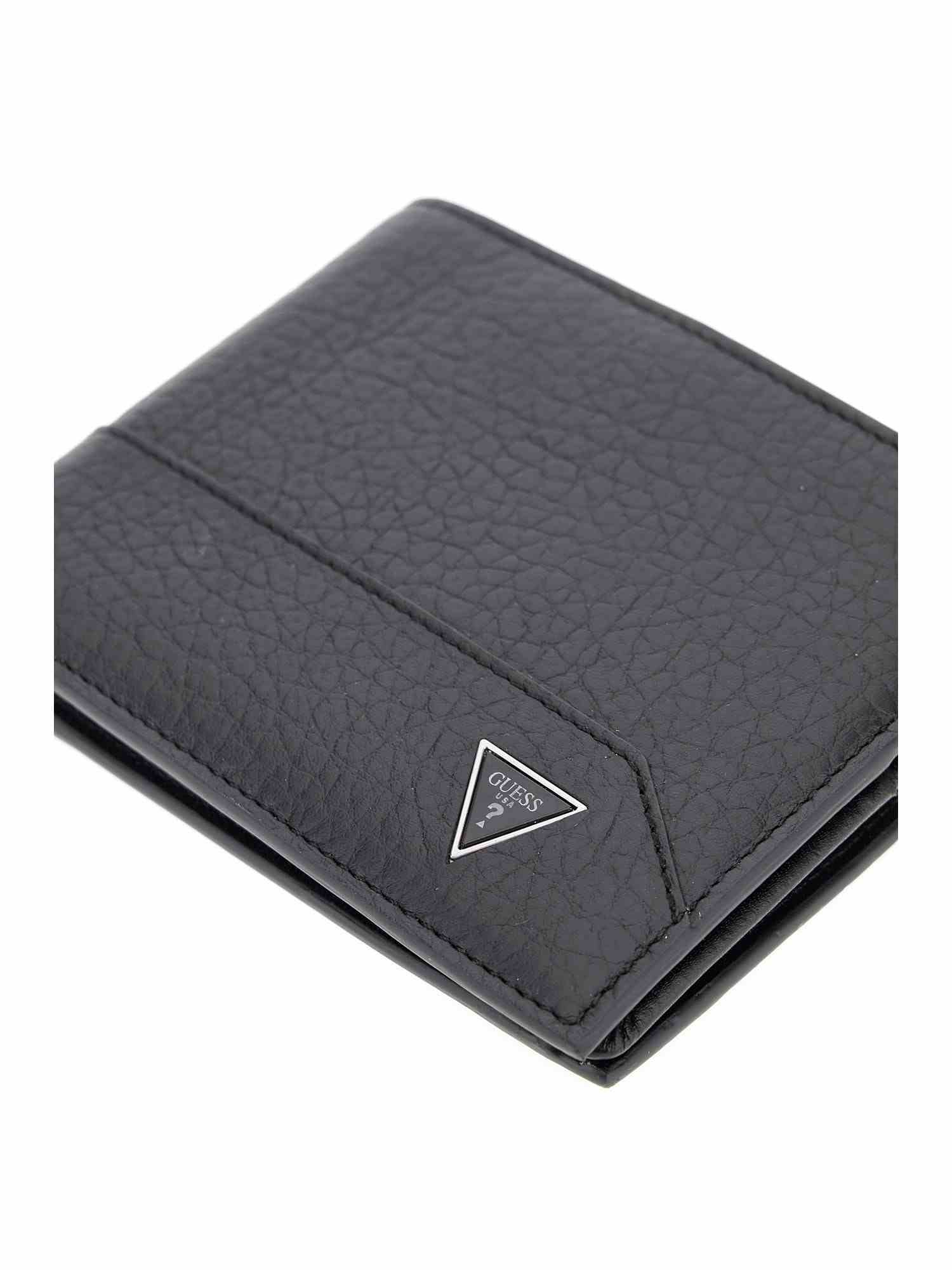 The Guess Black Leather Solid Men Wallet is a sophisticated accessory that combines timeless style with modern functionality. Expertly crafted from high-quality genuine leather, this bifold wallet features a sleek, solid black finish that coordinates effortlessly with any attire. Designed for the organized man, it offers multiple card slots and a spacious bill compartment to keep your essentials secure and easily accessible. Finished with a subtle logo detail, this durable and classic wallet is a must-have for your daily rotation.