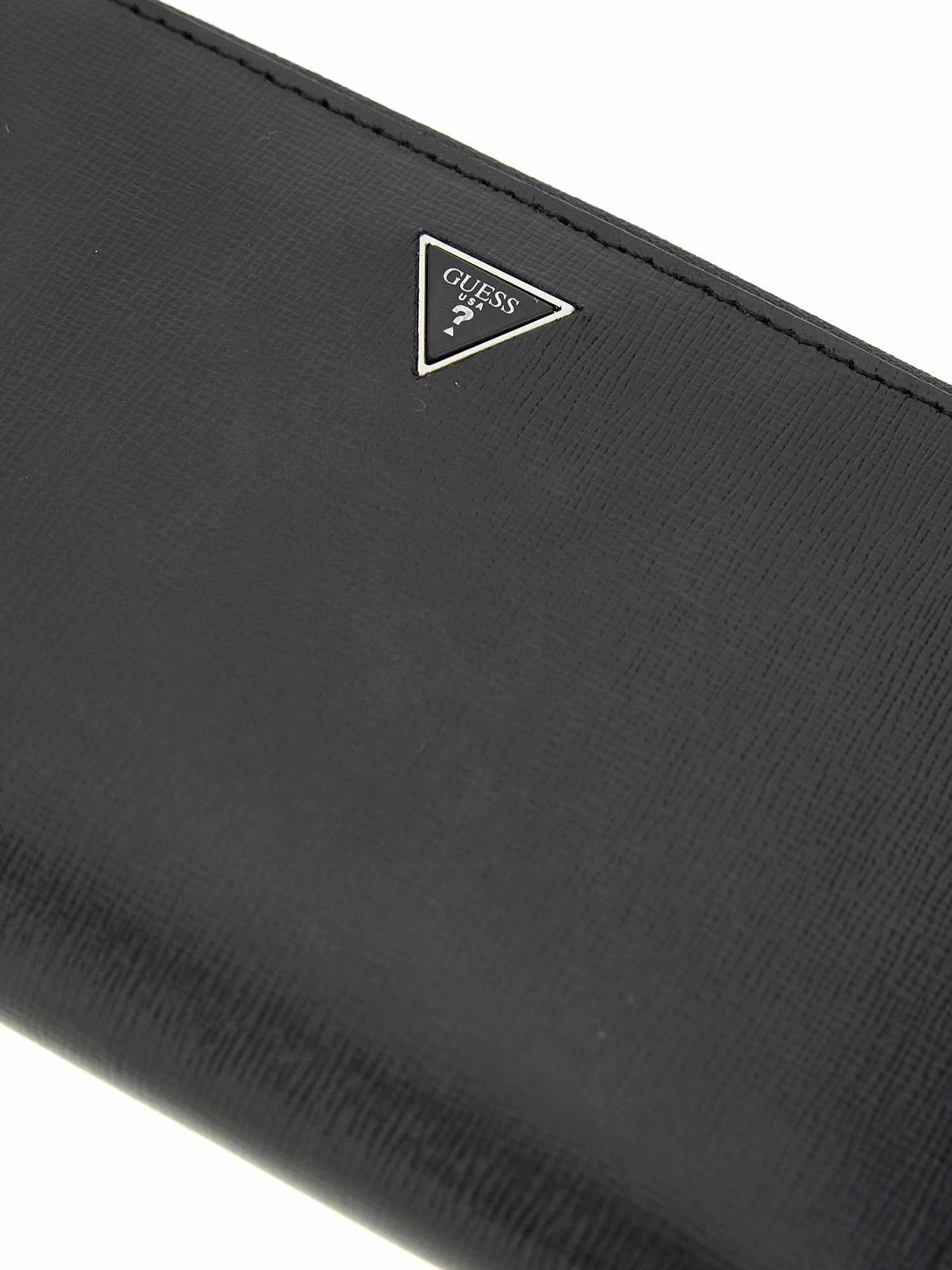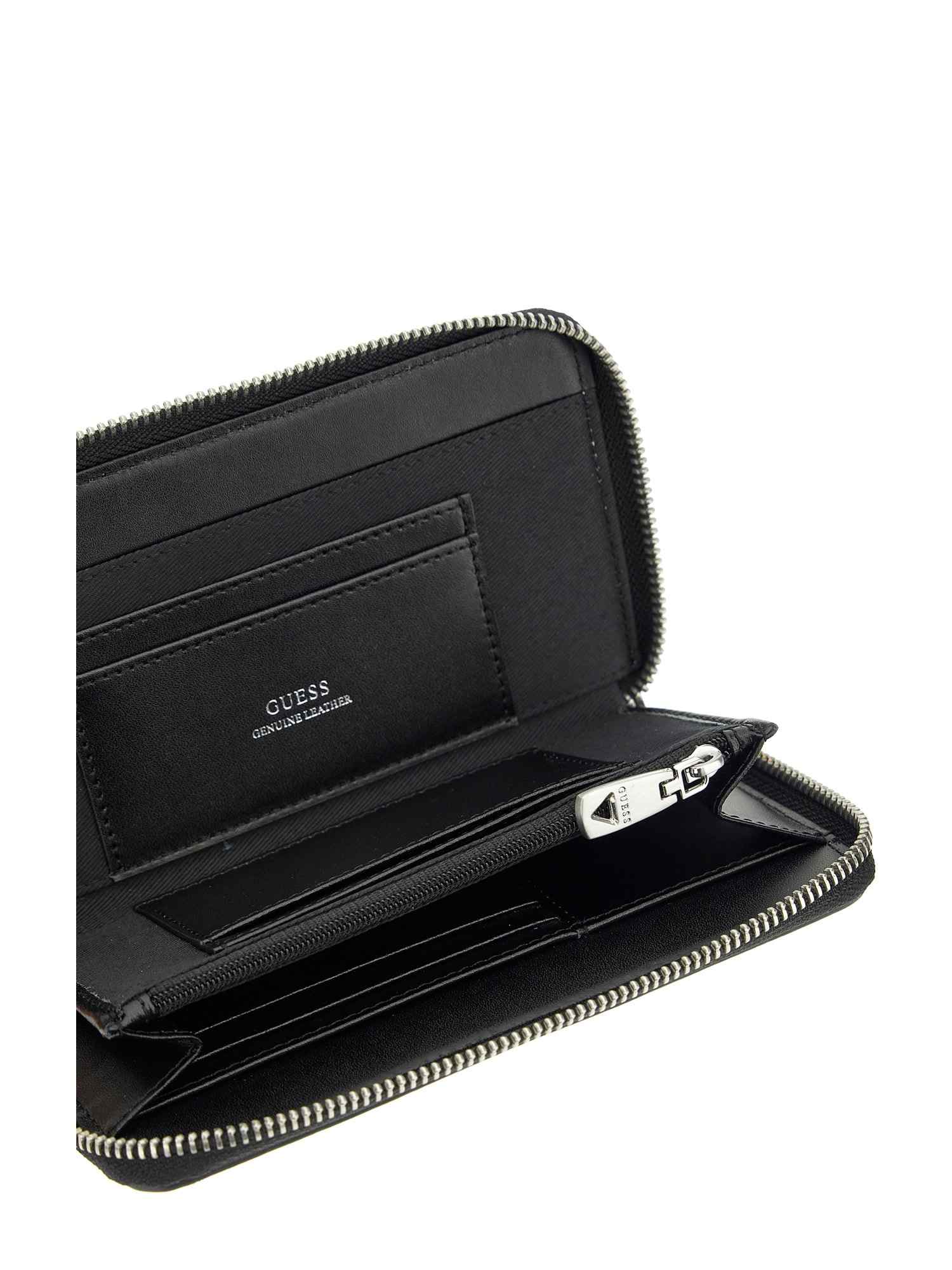 Elevate your daily essentials with the Guess Black Leather Solid Men Wallet. Expertly crafted from 100% genuine leather, this bifold wallet offers a sleek and classic design that never goes out of style. It features multiple credit card slots, a clear ID window, and a spacious bill compartment to keep your cash and cards organized. The sophisticated look is finished with a signature metal Guess logo and refined contrast stitching. Perfect for the modern man, this durable accessory combines practical functionality with timeless elegance.