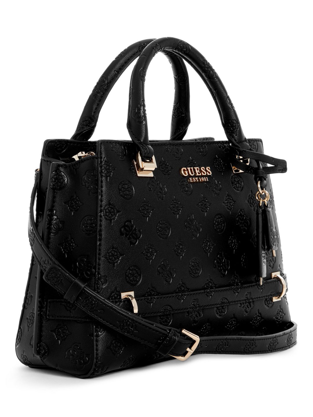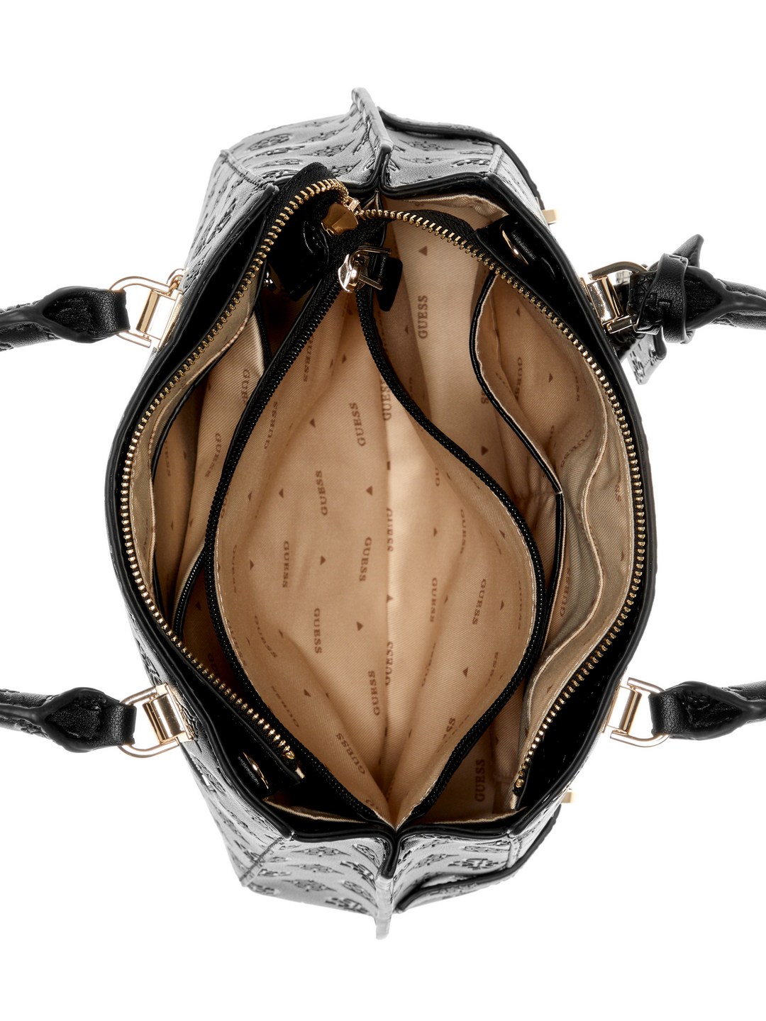 Guess Black Logo Textured Zarela Luxury Satchel Bag