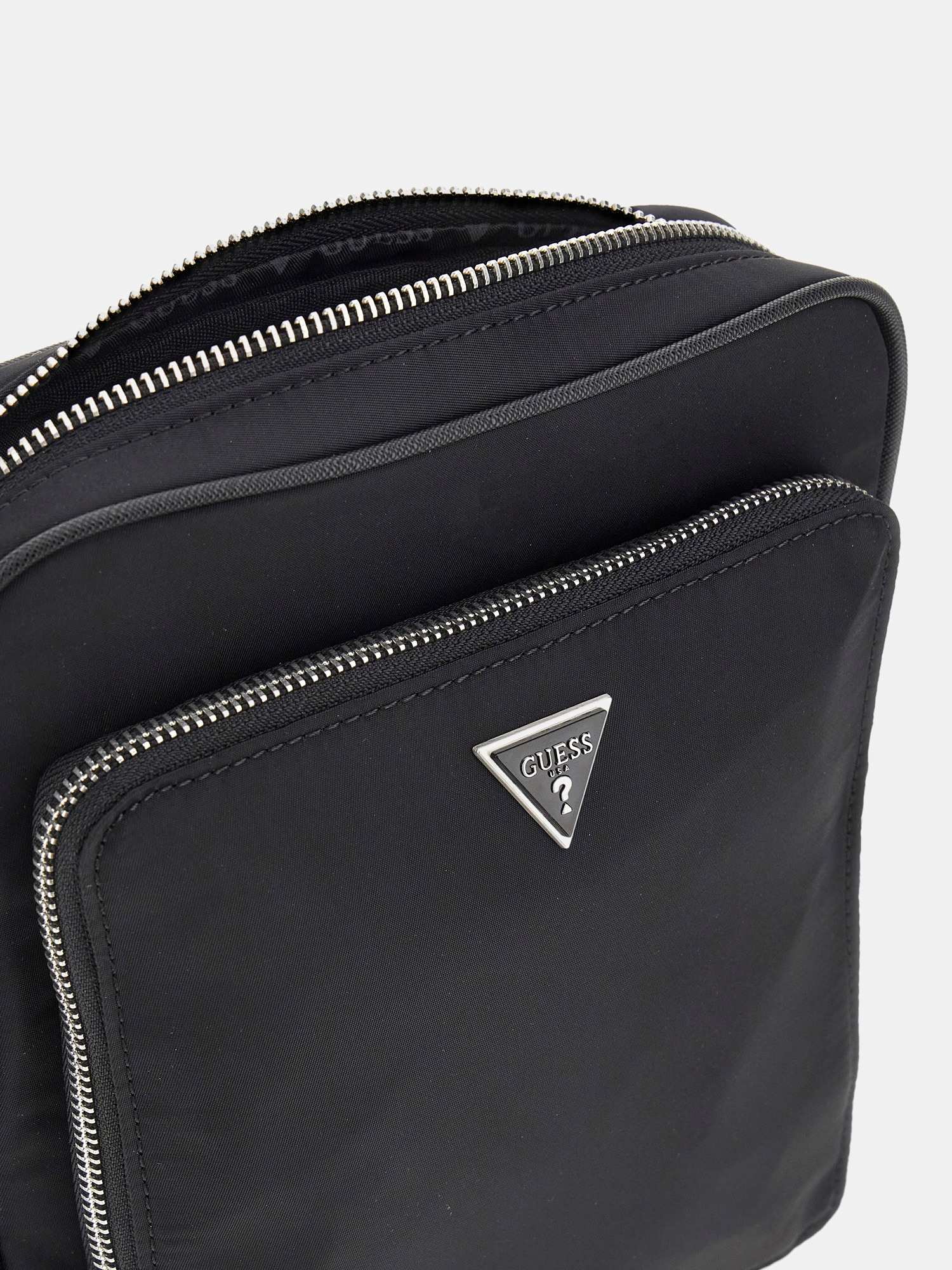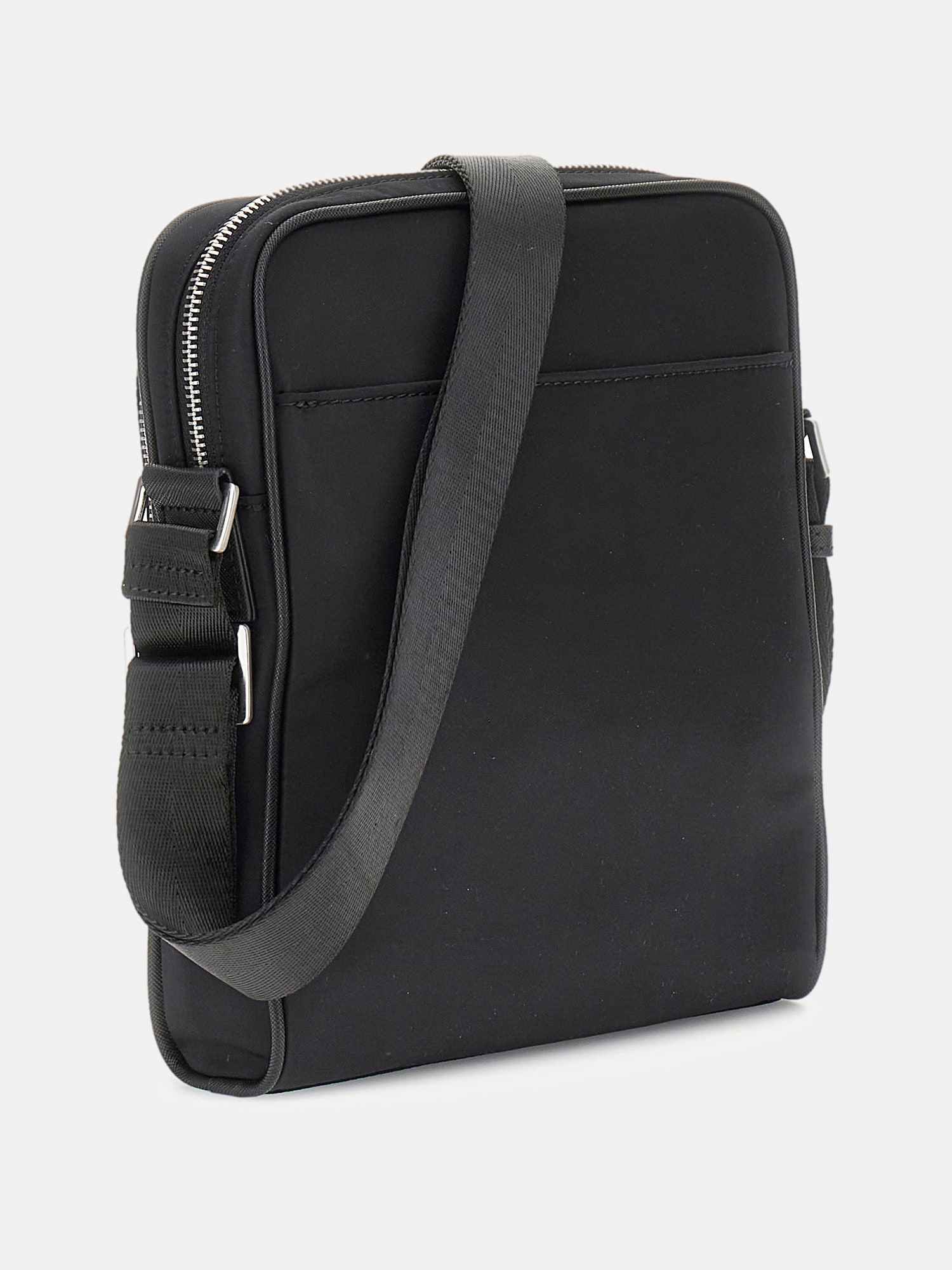 Elevate your style with the Guess Black Polyamide Solid Men's Cross Body bag. Crafted with durable polyamide material, this sleek accessory offers functionality and fashion in one. With a versatile design that can be worn across the body, this bag is perfect for on-the-go individuals who want to stay organized without sacrificing style. Whether you are running errands or heading out for a night on the town, this cross body bag is a must-have addition to your wardrobe. Stay hands-free and effortlessly chic with Guess.
