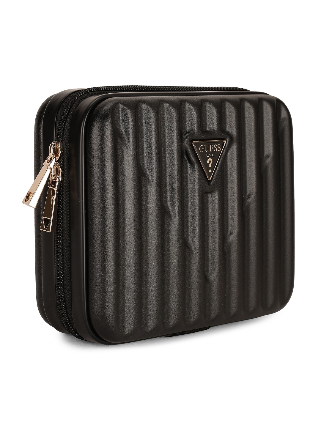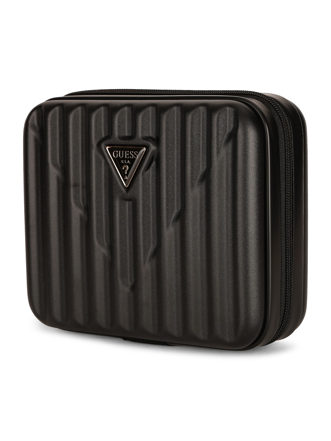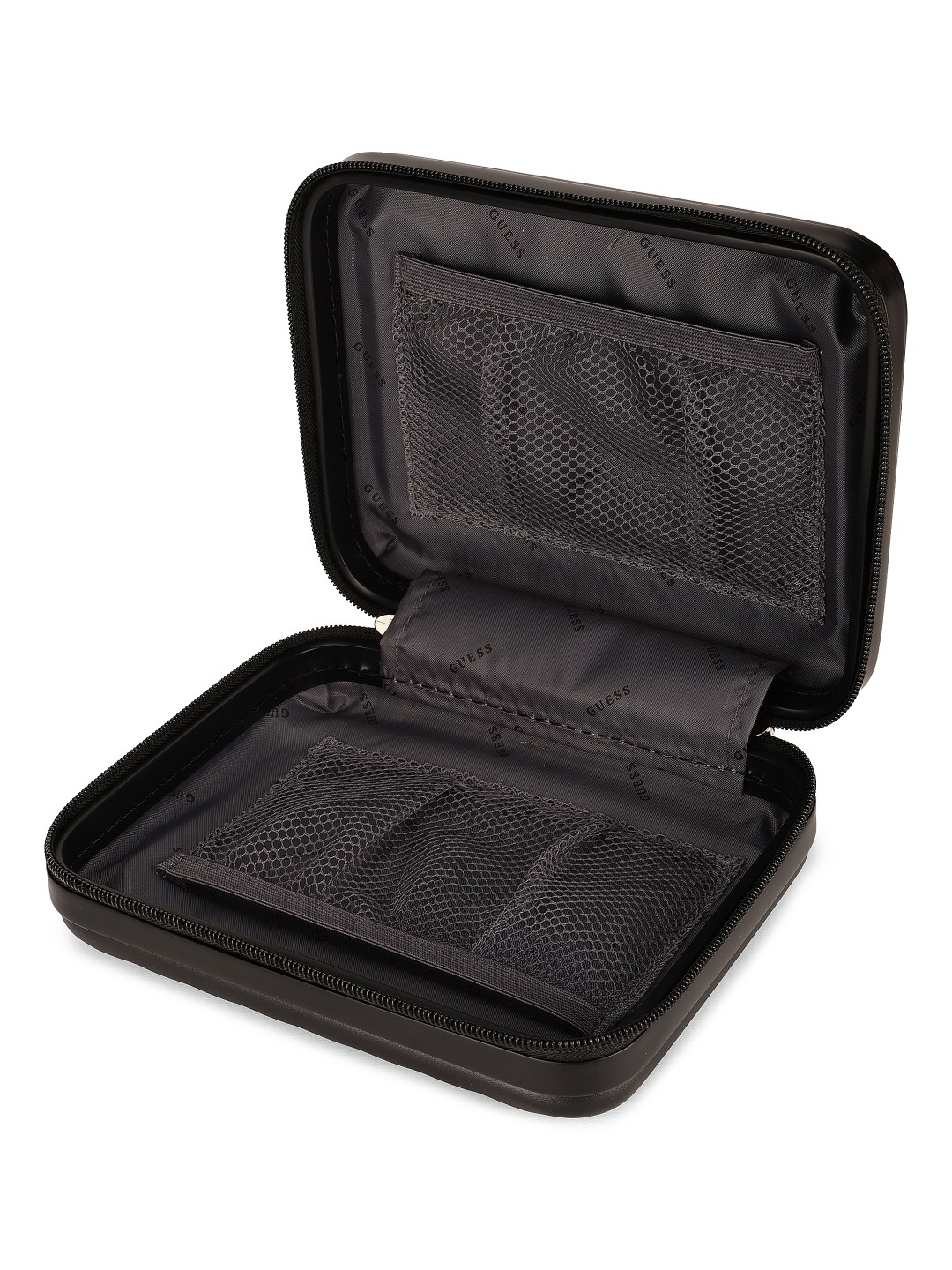 Elegantly store and organize your cosmetics with the Guess Black Polycarbonate Solid WOMEN Cosmetic Case. This sleek and durable case features a spacious interior with multiple compartments to keep all your beauty essentials neatly in place. The black polycarbonate material adds a touch of sophistication, while the secure closure ensures your items stay safe during travel. Stay stylish and organized on the go with this chic cosmetic case from Guess.